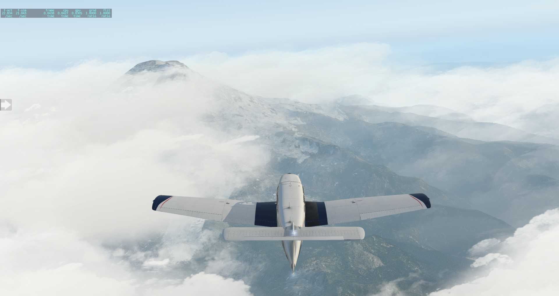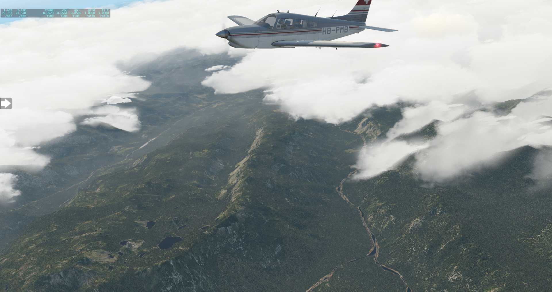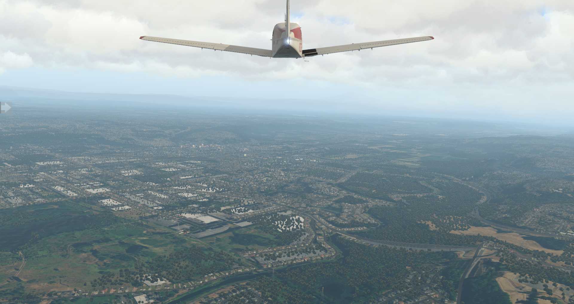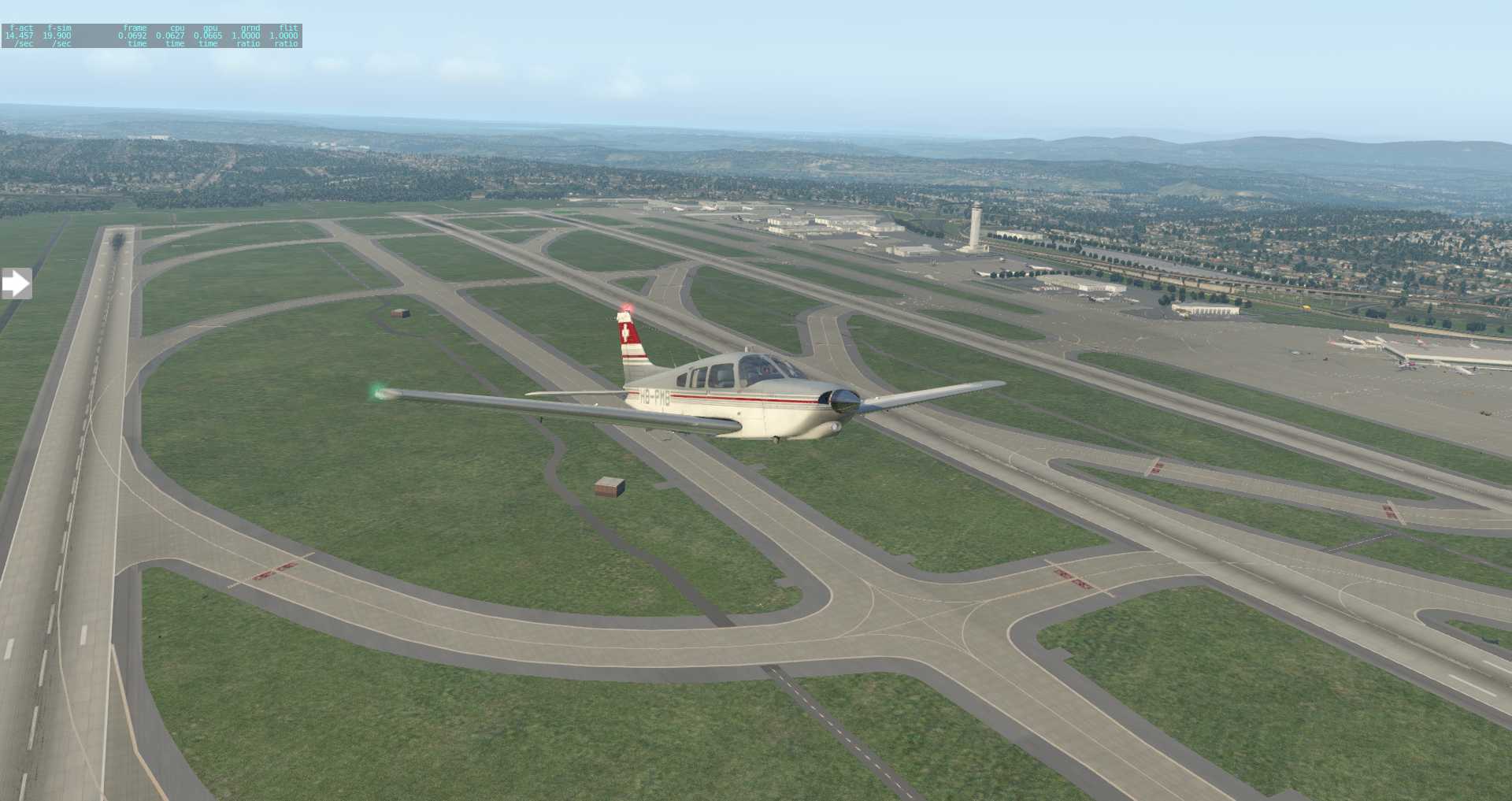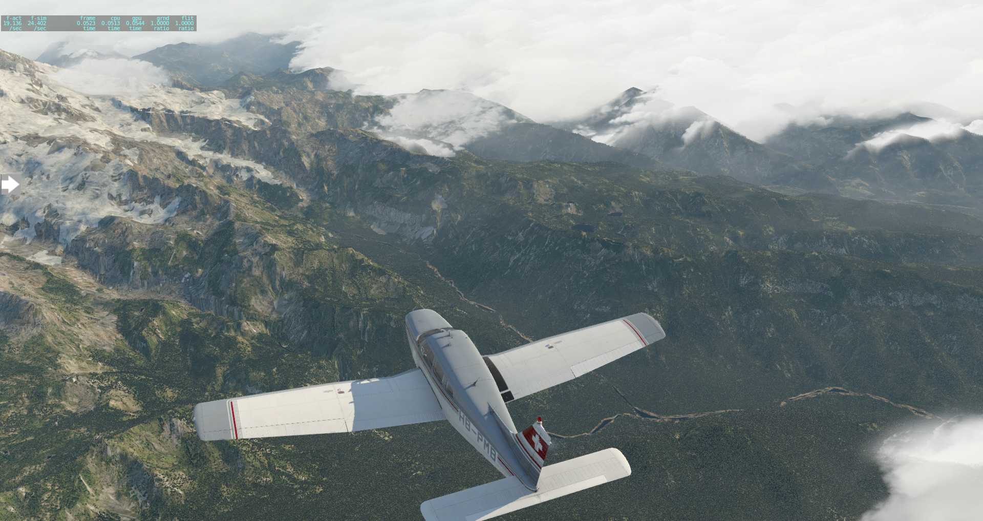 Wir starten jeweils vom Default-Flughafen Seattle International (KSEA) mit einer JustFlight Turbo Arrow und fliegen zum Mount Rainier. Dabei picken wir uns 3 spezielle Stellen heraus, wo wir die Szenerien miteinander vergleichen.