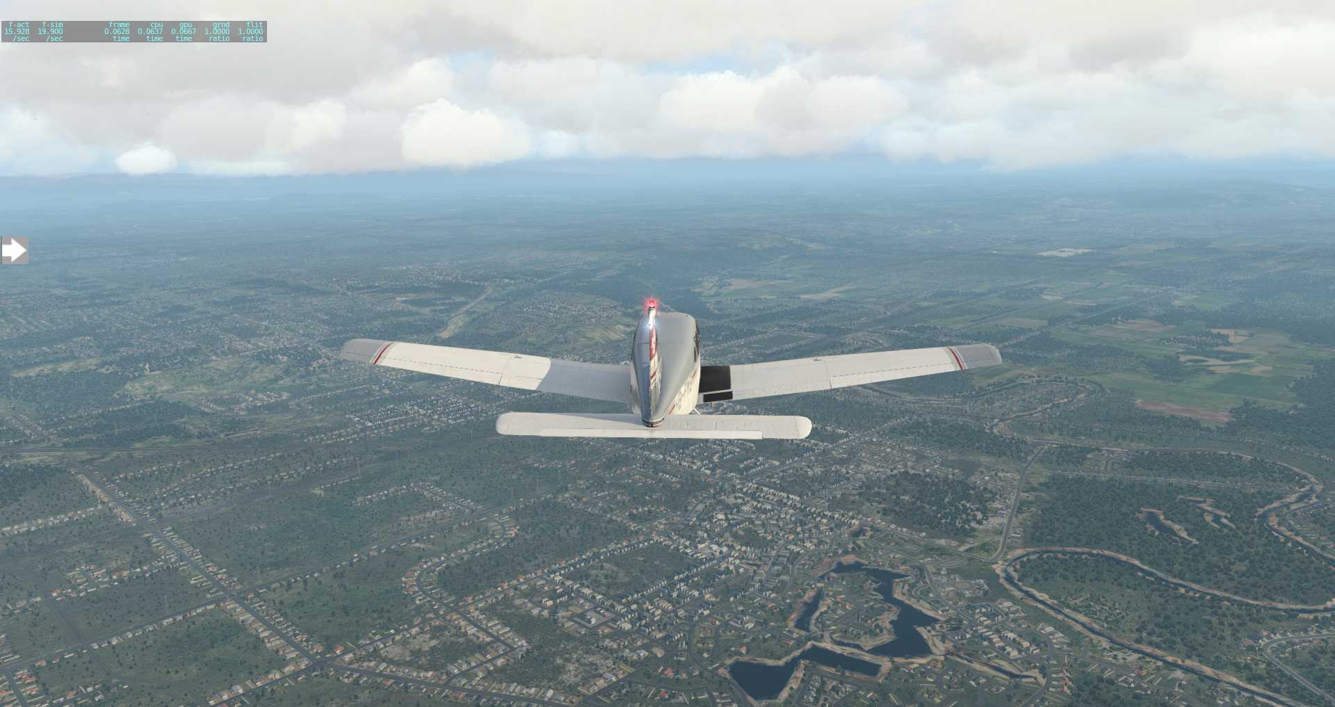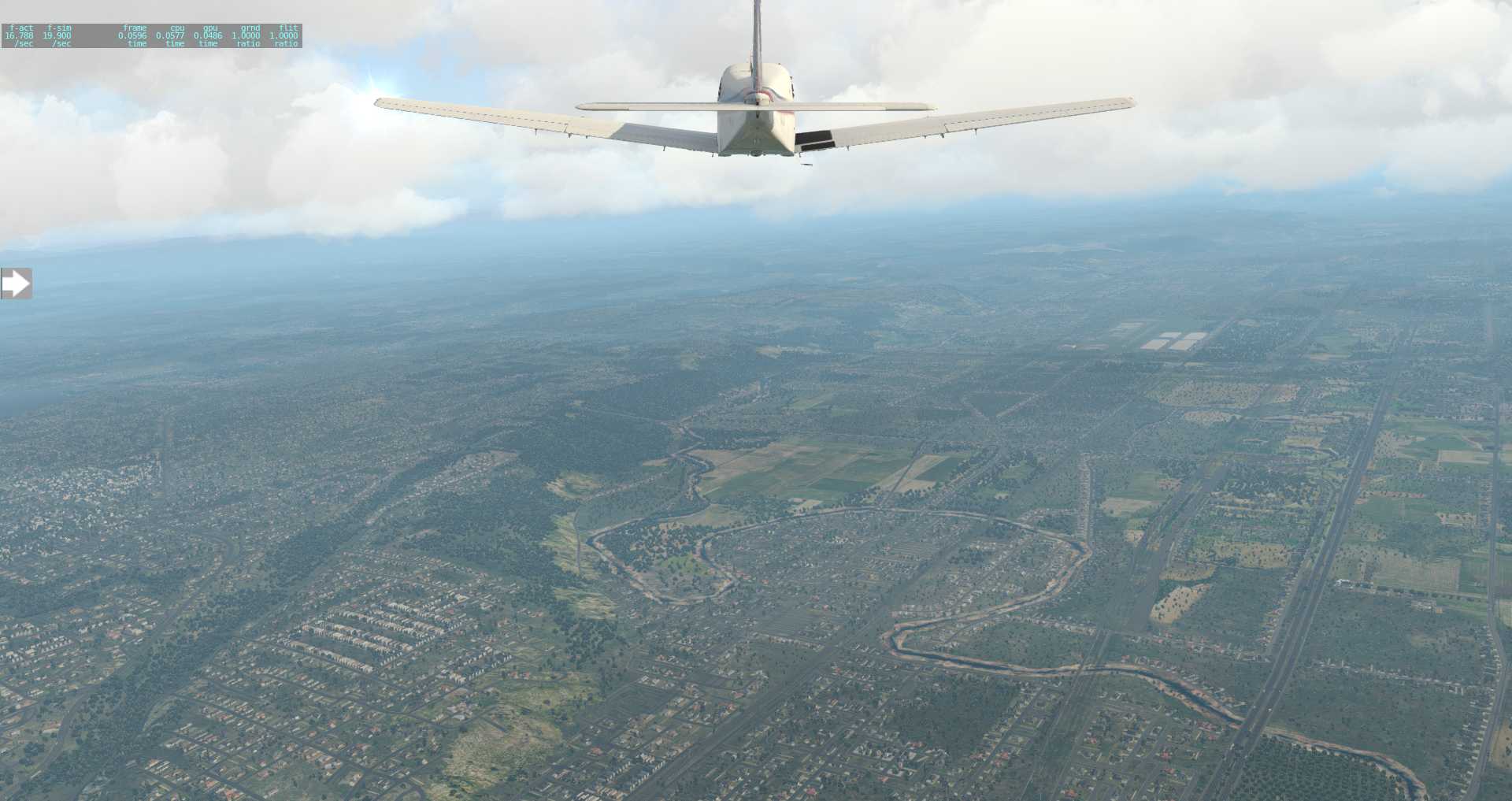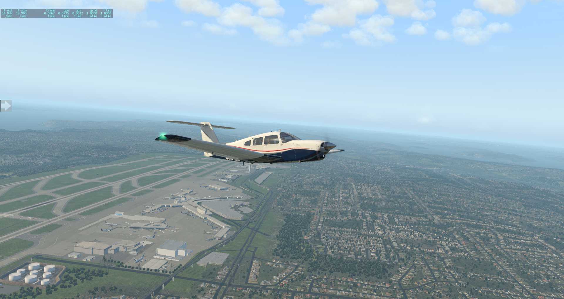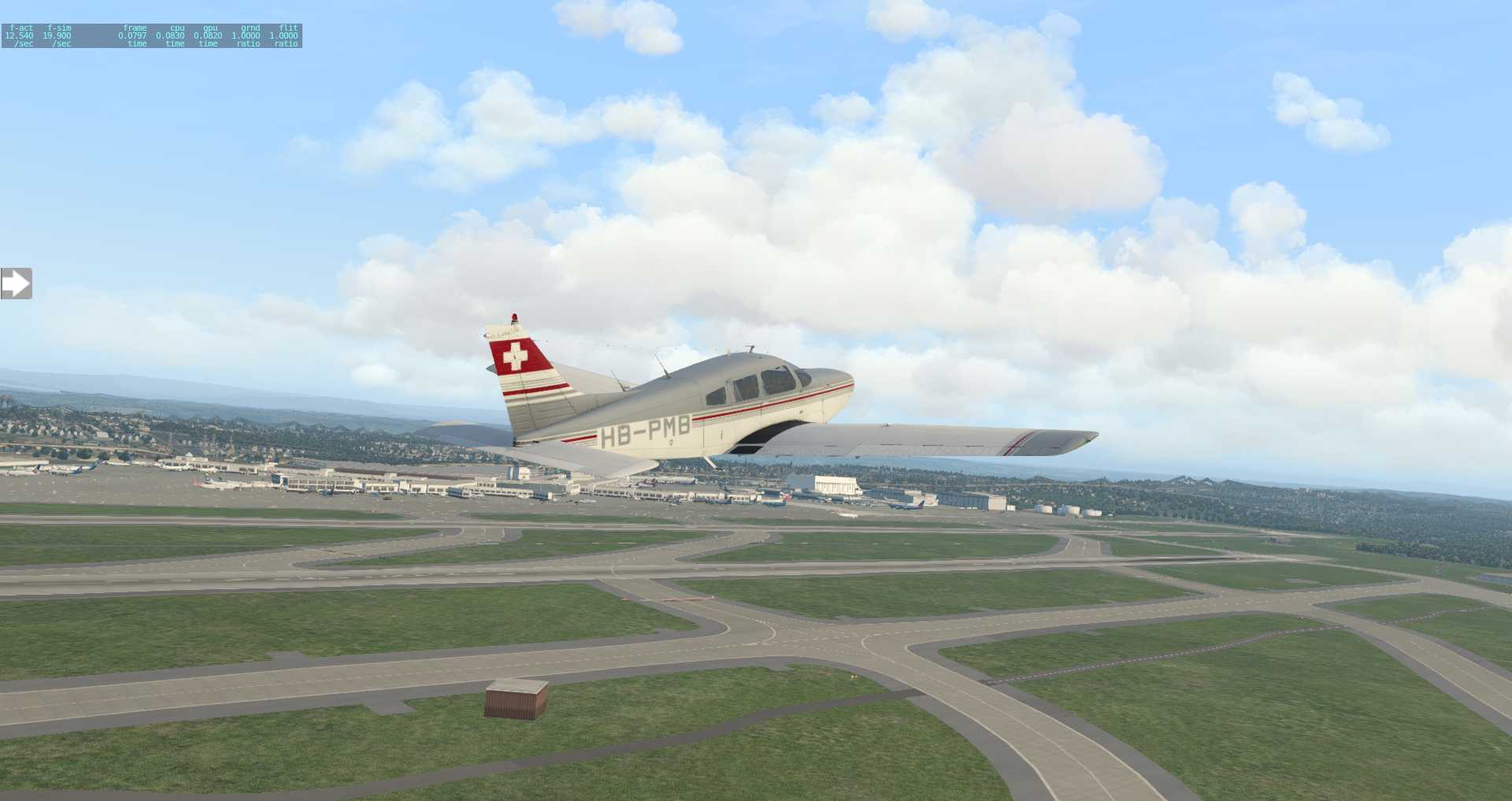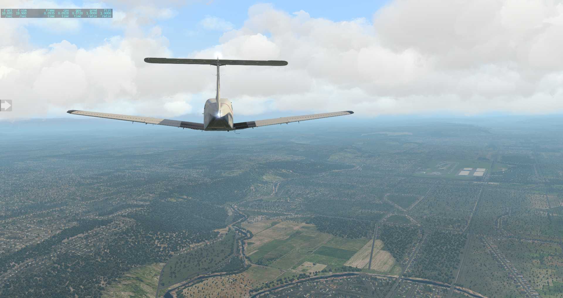 Wir starten jeweils vom Default-Flughafen Seattle International (KSEA) mit einer JustFlight Turbo Arrow und fliegen zum Mount Rainier. Dabei picken wir uns 3 spezielle Stellen heraus, wo wir die Szenerien miteinander vergleichen.