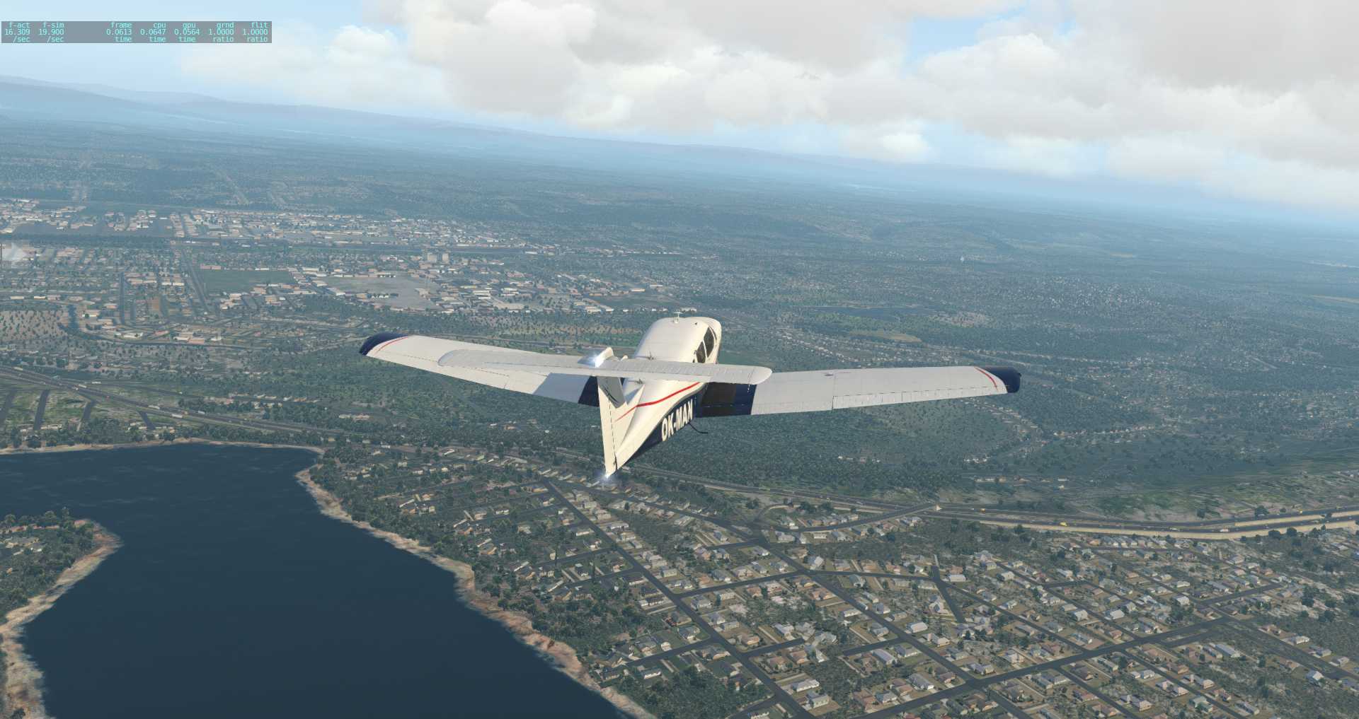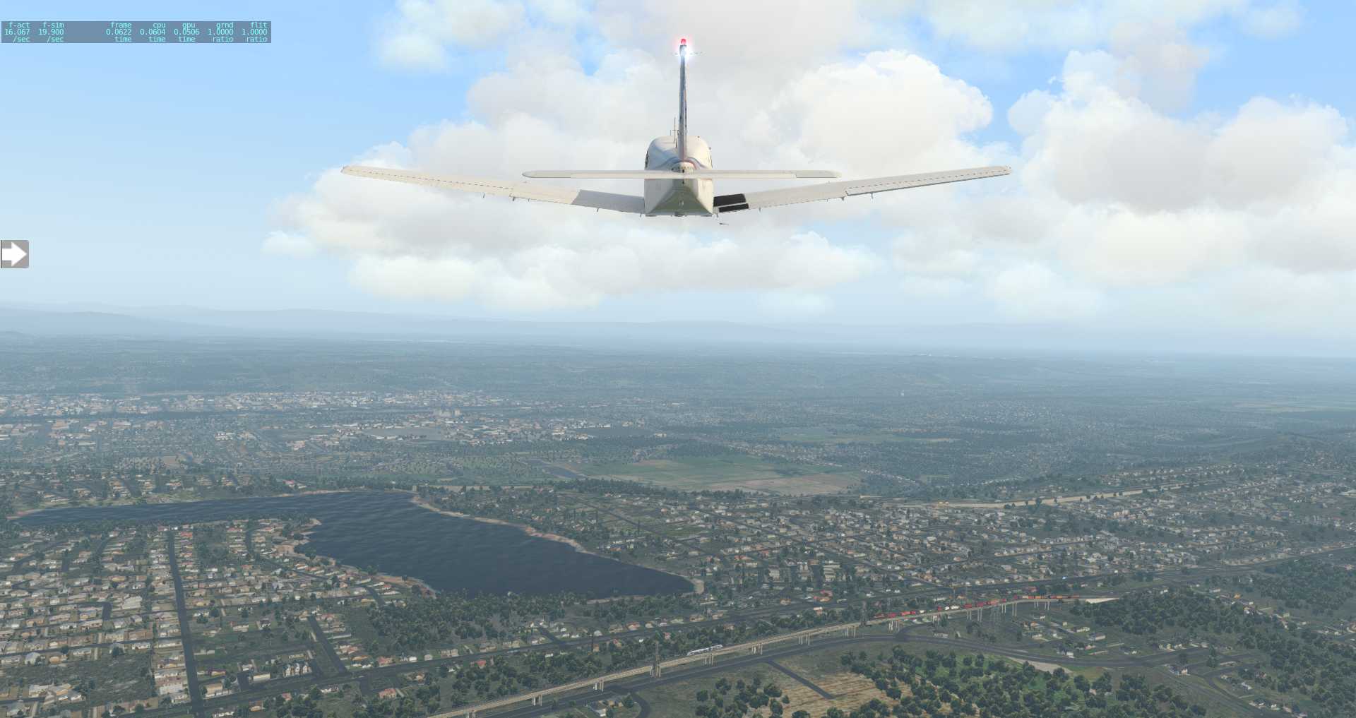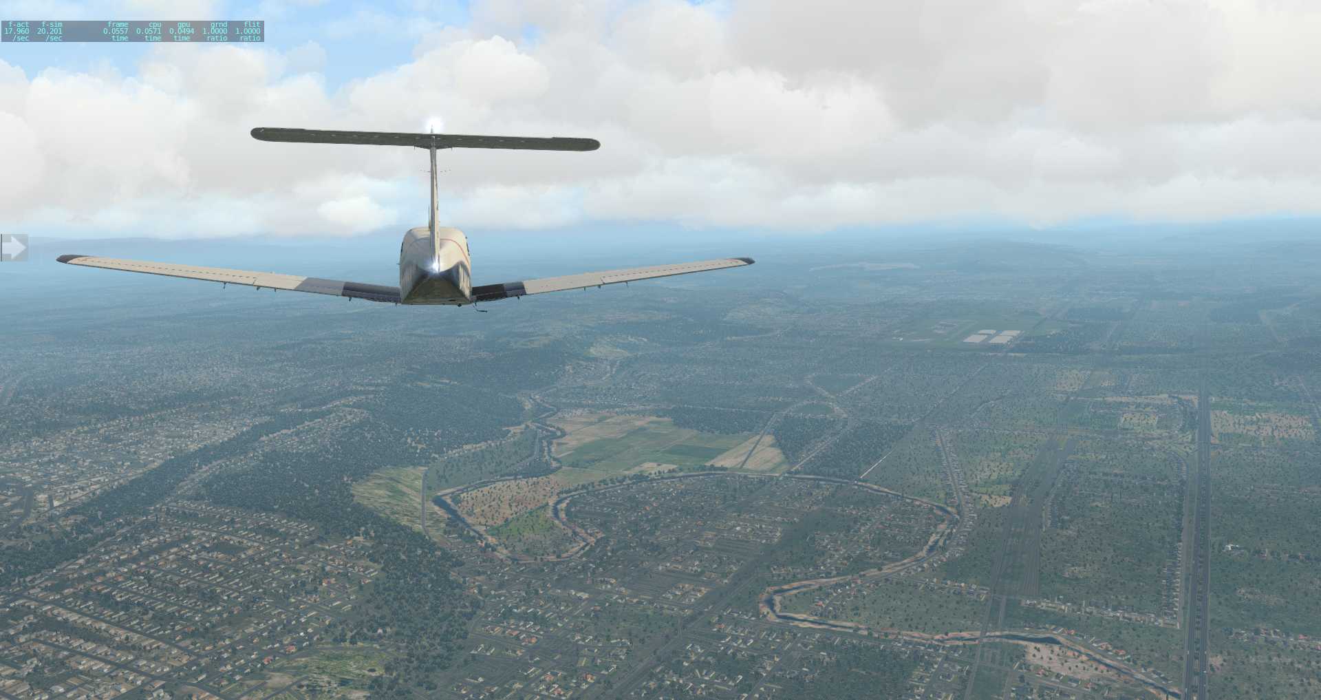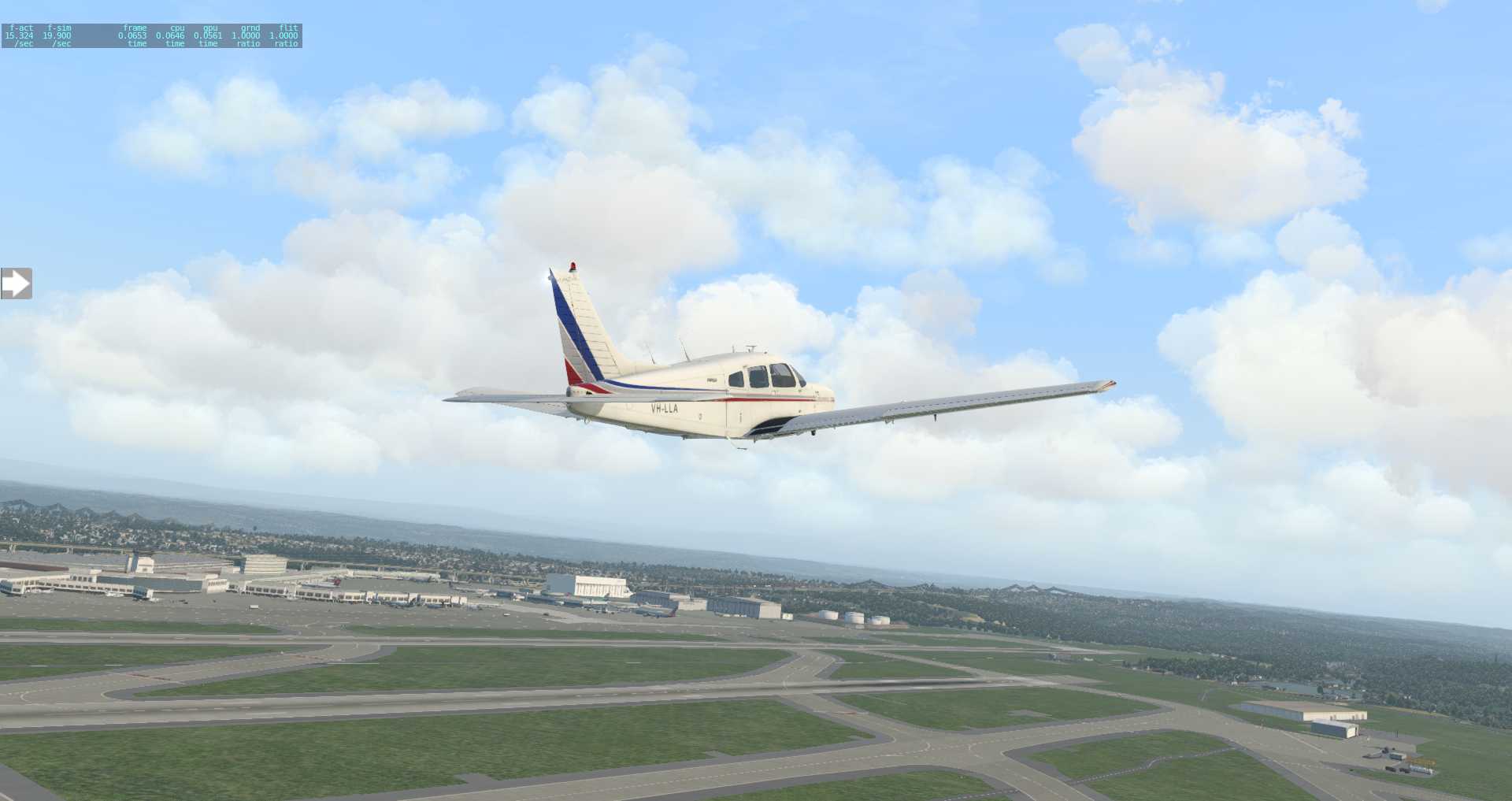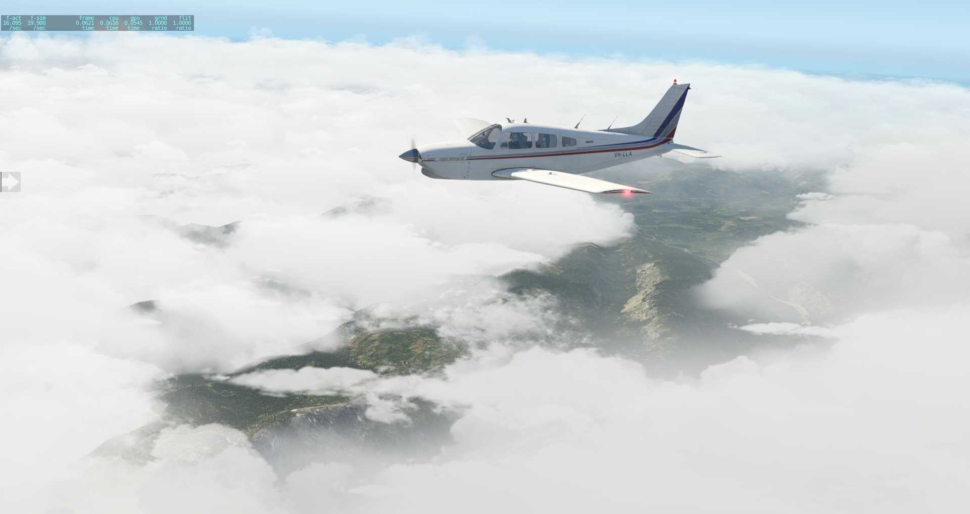 Wir starten jeweils vom Default-Flughafen Seattle International (KSEA) mit einer JustFlight Turbo Arrow und fliegen zum Mount Rainier. Dabei picken wir uns 3 spezielle Stellen heraus, wo wir die Szenerien miteinander vergleichen.