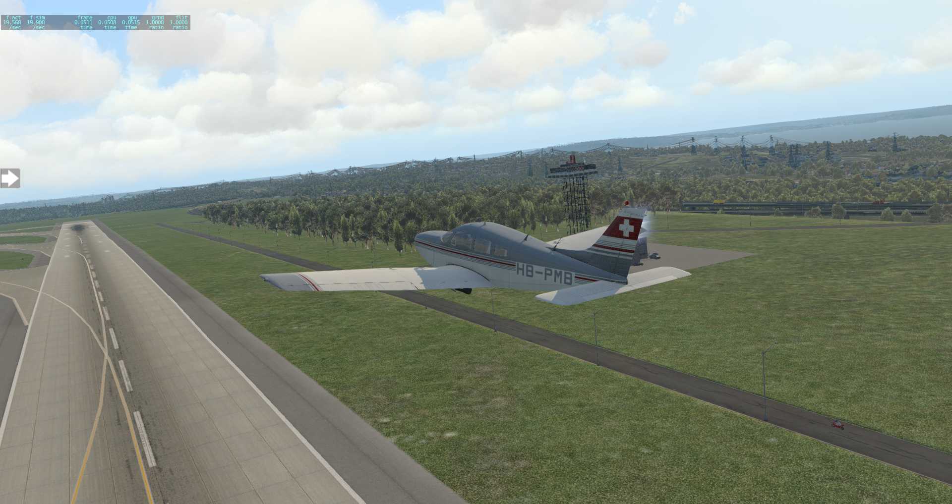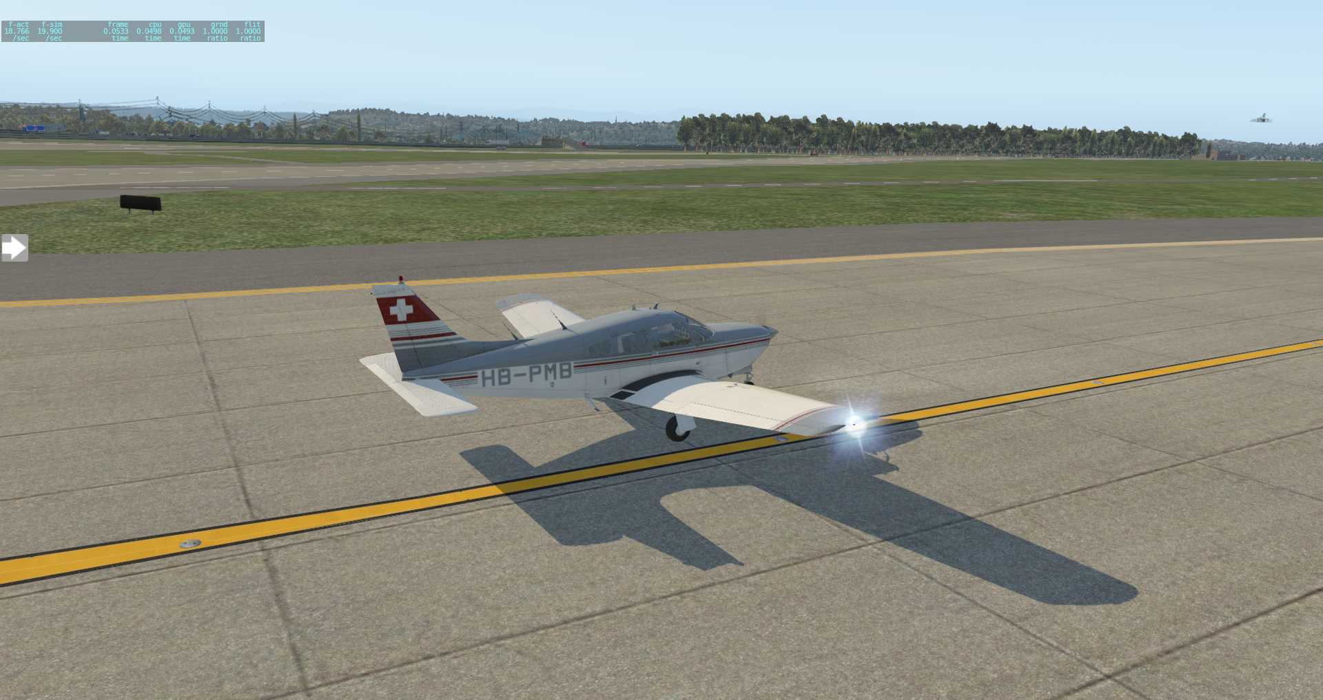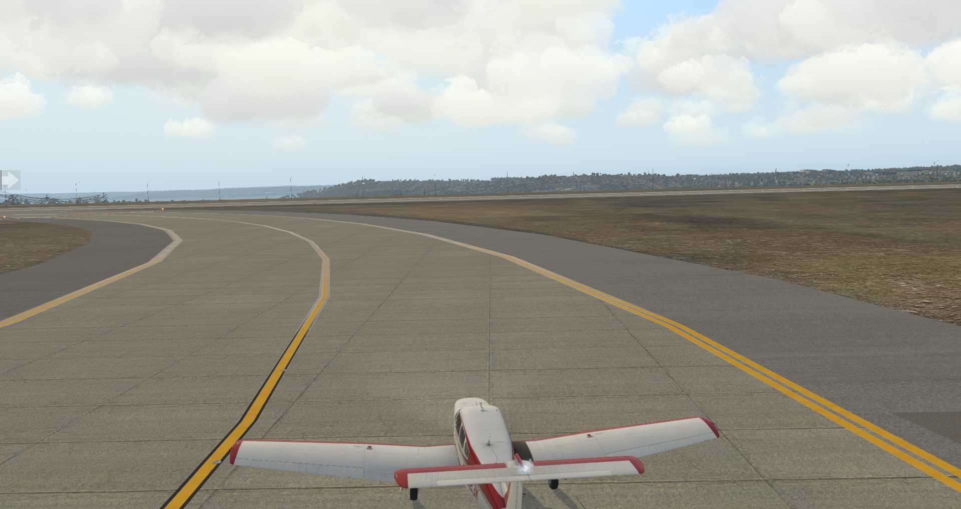 Die genaueren Höhendaten schlagen sich in weiteren Verbesserungen aufg dem Taxiway und Runway nieder. Doch der nächste Unterschied zeigt sich in der Umgebung. Die Gegend zeigt überall kleinere Anhöhen und Senken.