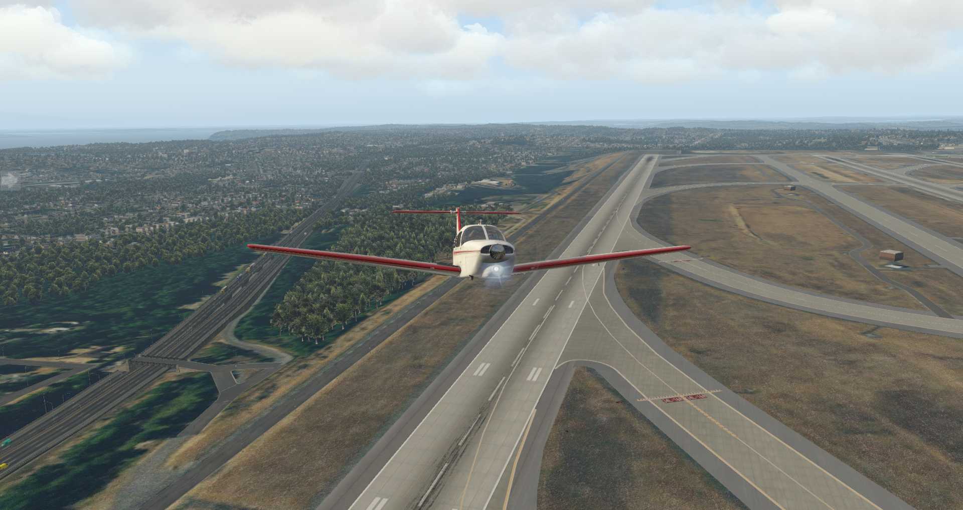 Die erste Stelle ist der Flughafen selbst. Wir starten an der gleichen Stelle und drehen schließlich nach Links zur Startbahn und fliegen Richtung Mt. Rainier