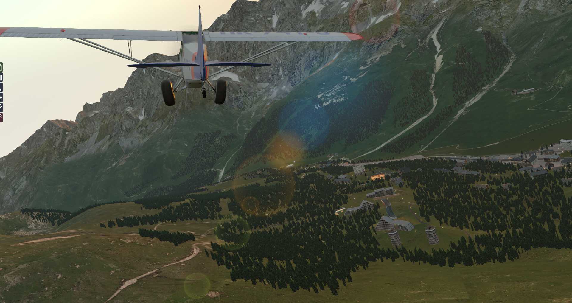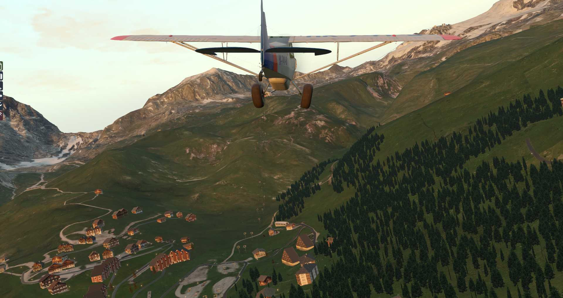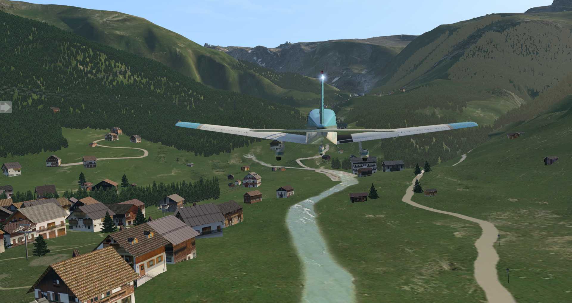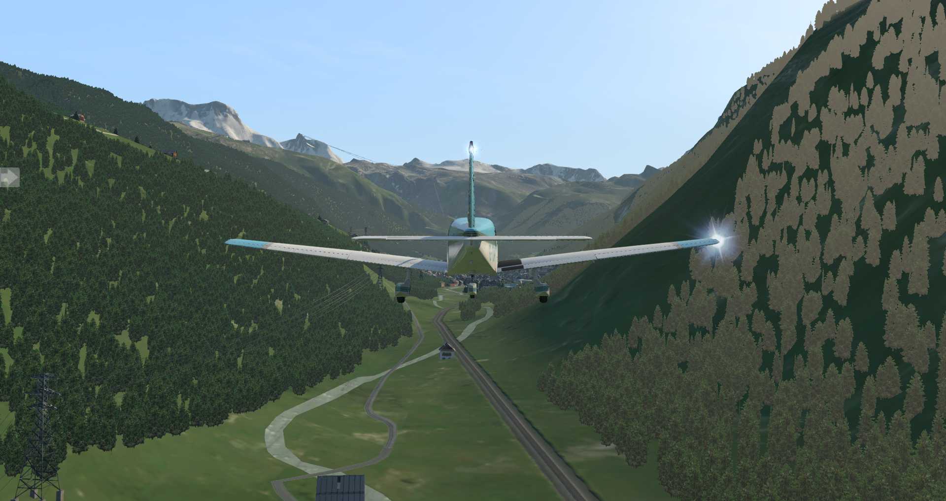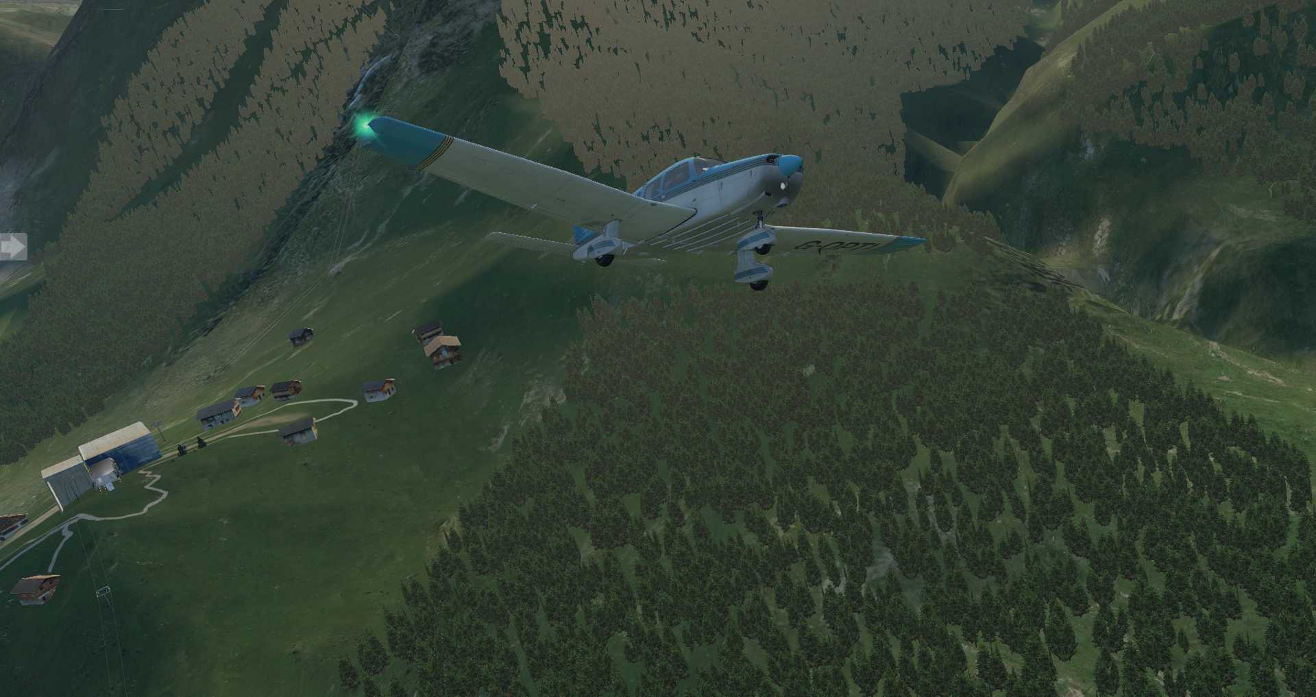 Allerdings merkt man auch, wie eng die Gegend für ein Flugzeug ist. Daher starten wir erneut mit einem Flugzeug mit besseren Steigwerten: Der ASDG SuperCub .