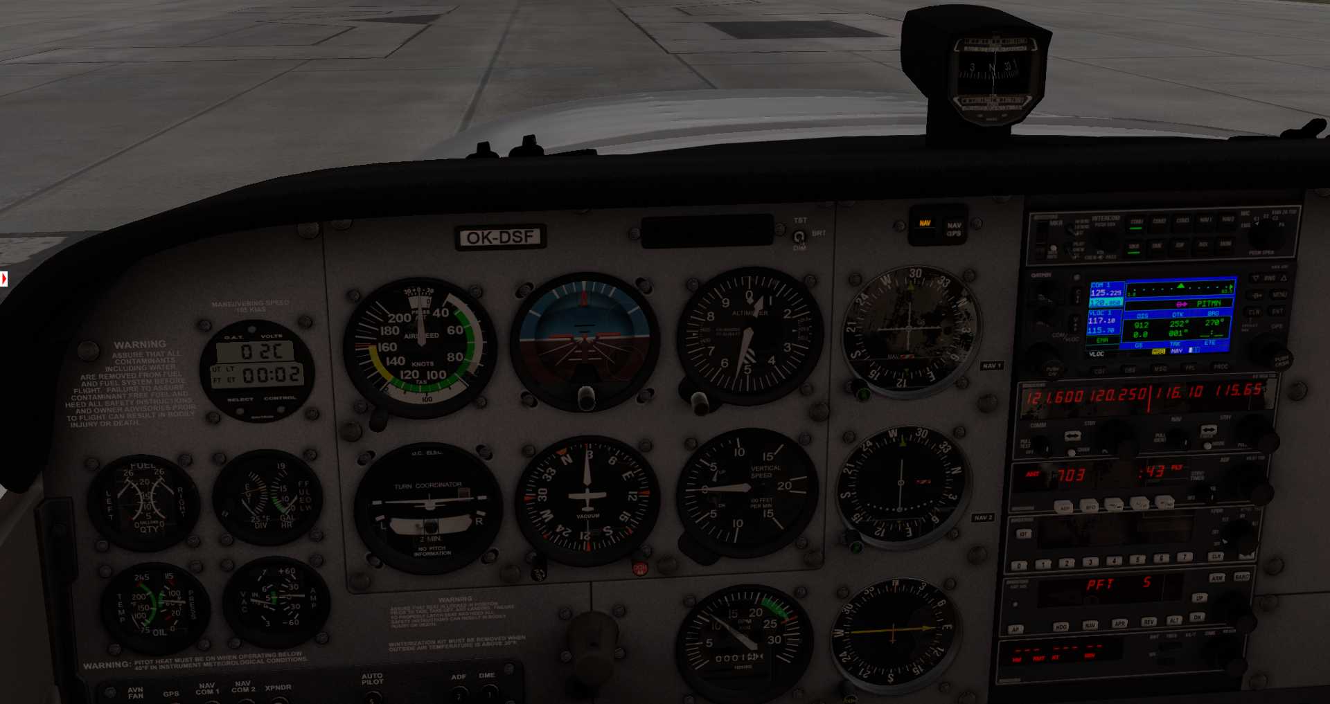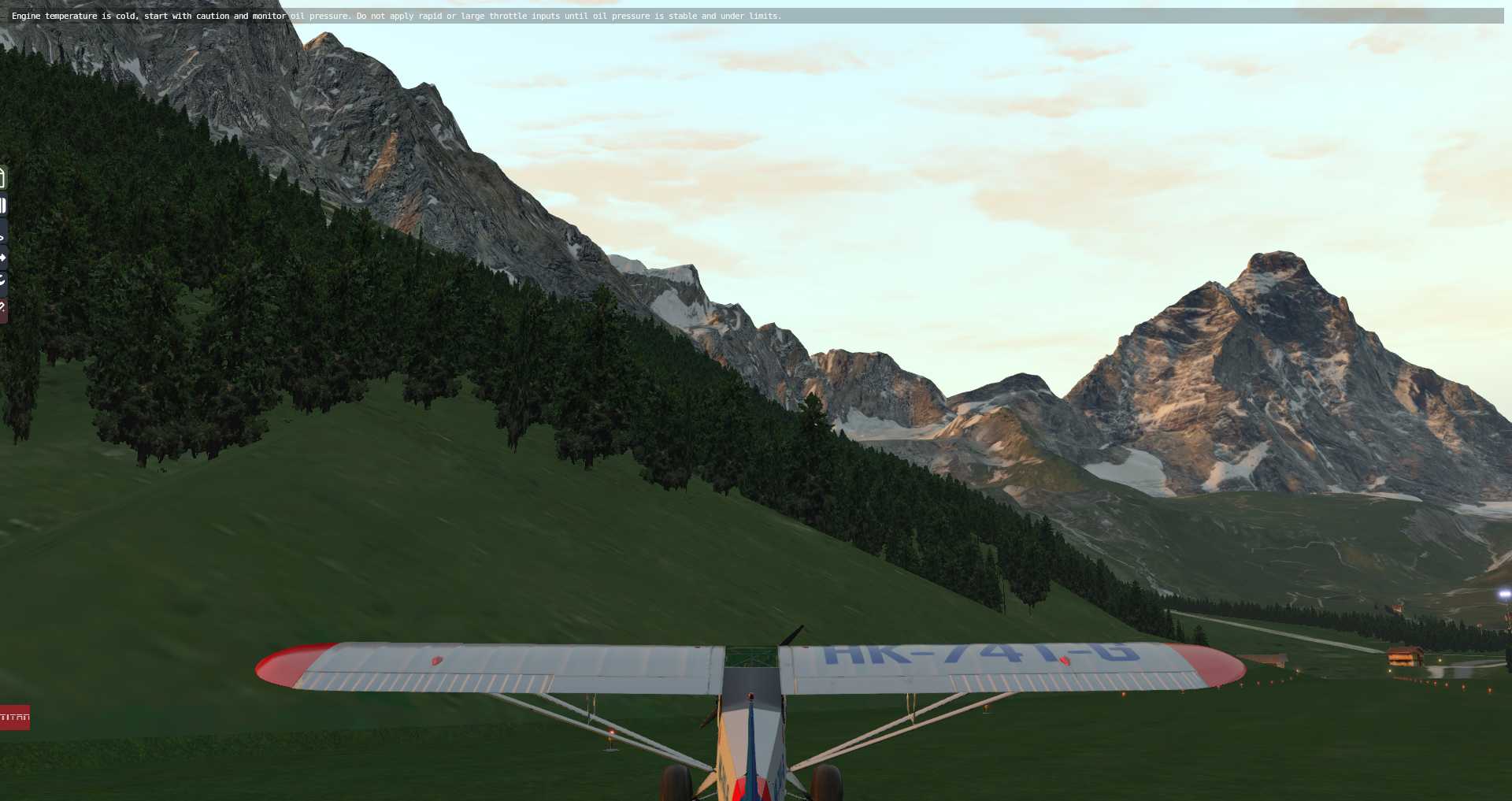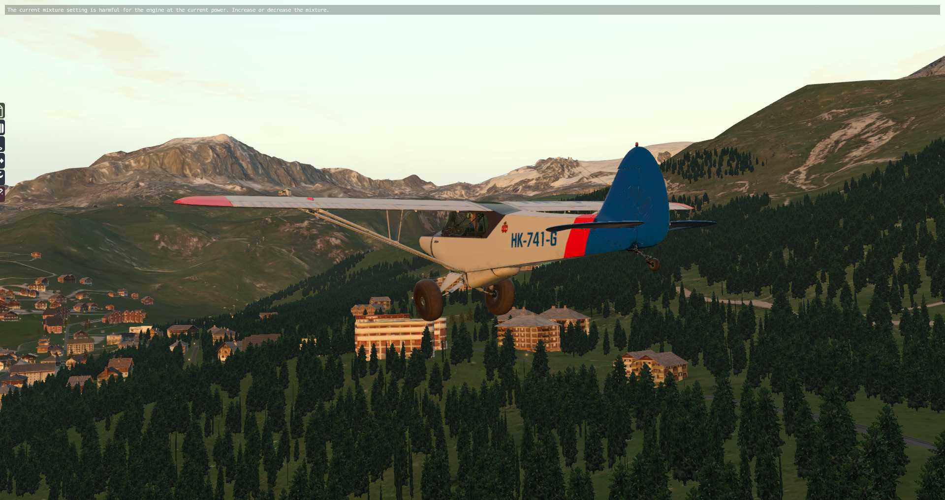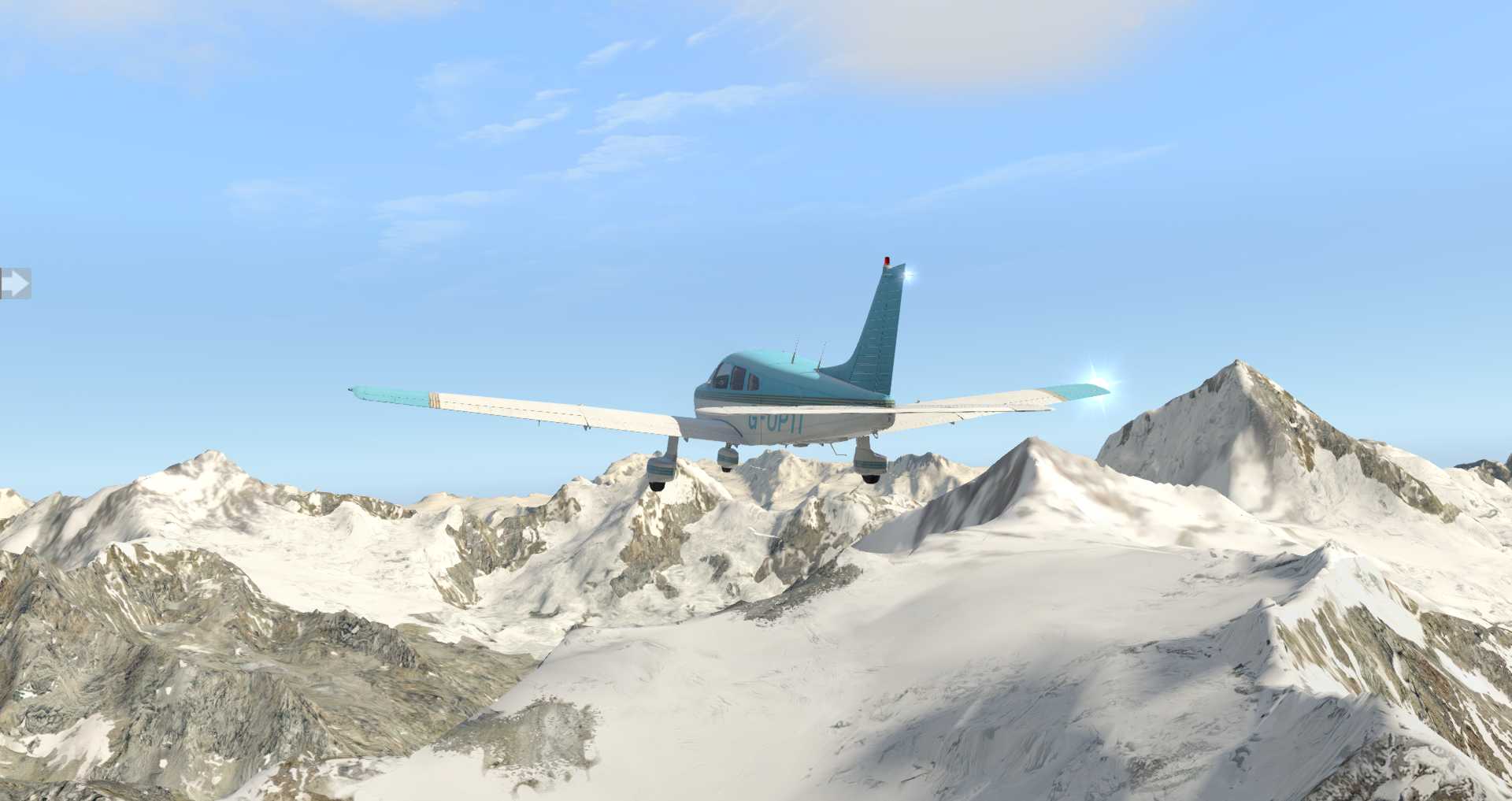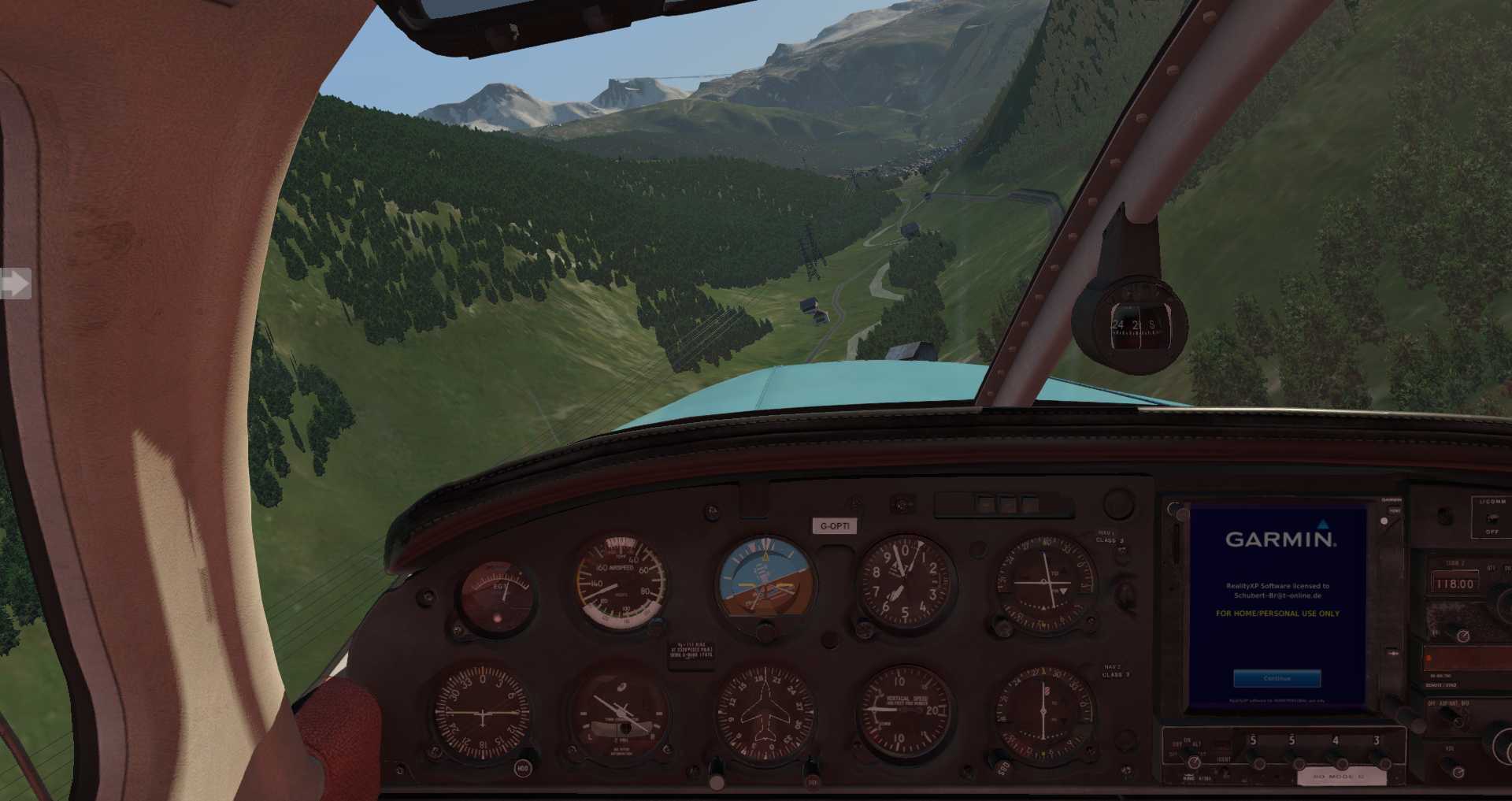 Wir starten in Sion mit einer JustFlight Piper Warrior, die gerade eben zusammen mit den JustFlight Piper Arrows aktualisiert wurde. Endlich merkt man wirklich, dass die Warrior deutlich schwächer ist, als die Arrows. das machte sich auch beim Ton bemerkbar. Allerdings darf man nicht vergessen, JustFlight, bzw. Thranda simuliert ein Flugzeug nur so weit wie es Laminar unterstützt. Thranda selbst hat kein Interesse an Custom Programmierung (natürlich könnte man derartige Aufgaben outsourcen, wenn daran Interesse bestünde. SimCoders dürfte durchaus Interesse haben).