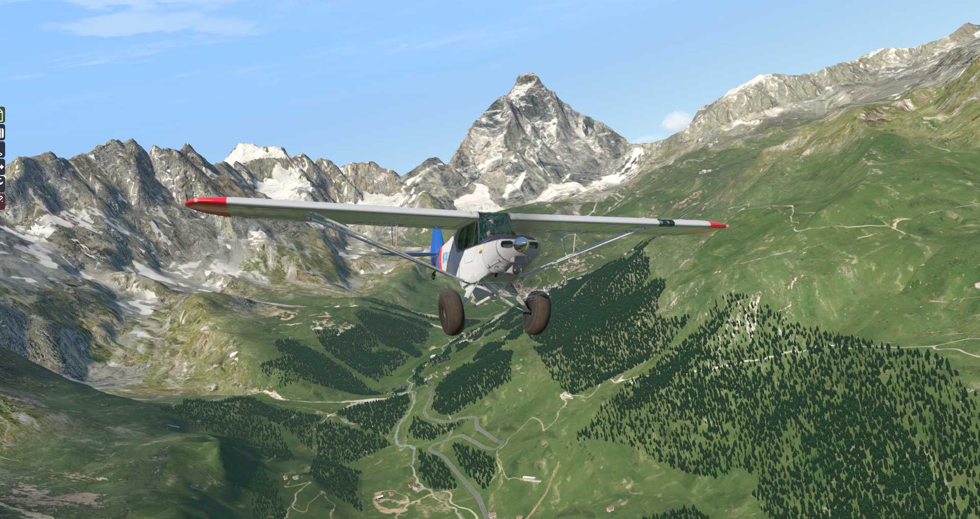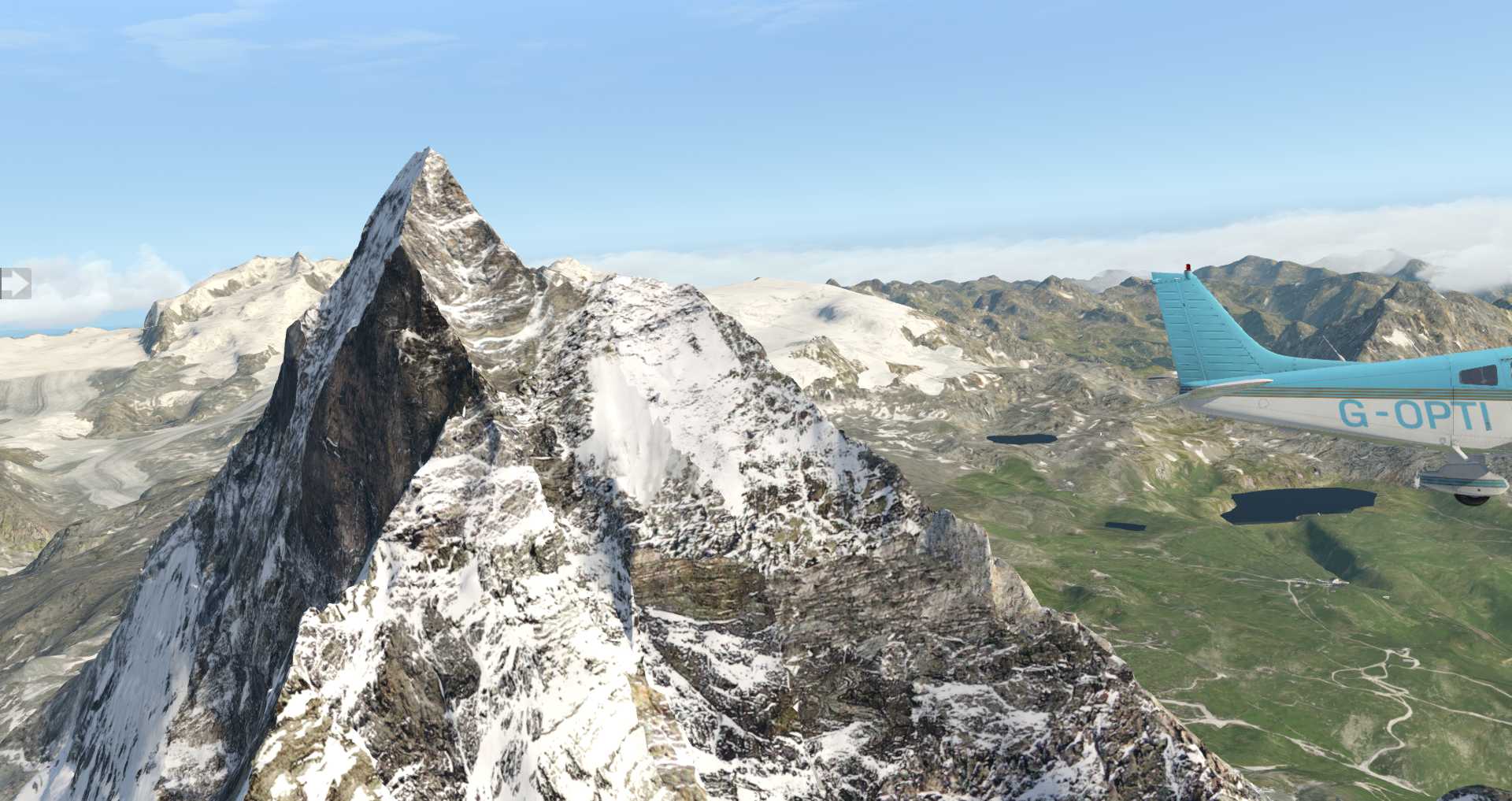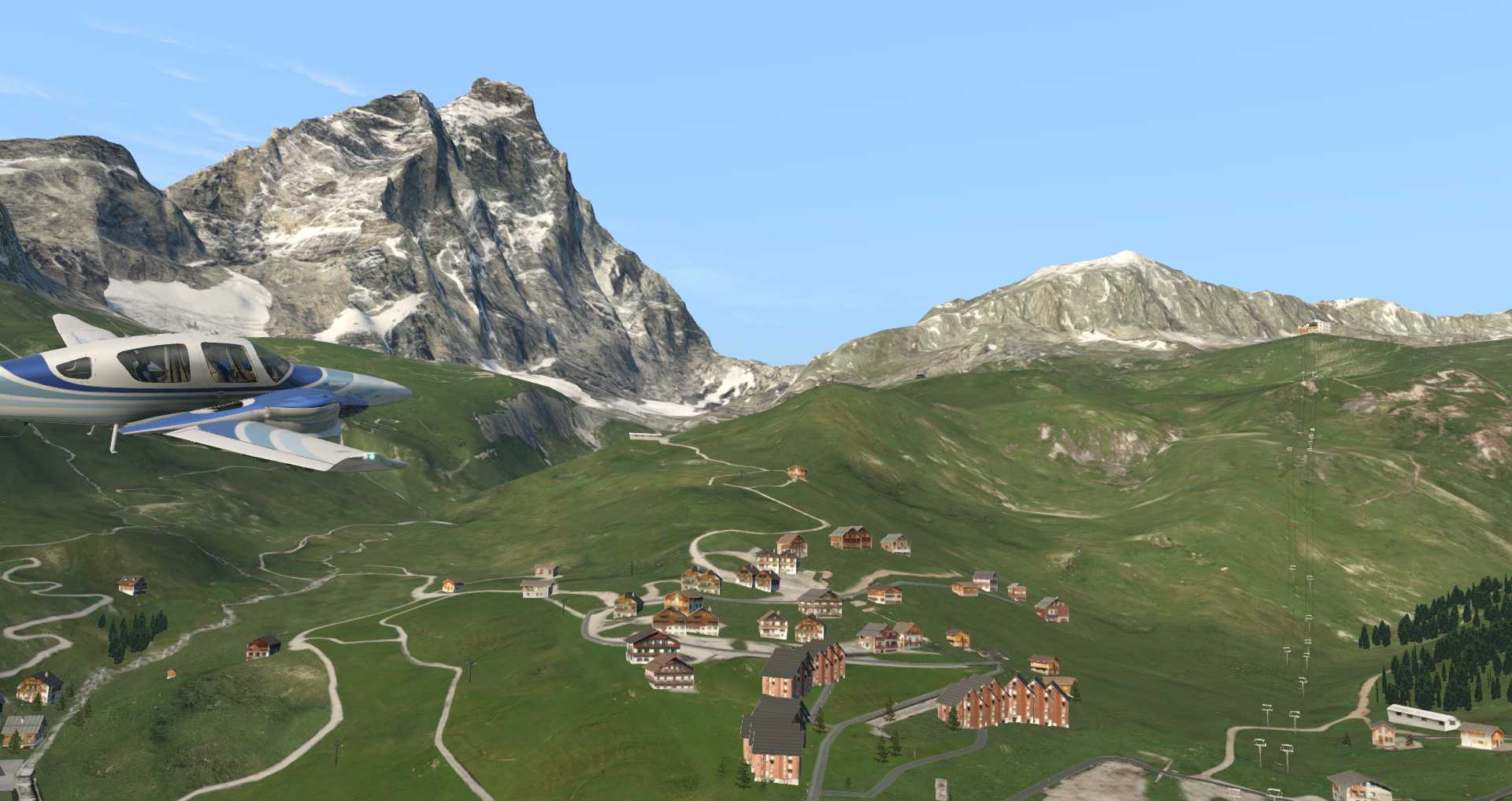 In der Realität kann man in dieser Gegend praktisch nur per Helikopter operieren. Doch damit man auch mit einem GA Flugzeug mal schnell dem Matterhorn einen Besuch abstatten kann hat man für Zermatt bei Täsch das Flugfeld LIZER geschaffen.