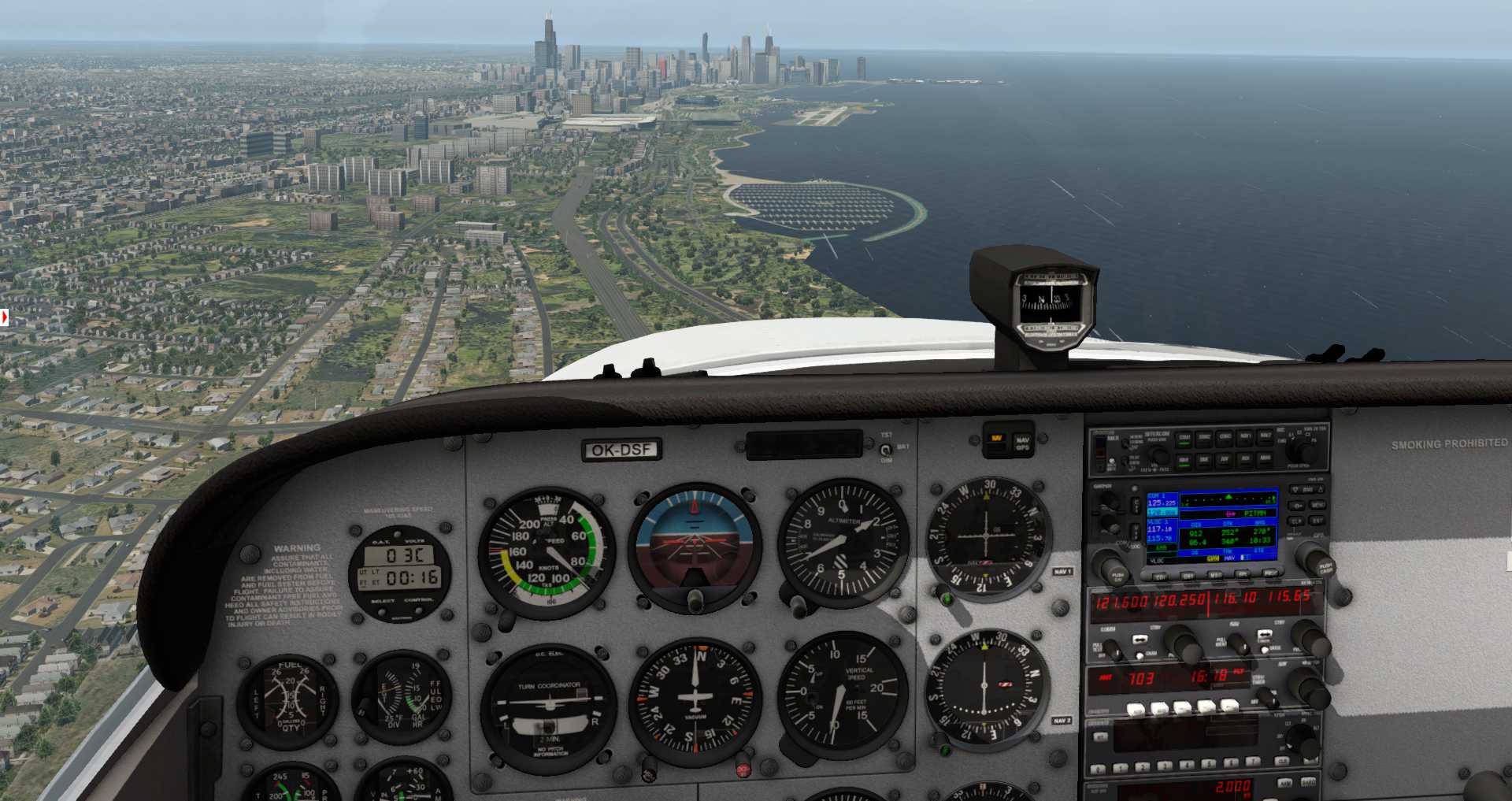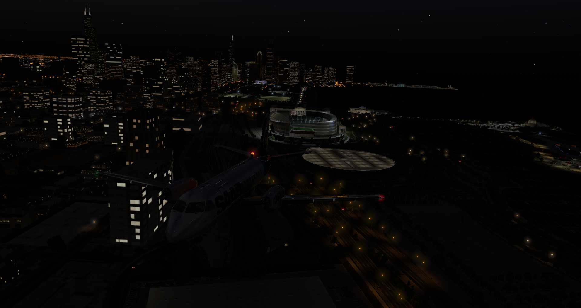 Es ist klar, das die Saab 340 von so einer Art von Flug überhaupt nicht begeistert ist, von der FAA und den Einwohnern Chicagos ganz zu Schweigen. Doch wozu sind wir hier im Simulator.