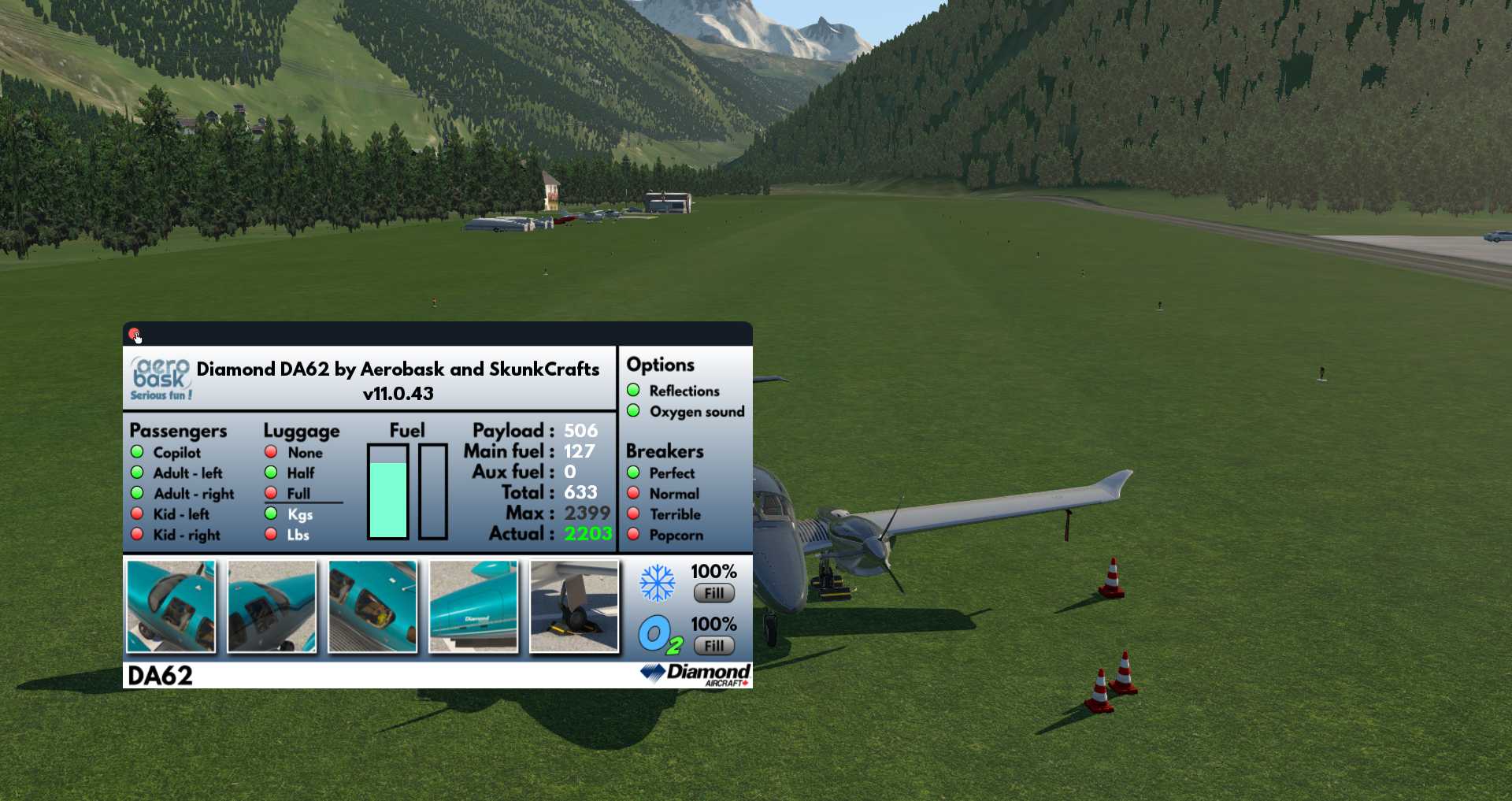 Und als Flugzeug nehmen wir das neue Highlight der GA Flugzeuge. Aerobasks DA-62.