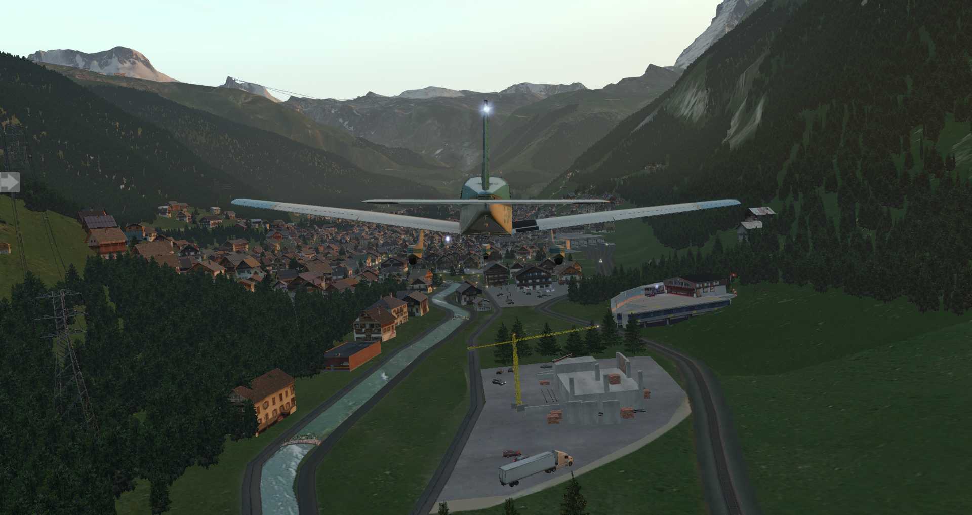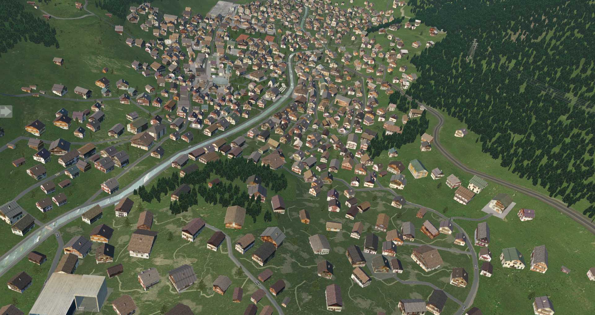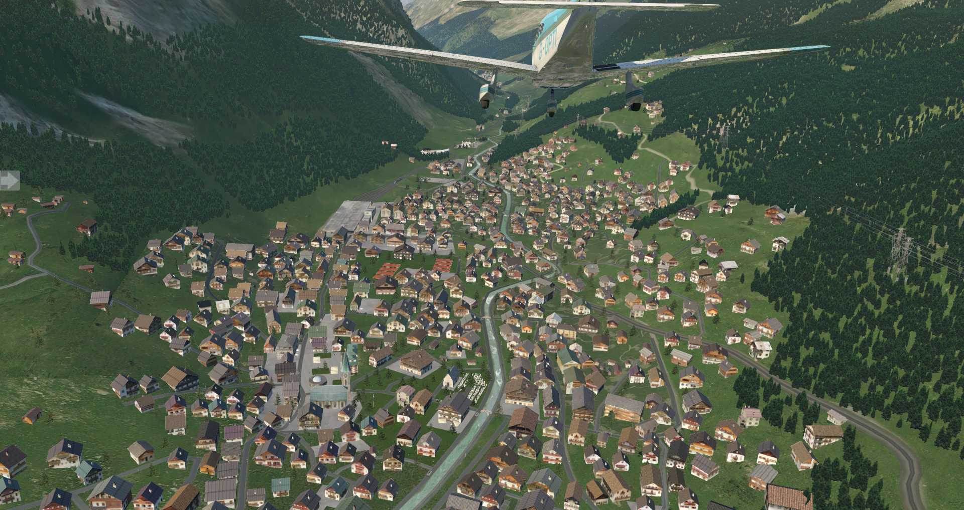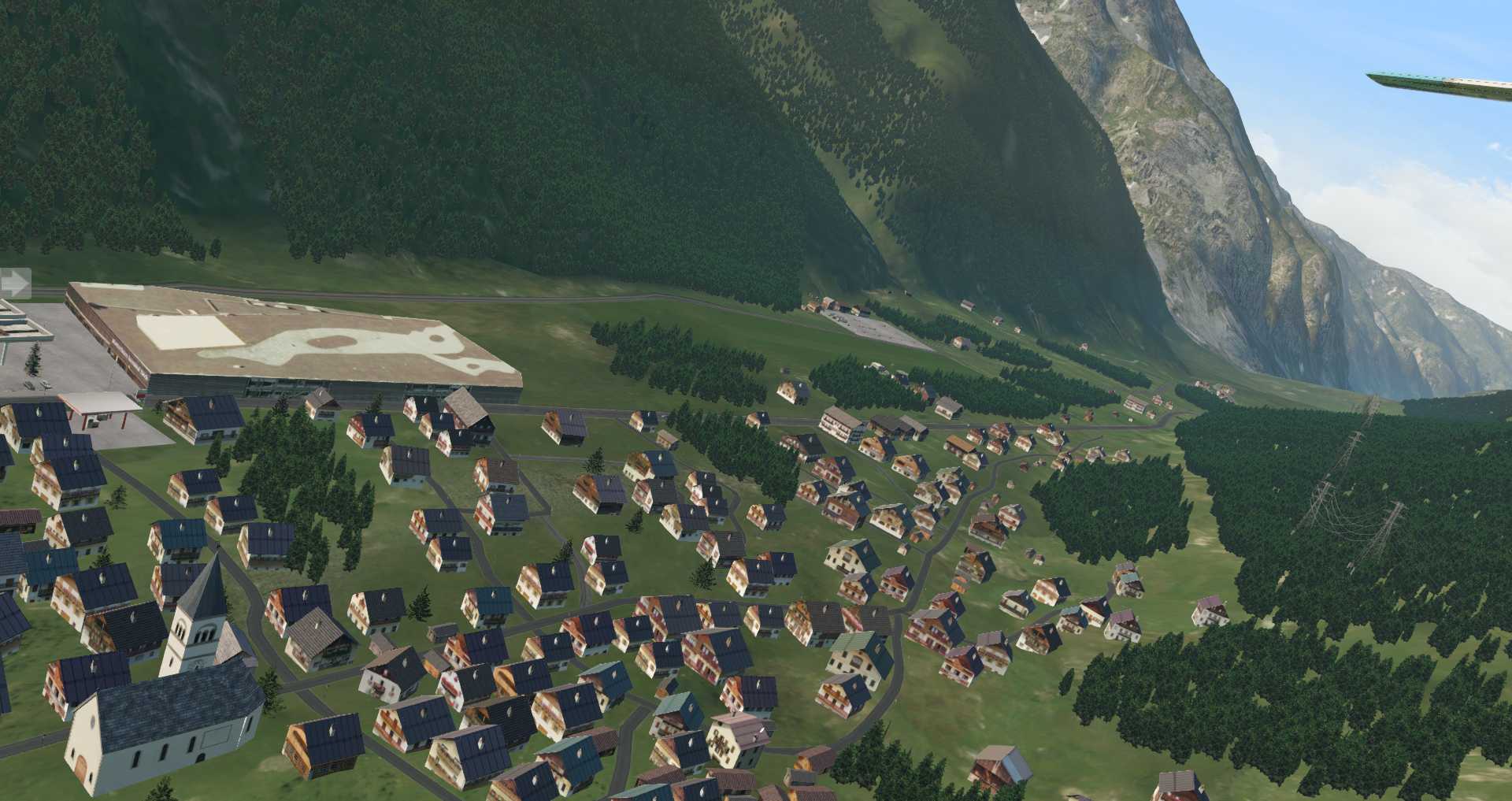 Da hier die Gebäude nicht so sehr auf einem Haufen stehen macht dieser Ort im Simulator die deutlich bessere Figur, vor allem auf Video.