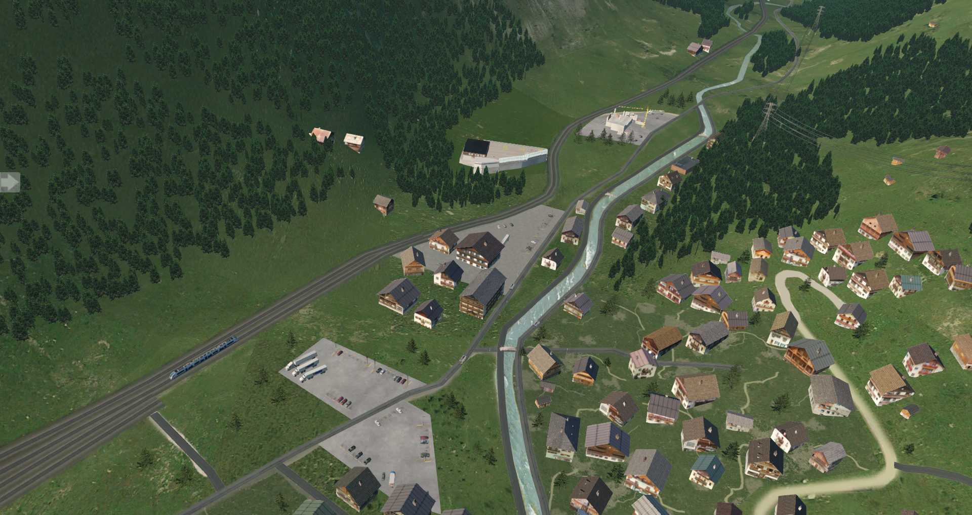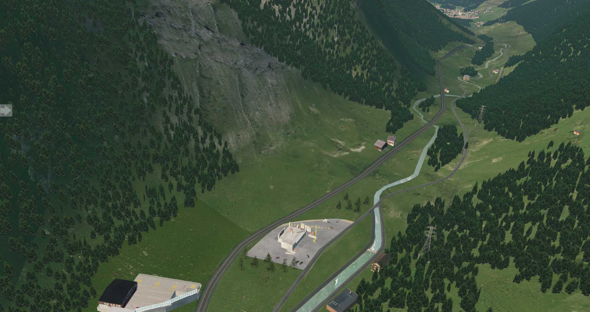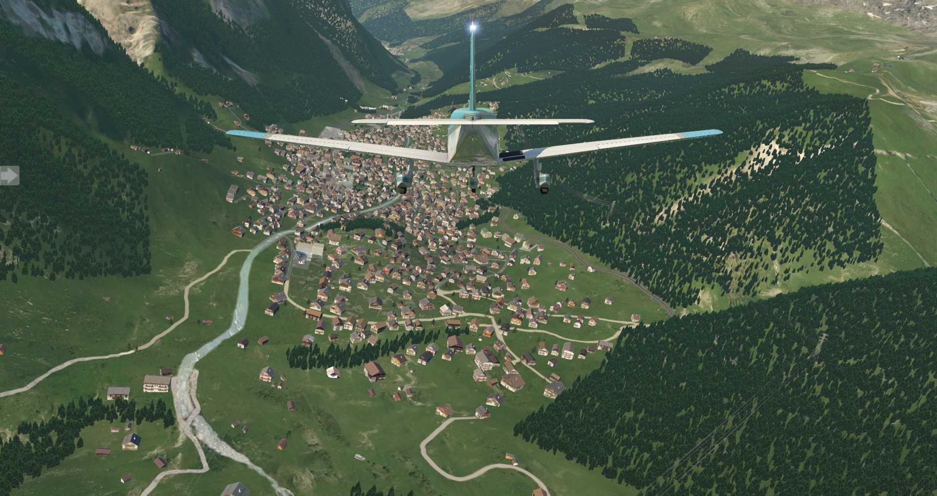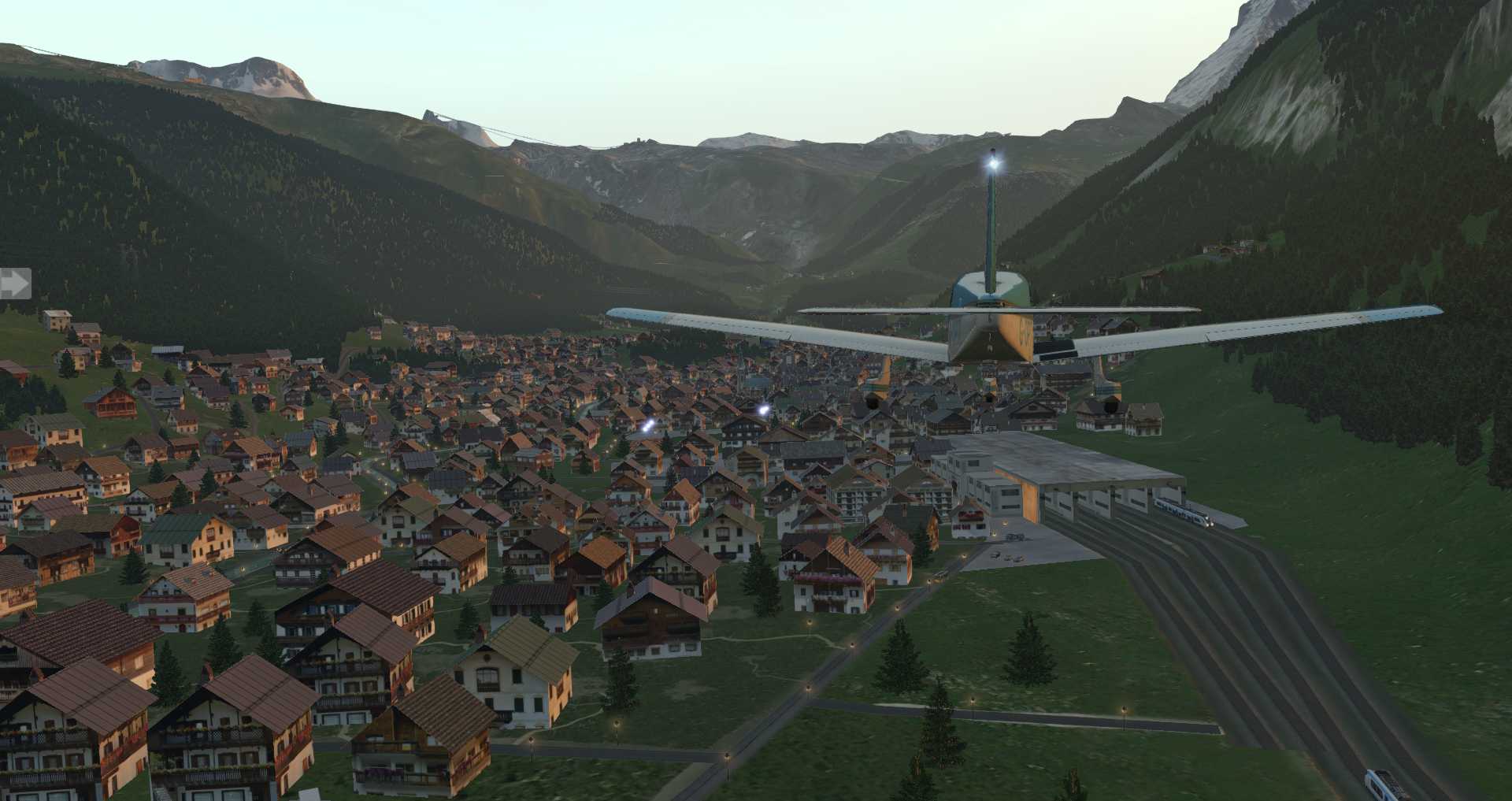 Da hier die Gebäude nicht so sehr auf einem Haufen stehen macht dieser Ort im Simulator die deutlich bessere Figur, vor allem auf Video.