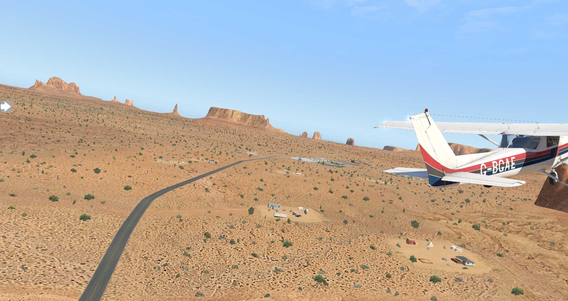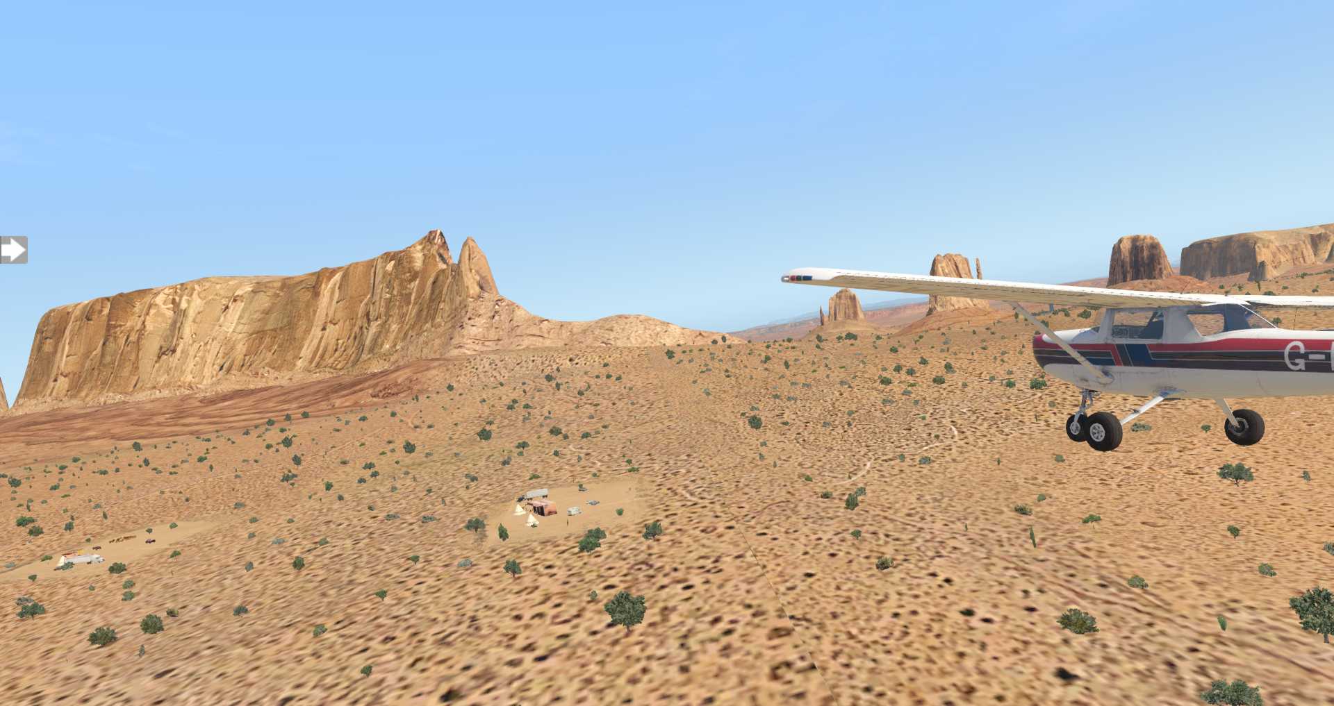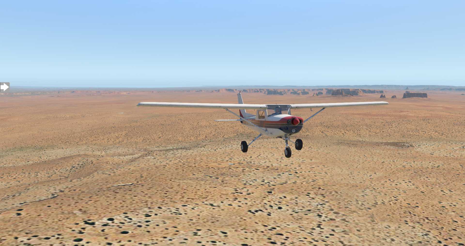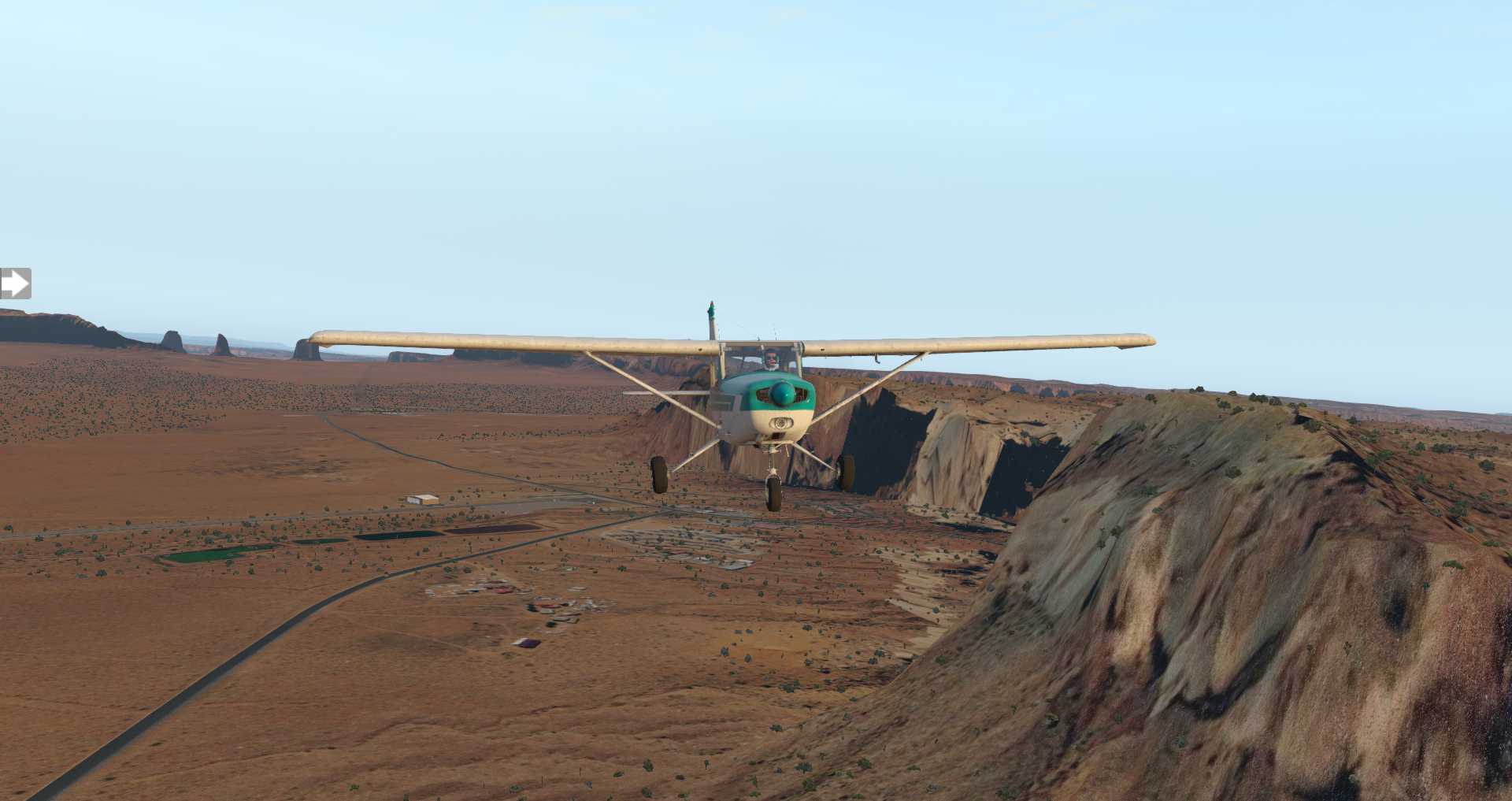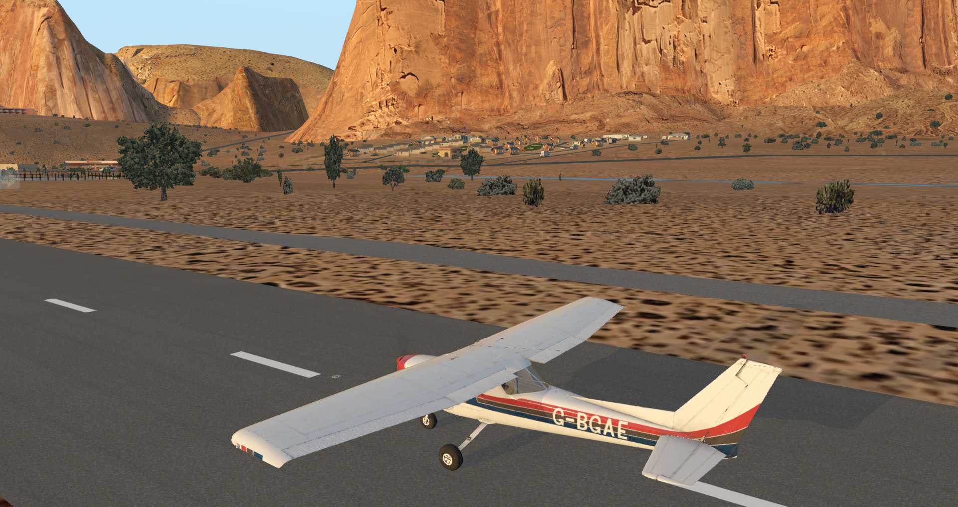 Doch wie sieht das Monument Valley in X-Plane aus? Um diese Frage zu klären, holte ich von JustFlight die kleine Cessna 152 heraus und ging vollkommen unvorbereitet zu UT25, einem kleinen Flugfeld im Monument Valley.