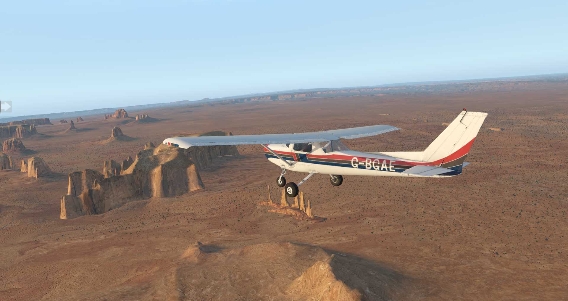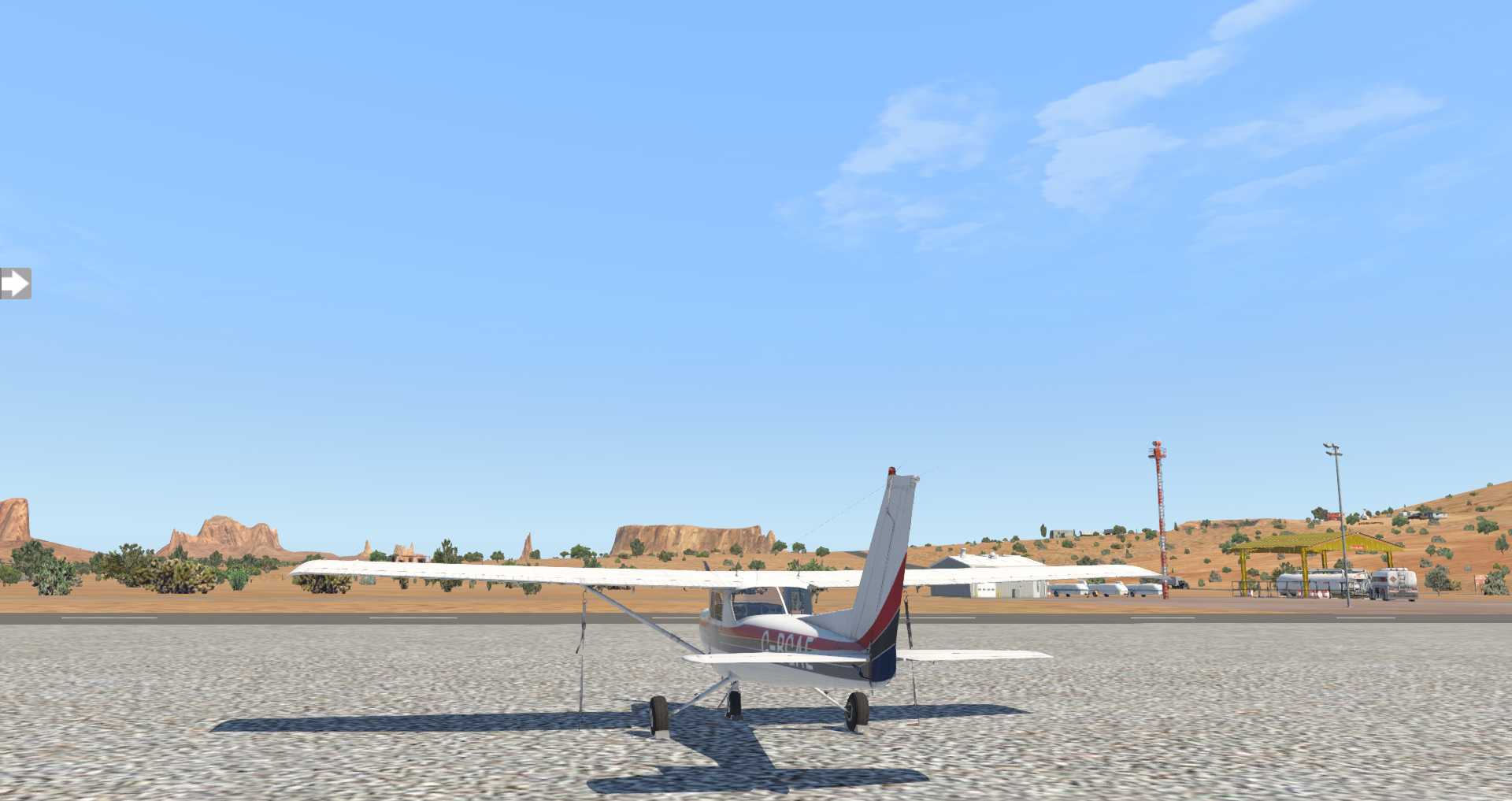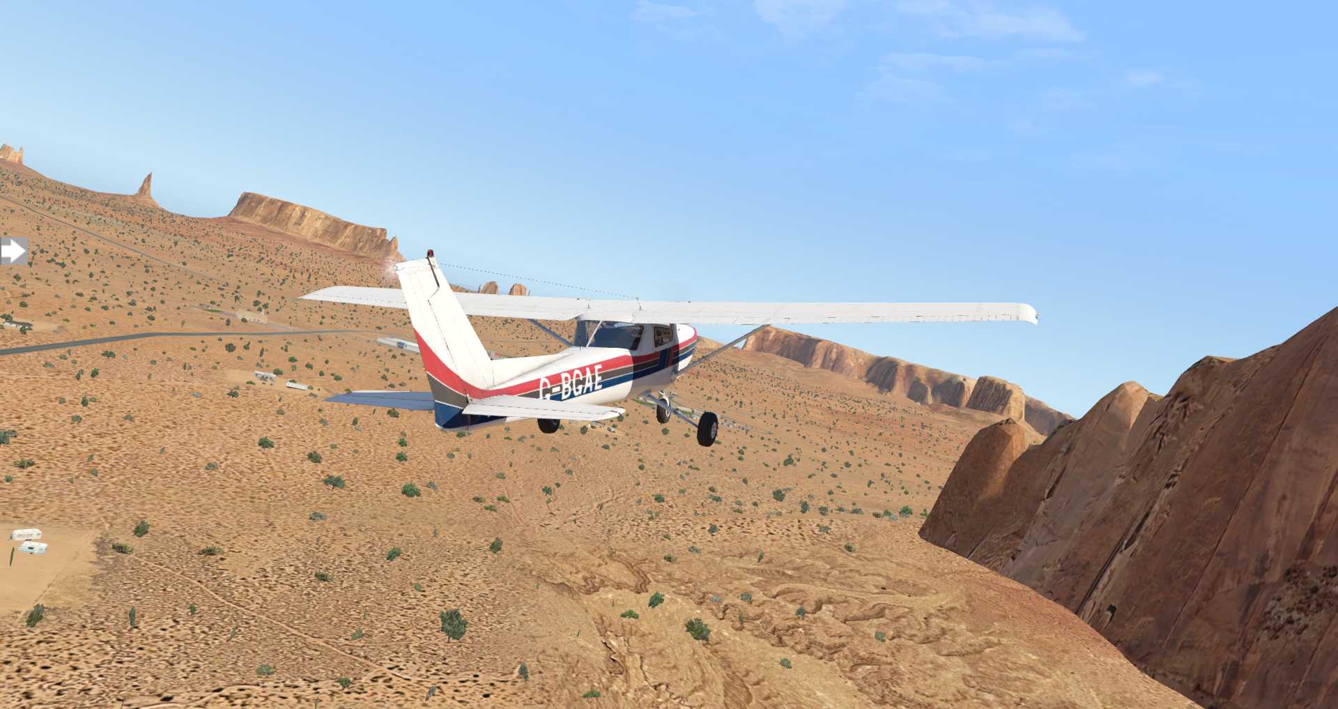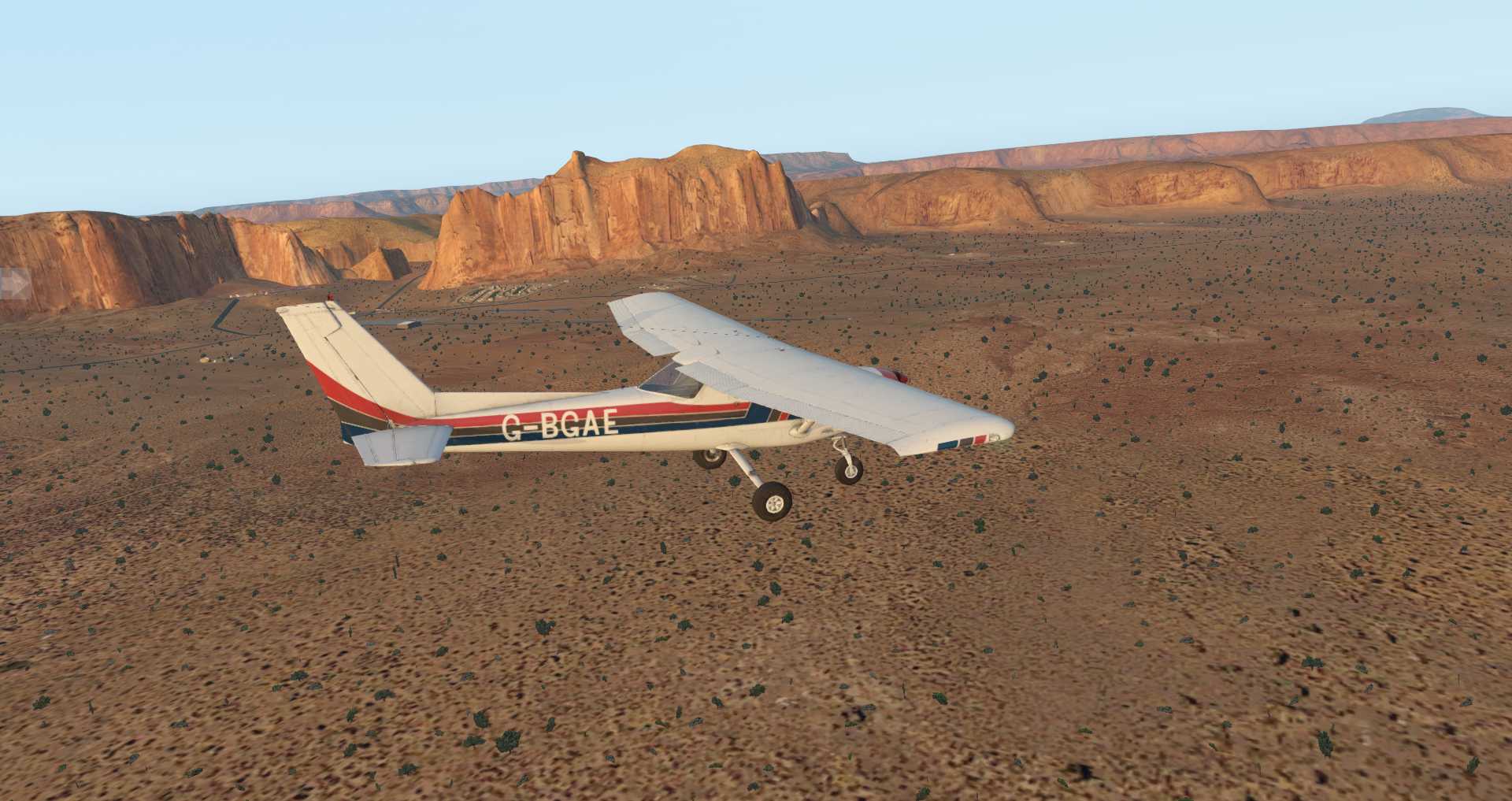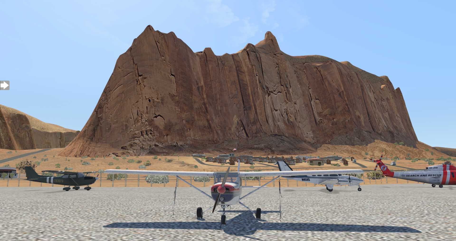 Doch wie sieht das Monument Valley in X-Plane aus? Um diese Frage zu klären, holte ich von JustFlight die kleine Cessna 152 heraus und ging vollkommen unvorbereitet zu UT25, einem kleinen Flugfeld im Monument Valley.