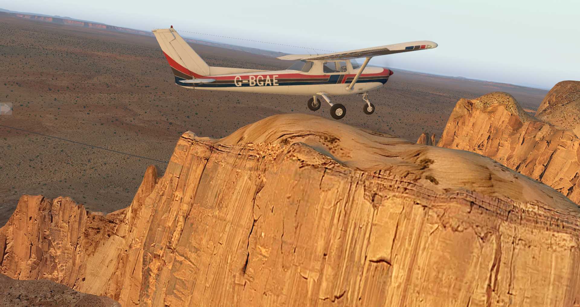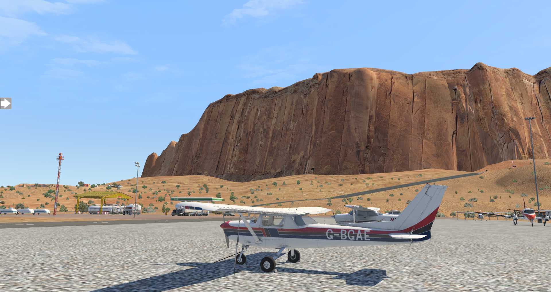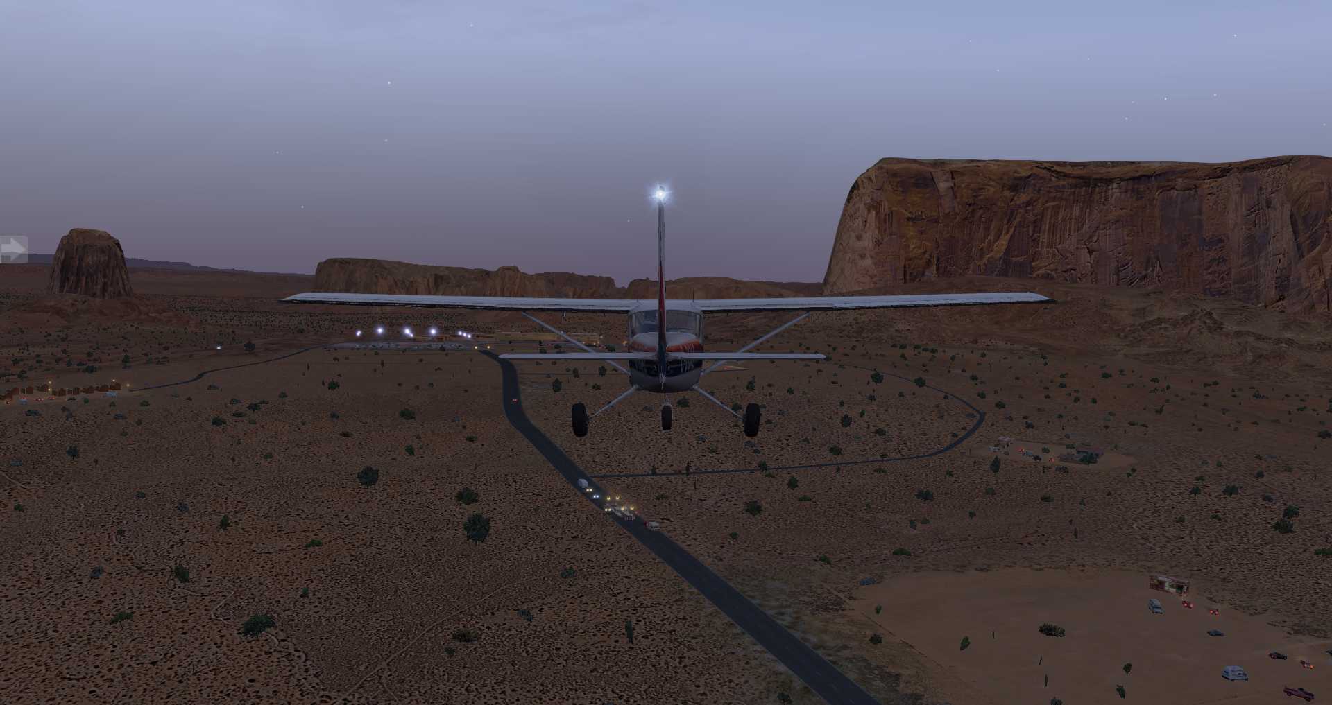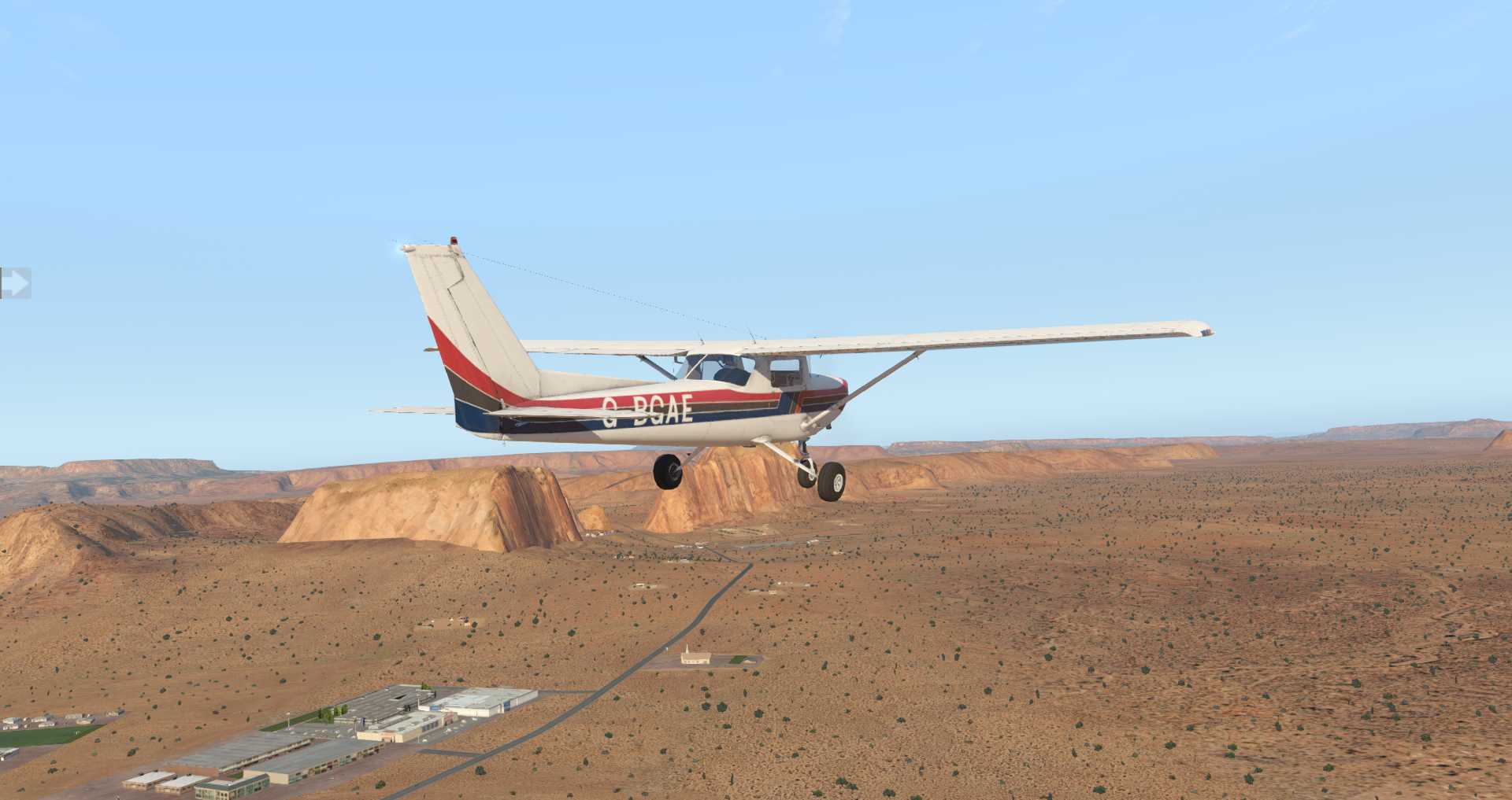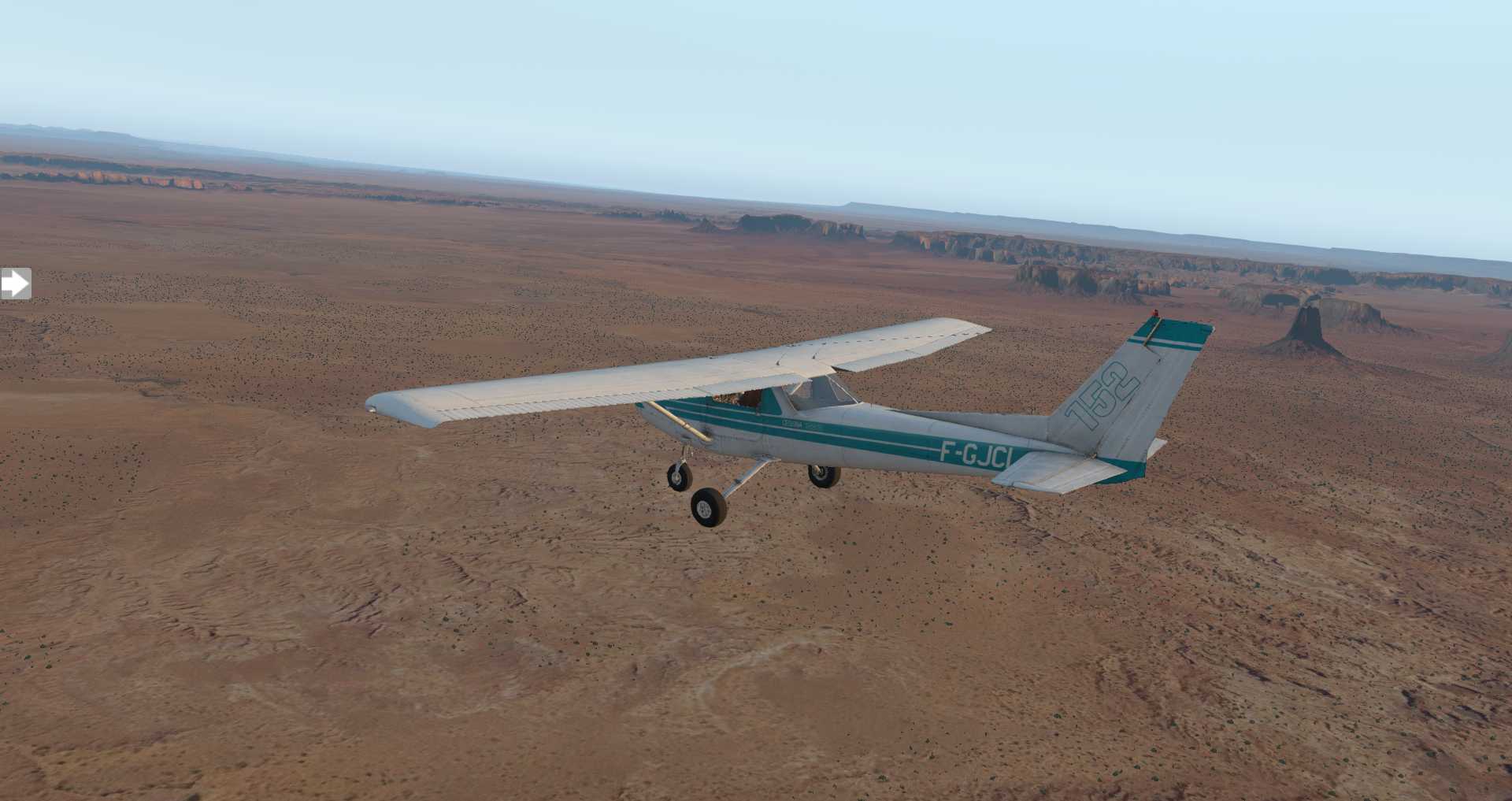 Doch wie sieht das Monument Valley in X-Plane aus? Um diese Frage zu klären, holte ich von JustFlight die kleine Cessna 152 heraus und ging vollkommen unvorbereitet zu UT25, einem kleinen Flugfeld im Monument Valley.
