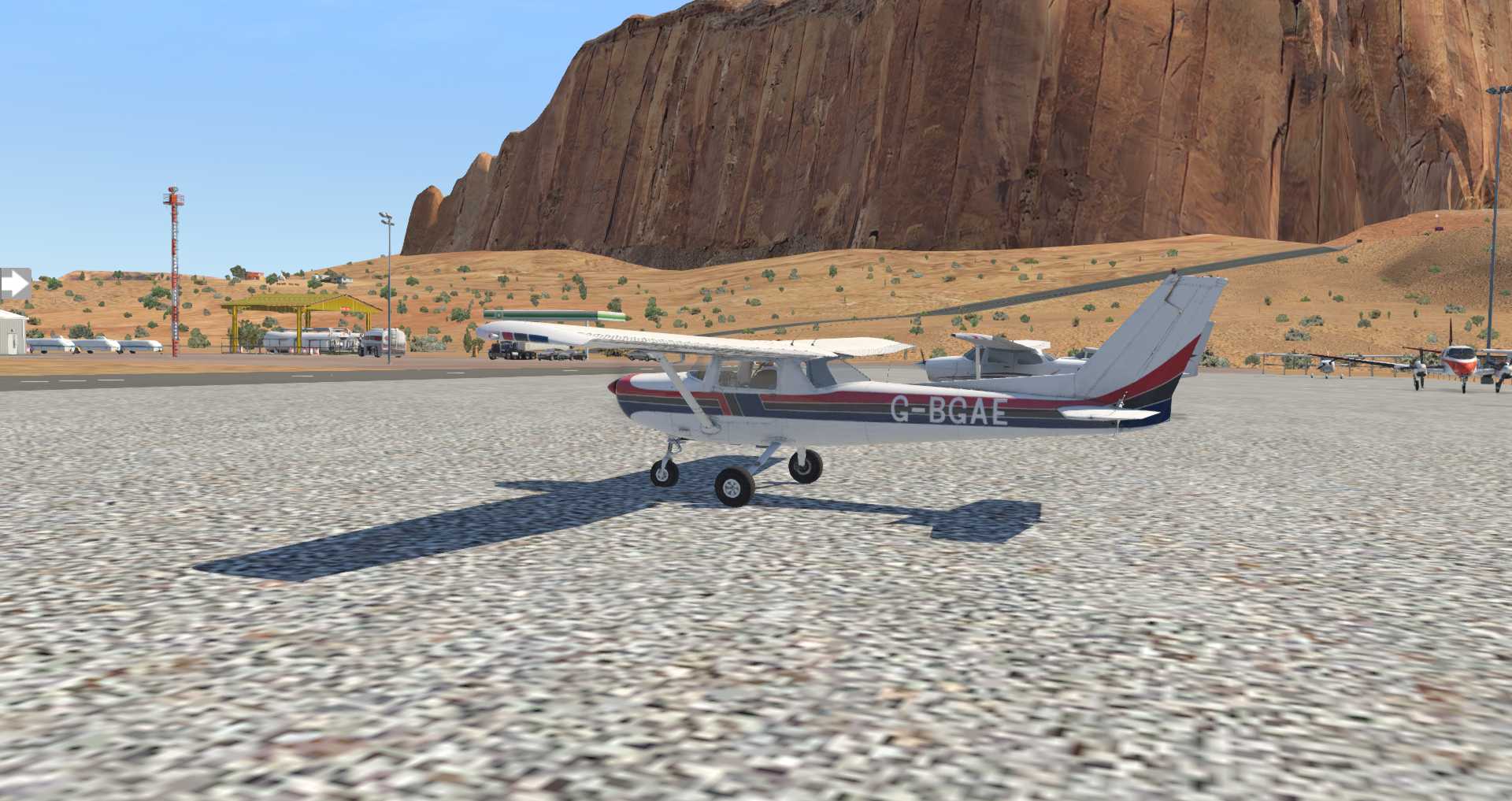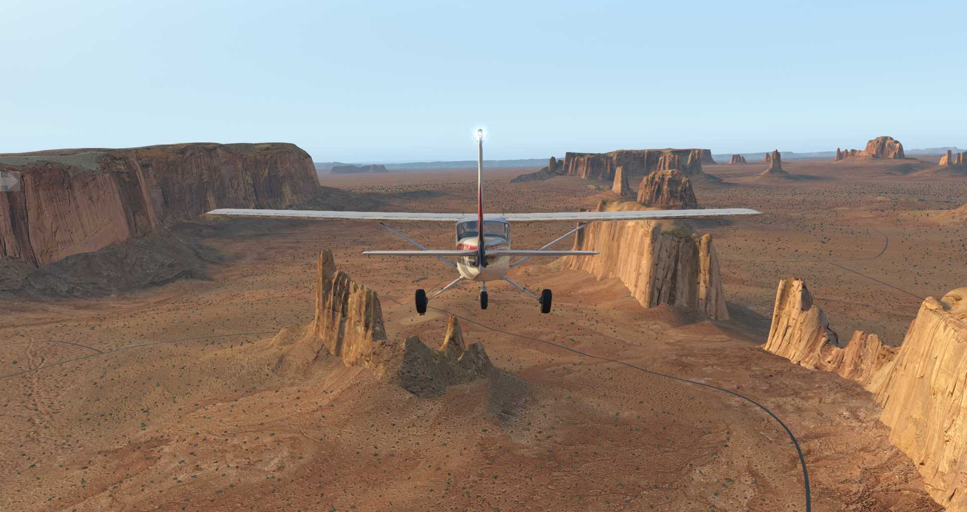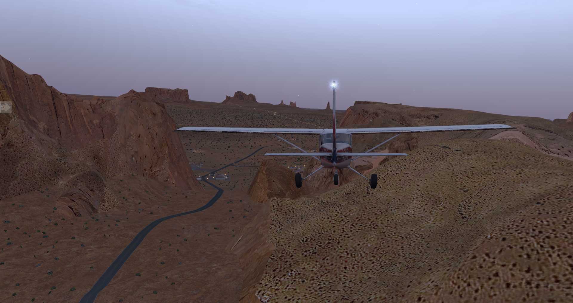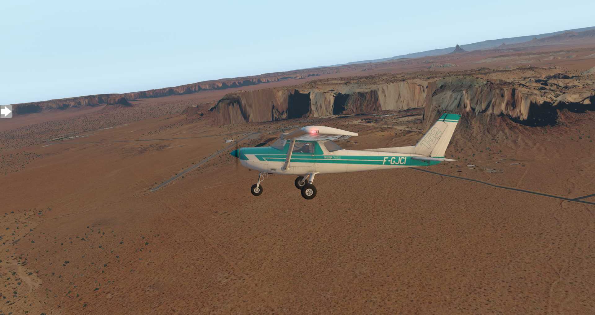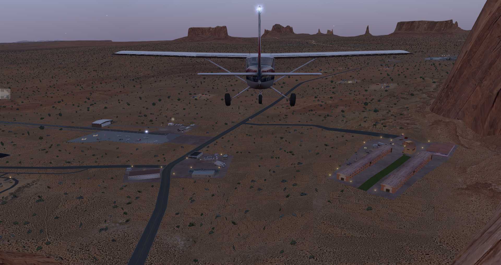 Doch wie sieht das Monument Valley in X-Plane aus? Um diese Frage zu klären, holte ich von JustFlight die kleine Cessna 152 heraus und ging vollkommen unvorbereitet zu UT25, einem kleinen Flugfeld im Monument Valley.
