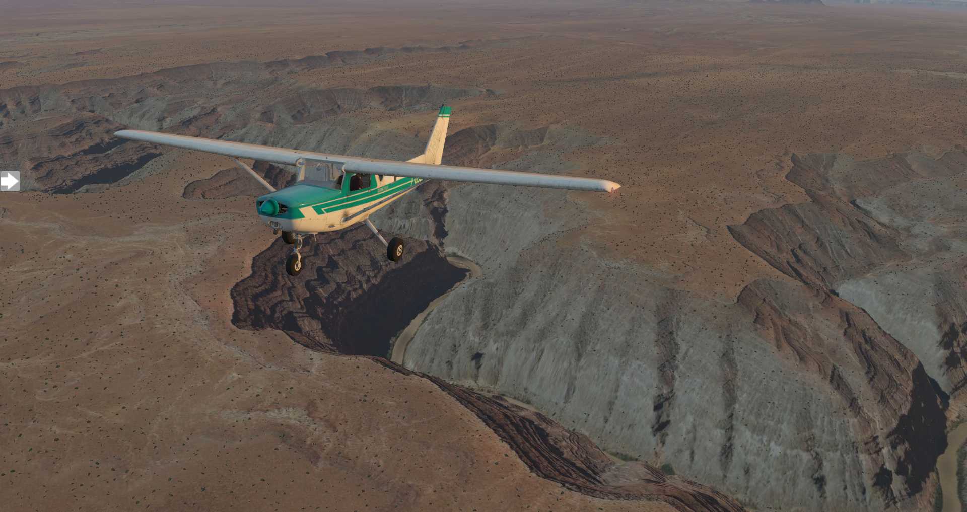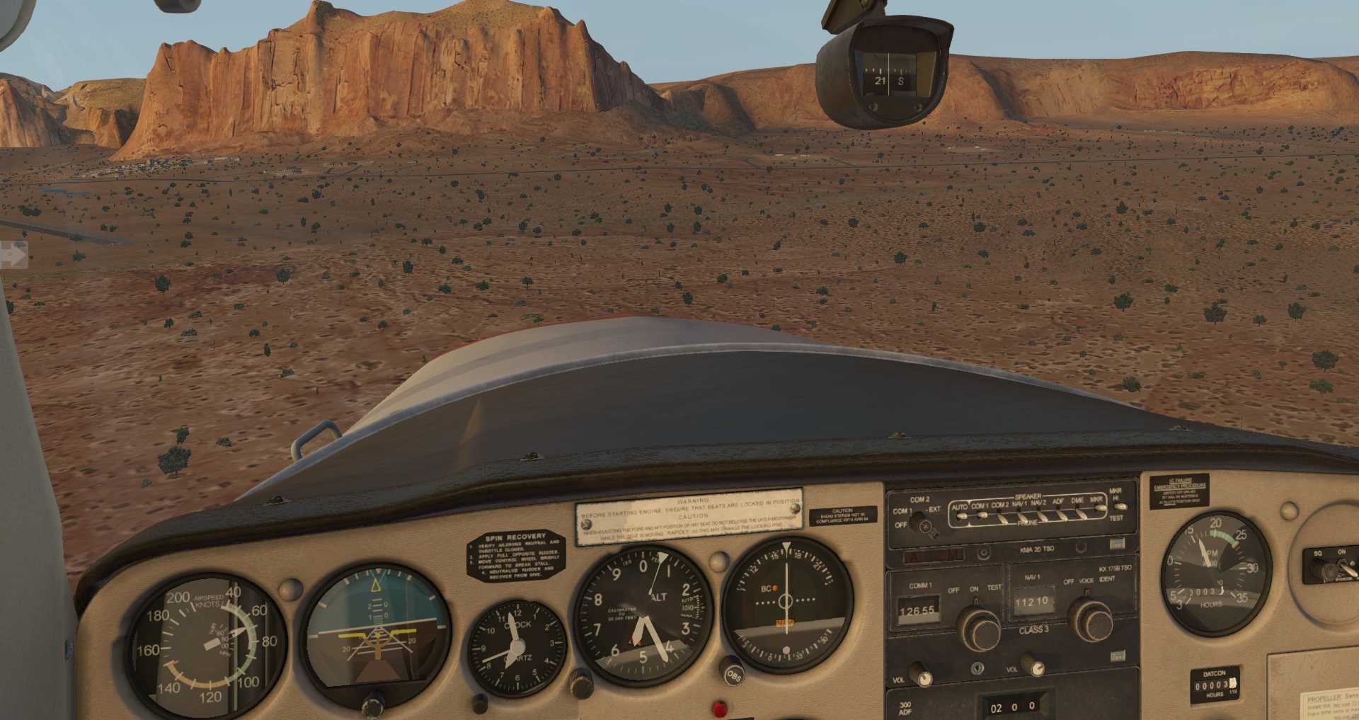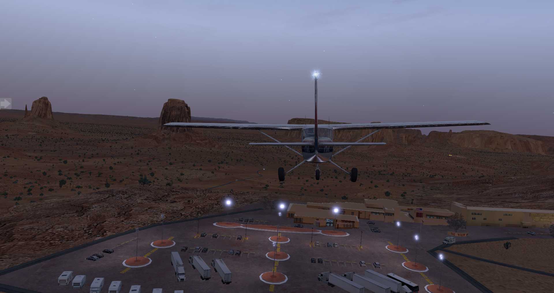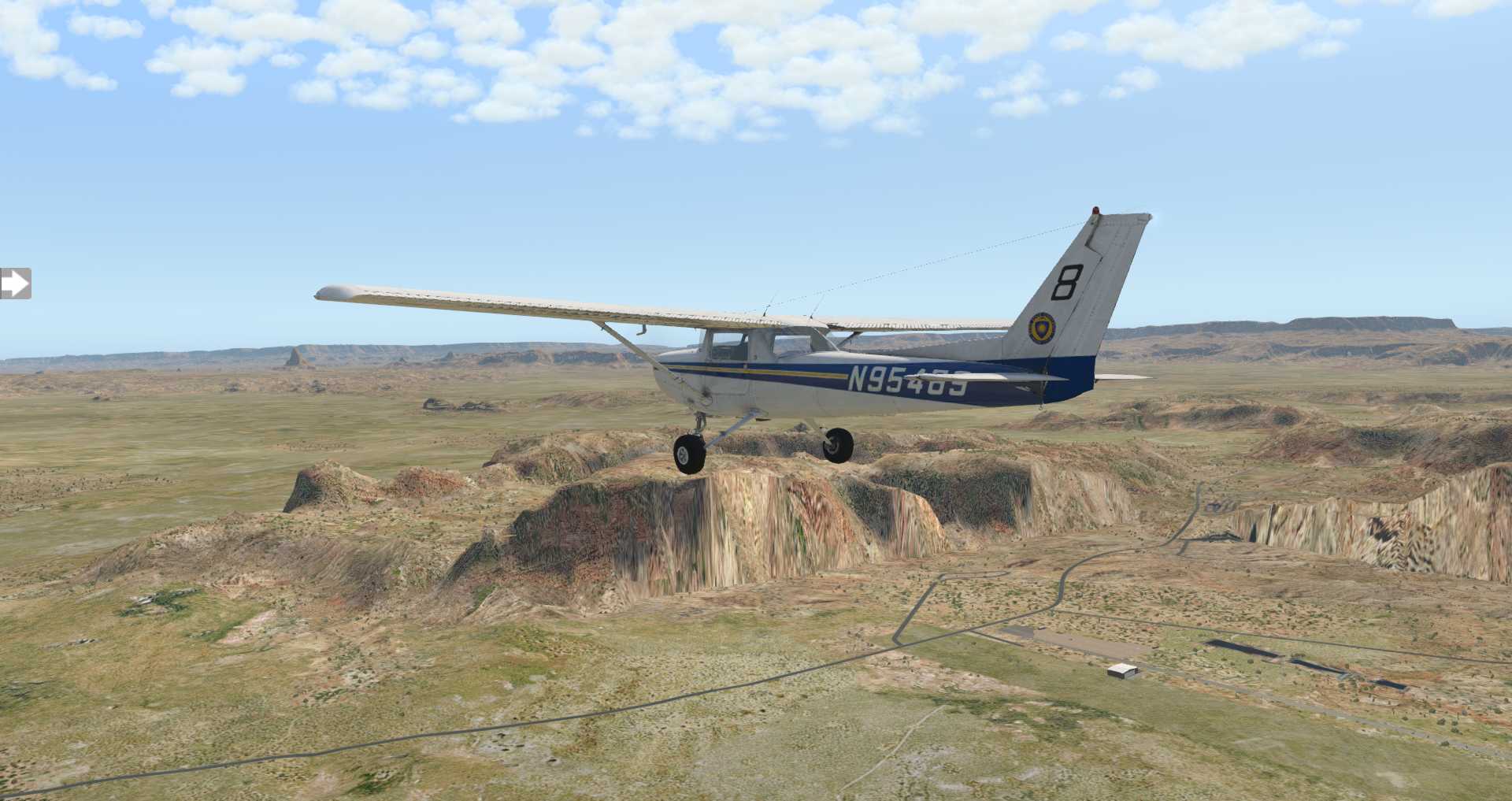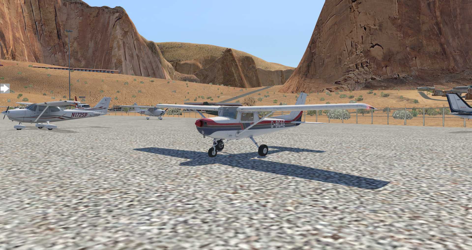 Doch wie sieht das Monument Valley in X-Plane aus? Um diese Frage zu klären, holte ich von JustFlight die kleine Cessna 152 heraus und ging vollkommen unvorbereitet zu UT25, einem kleinen Flugfeld im Monument Valley.