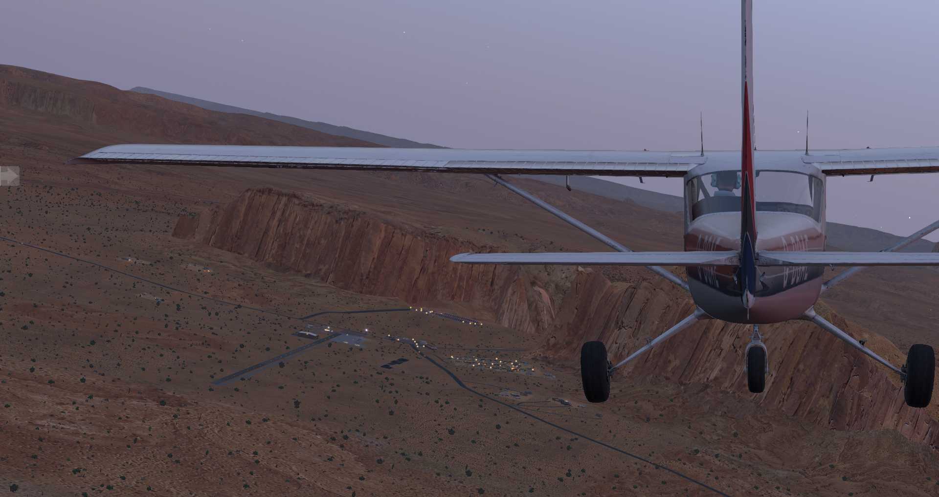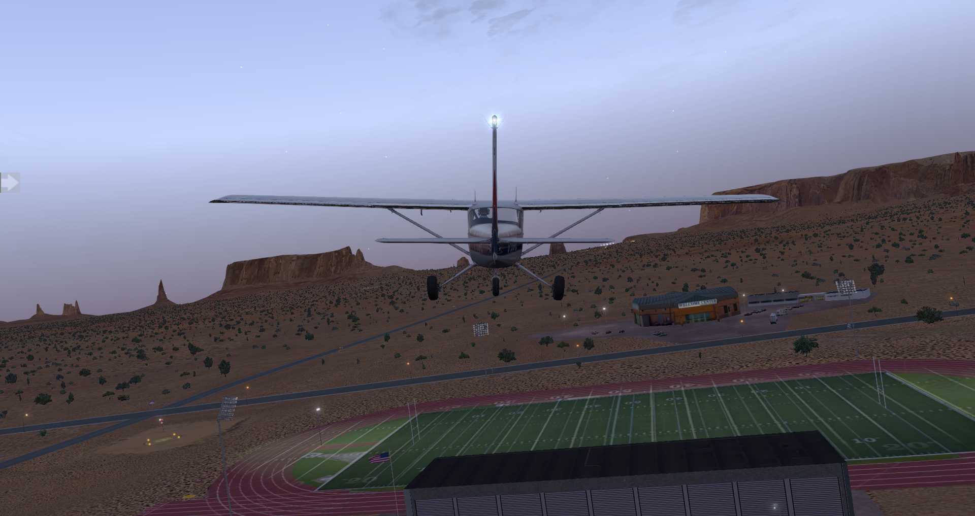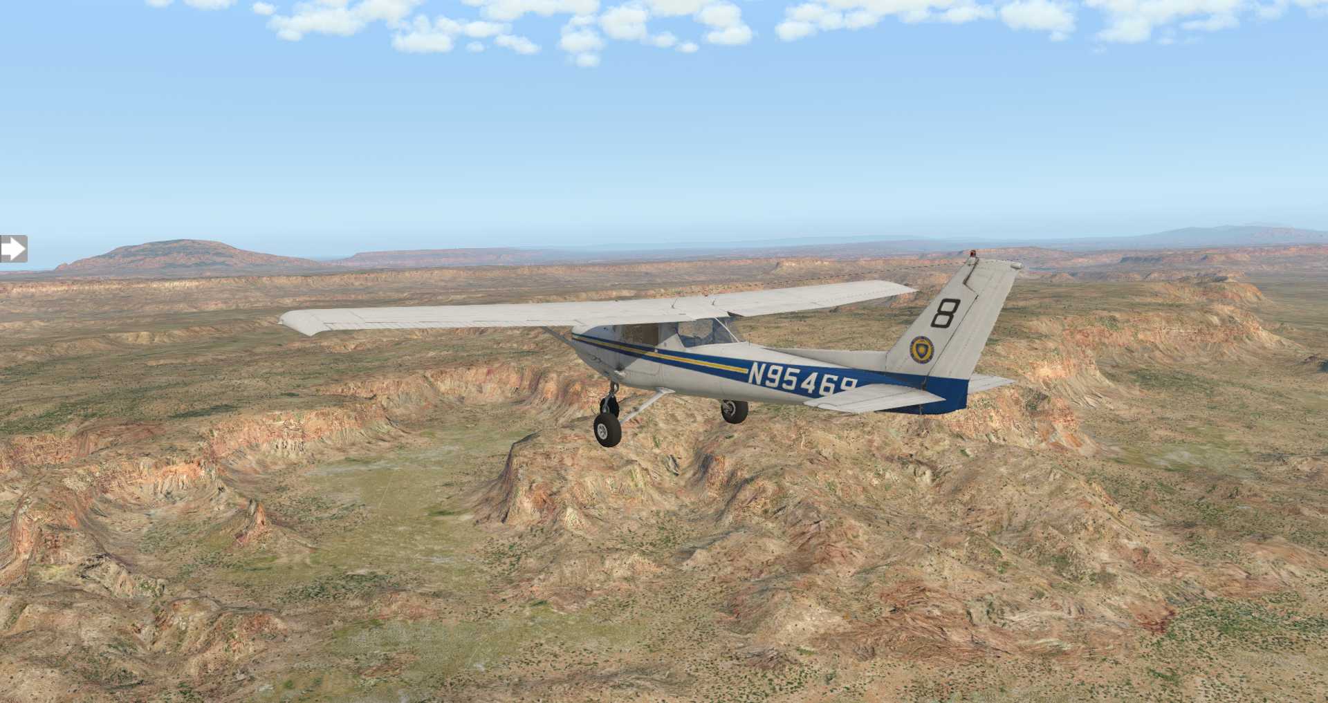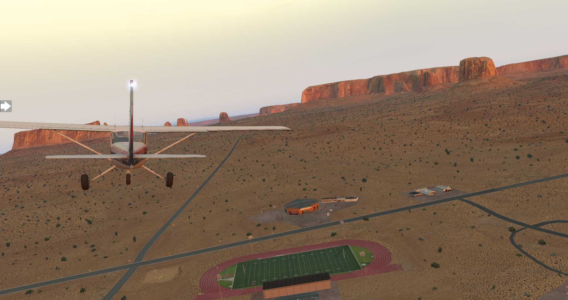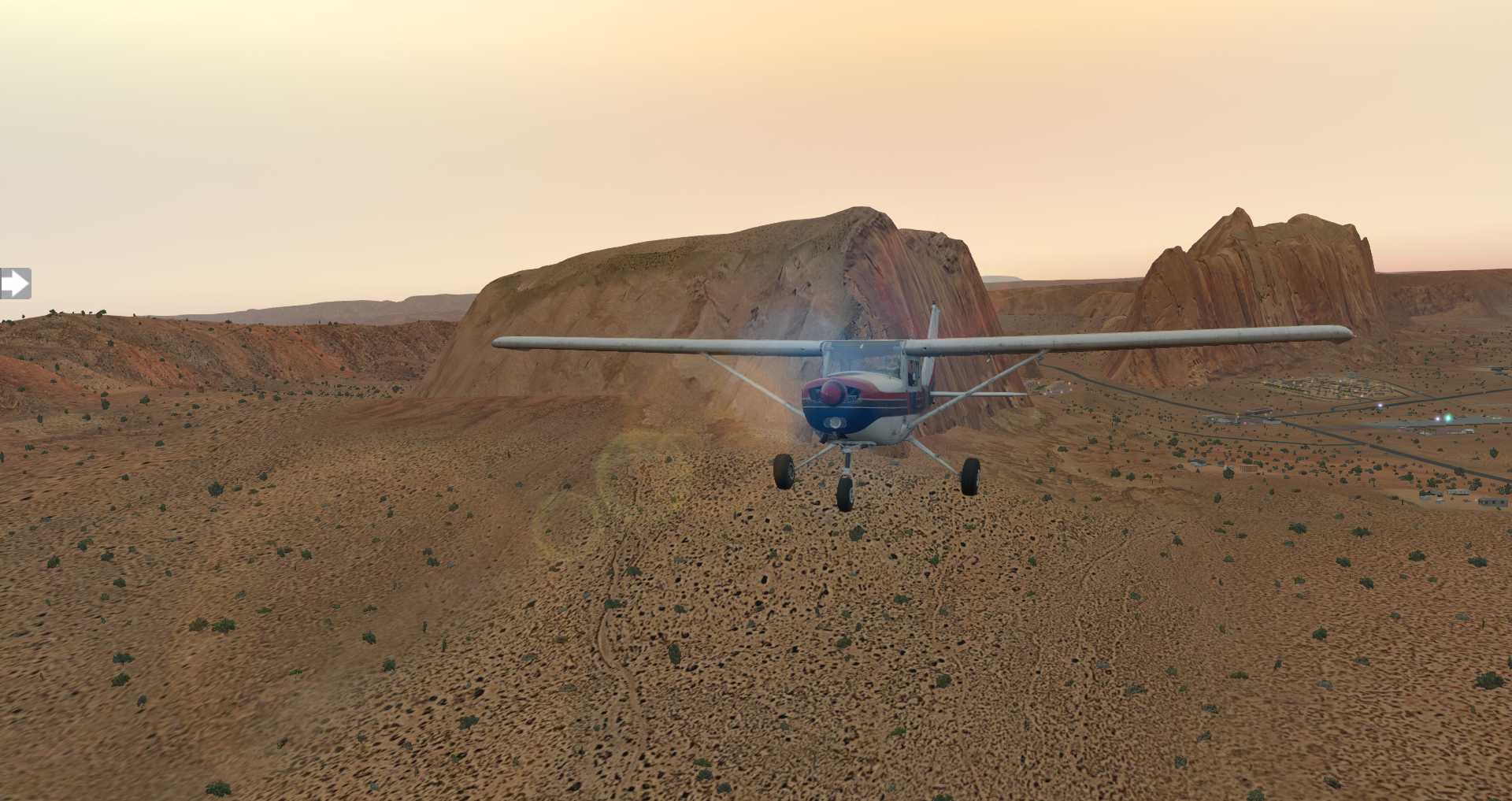 Doch wie sieht das Monument Valley in X-Plane aus? Um diese Frage zu klären, holte ich von JustFlight die kleine Cessna 152 heraus und ging vollkommen unvorbereitet zu UT25, einem kleinen Flugfeld im Monument Valley.