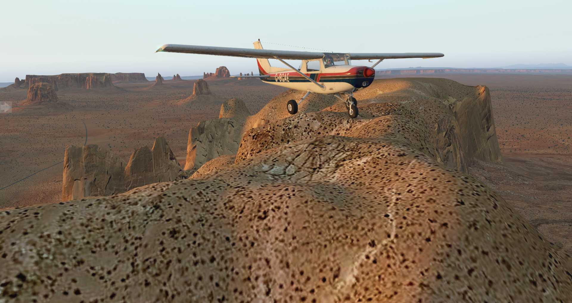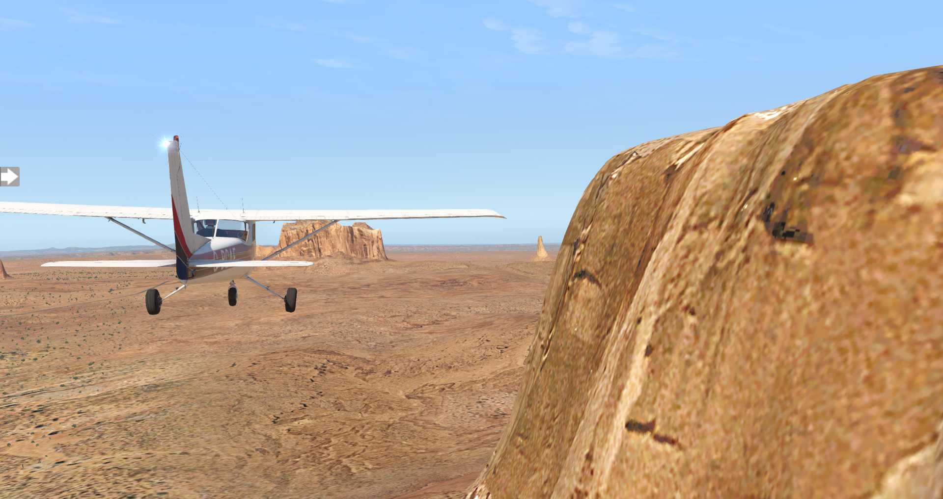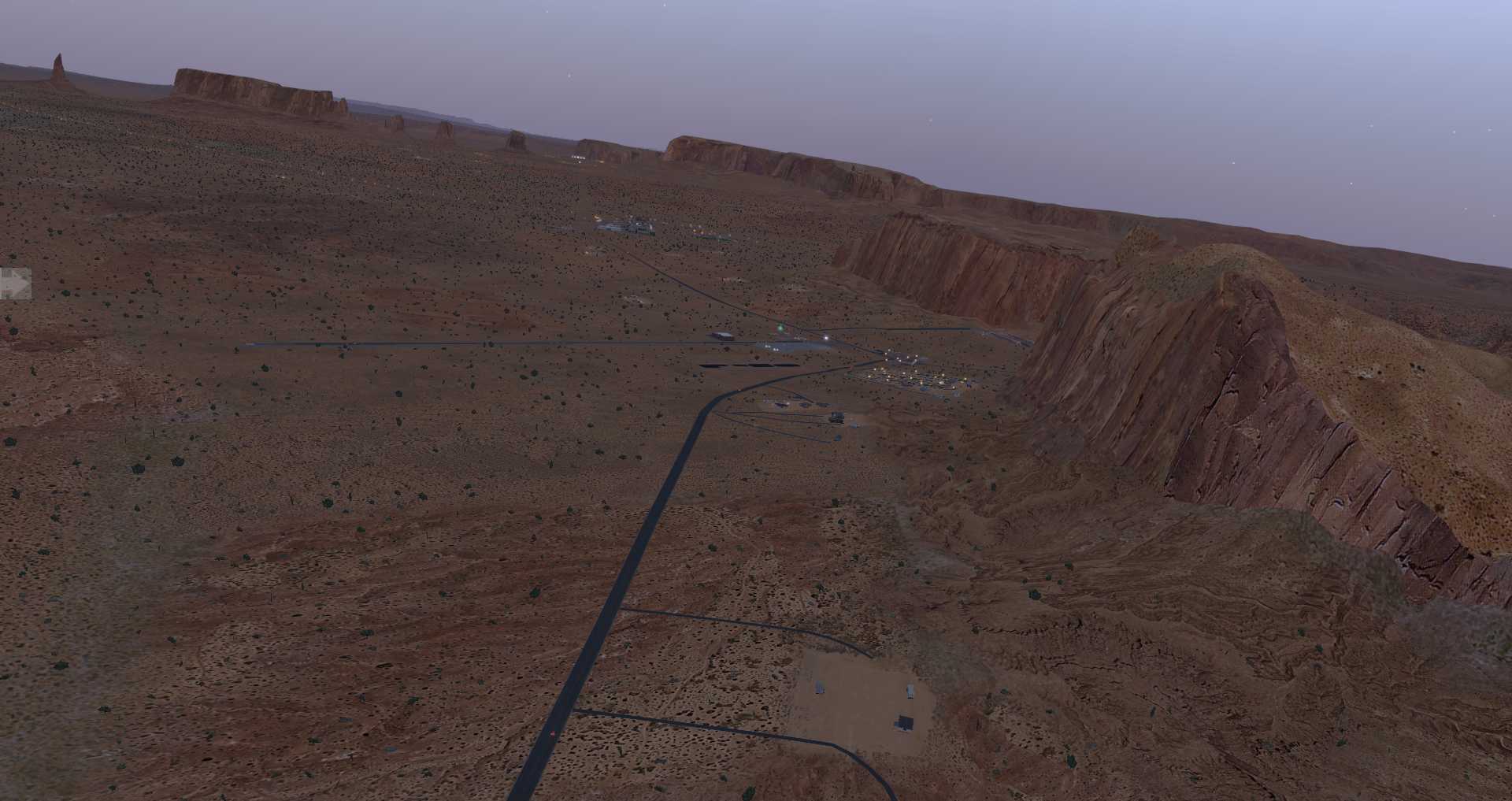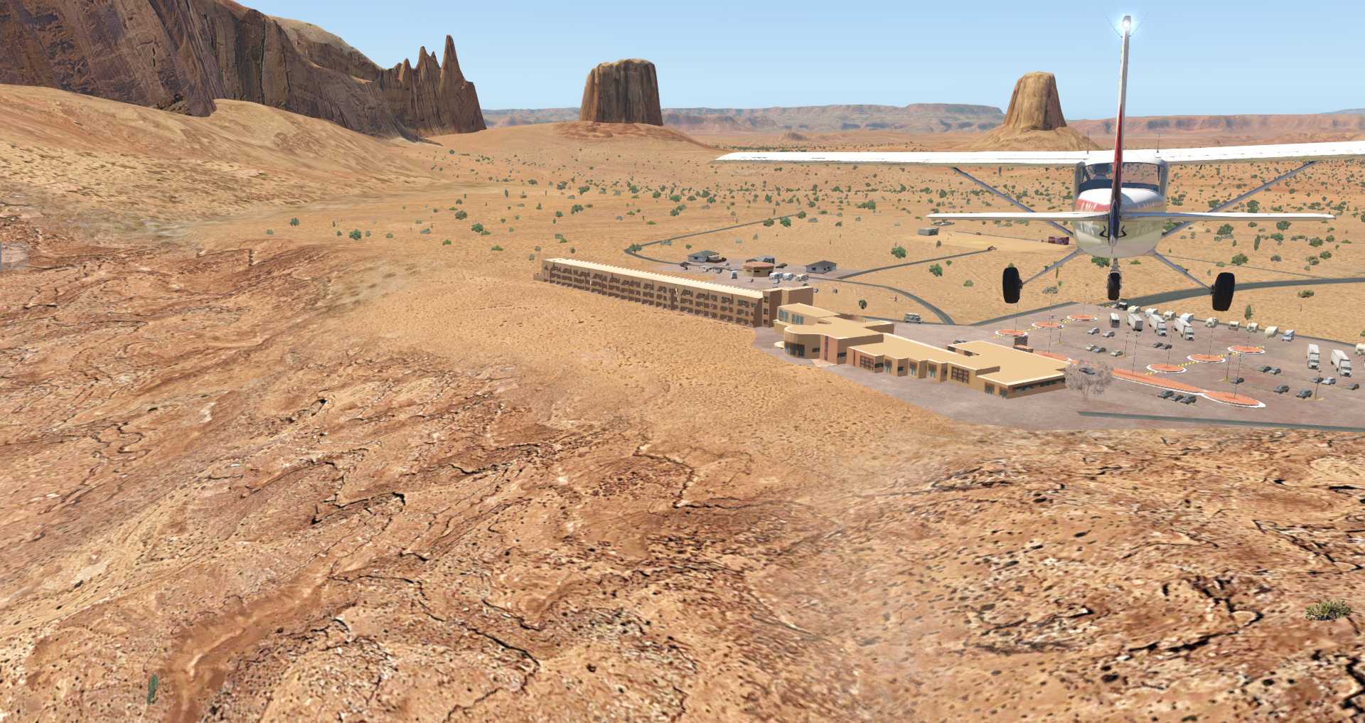Schon muss sich das Terrainmodell nur noch um das allgemeine Geländeniveau kümmern., das Dank Fototexturen noch nicht einmal besonders detailliert vorliegen muss. Das war das eigentliche Erfolgsgeheimnis des OrbX Monument Valley für den FSX/P3D.