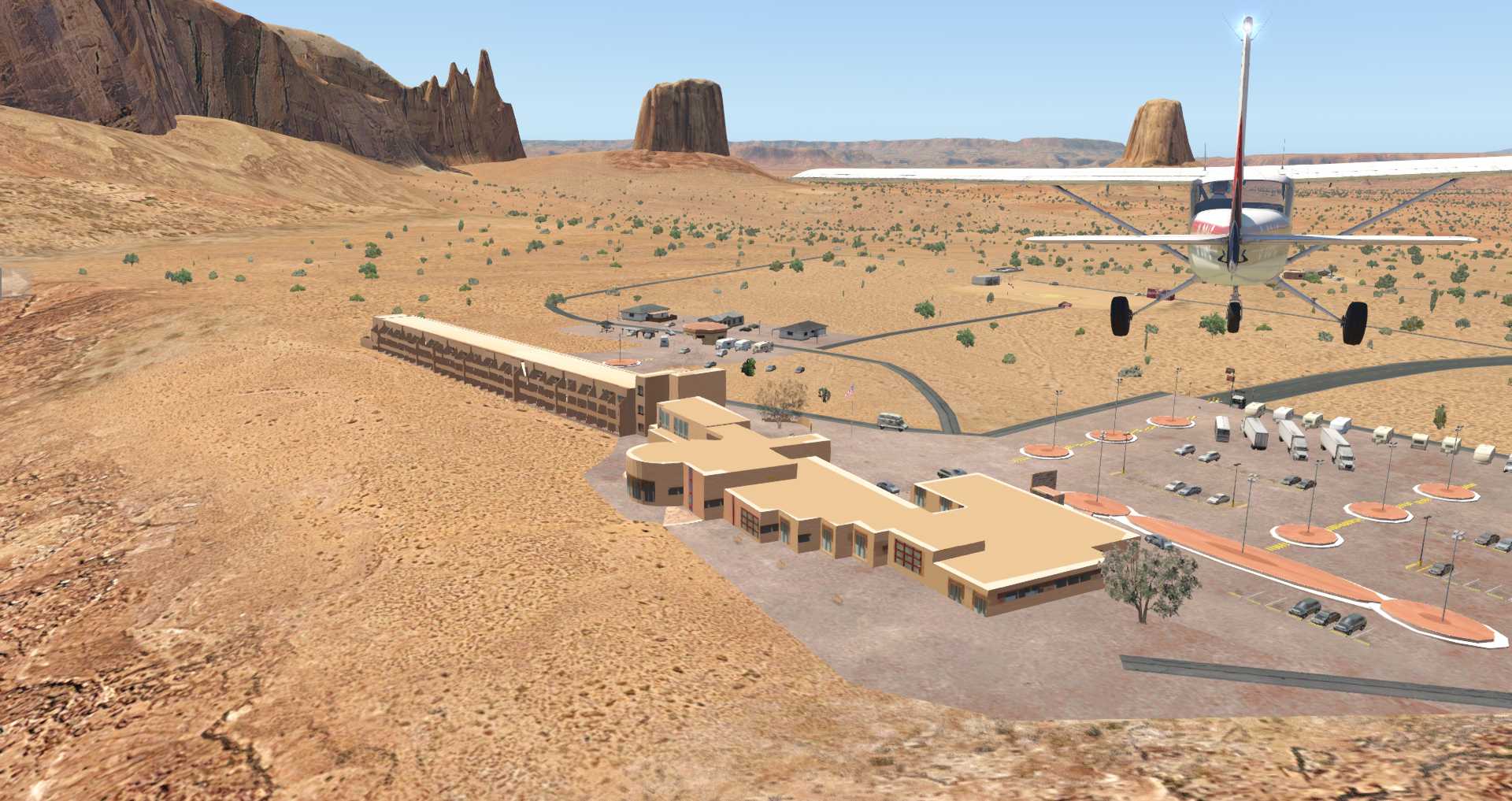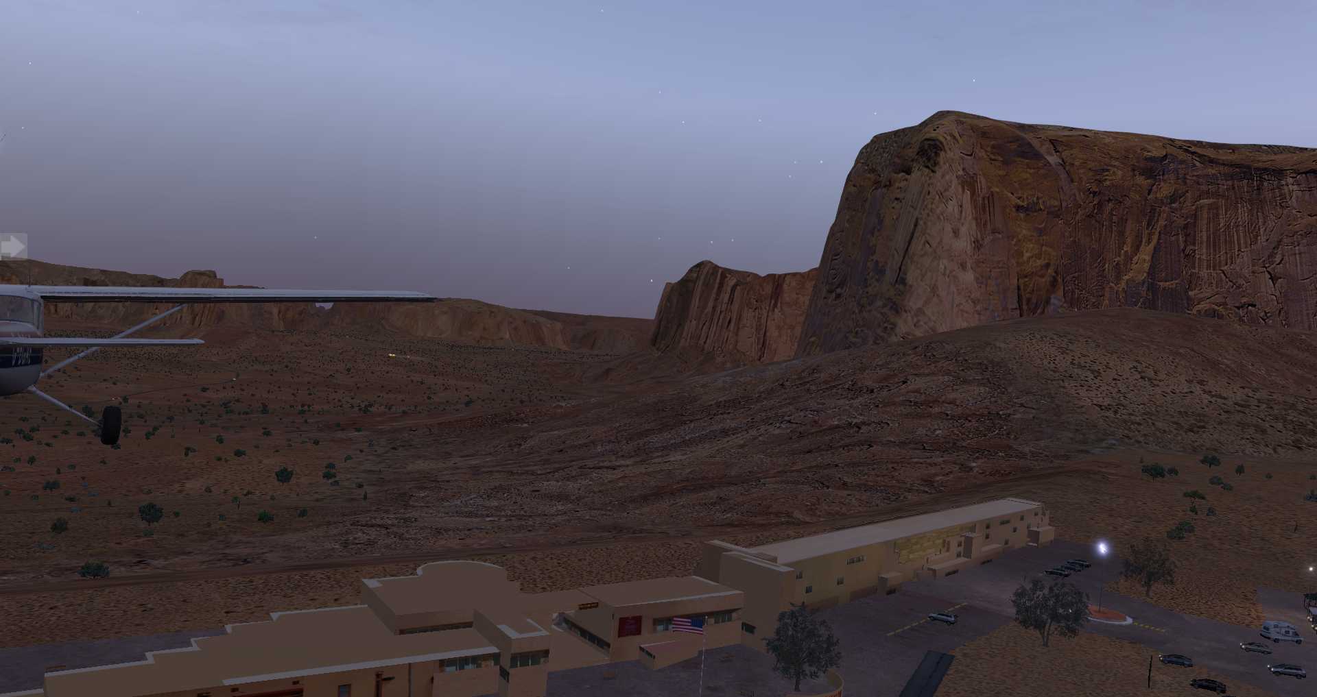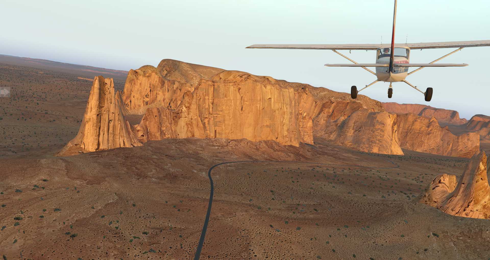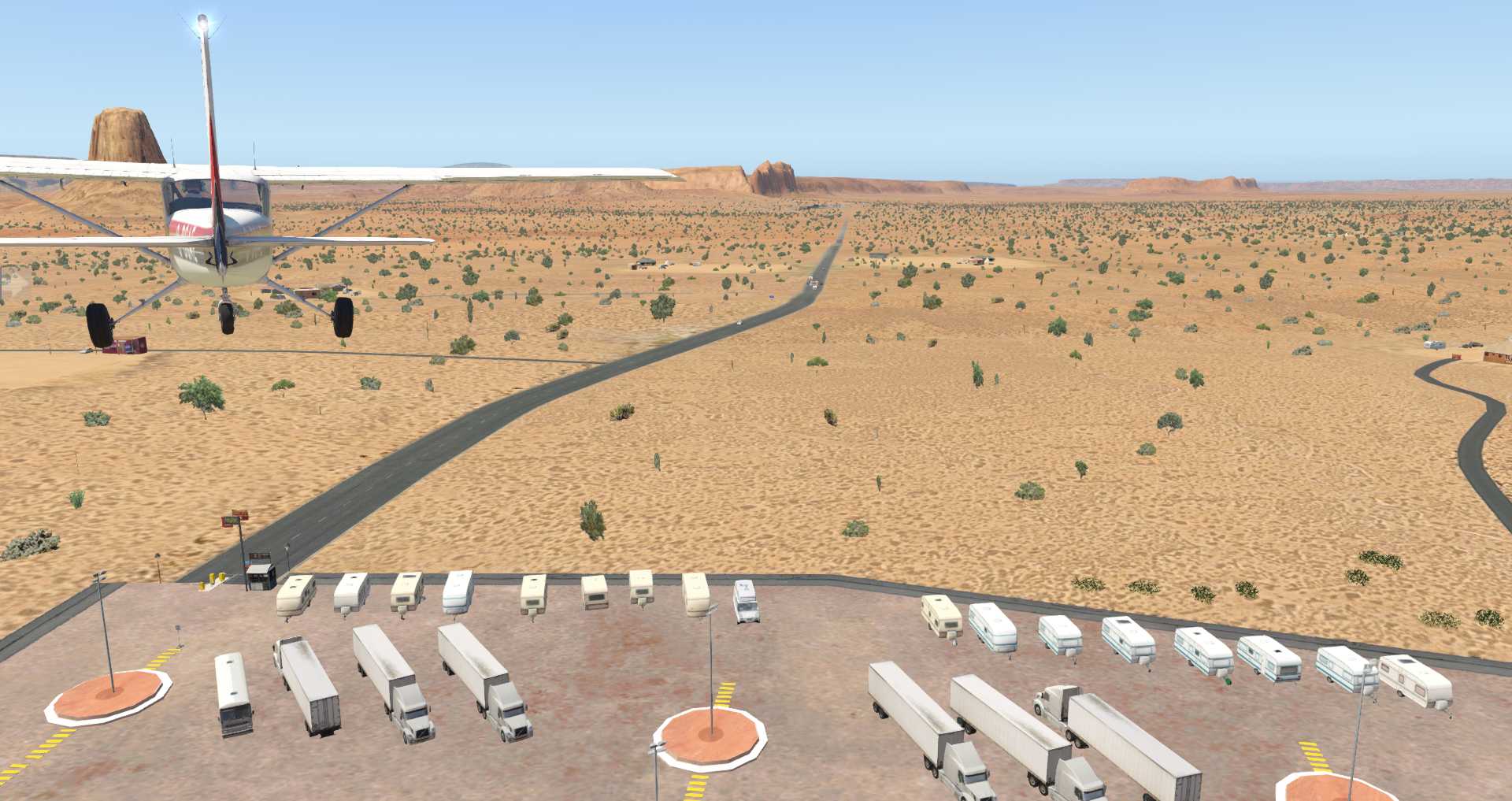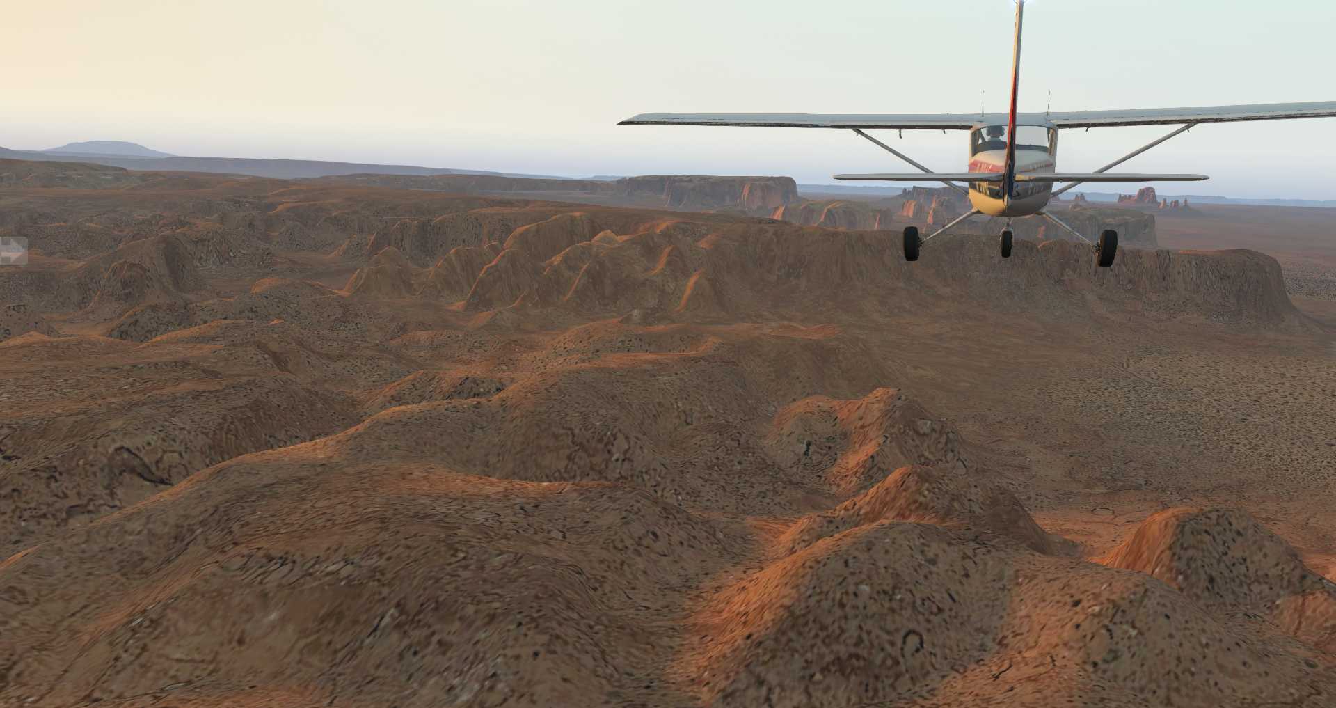Schon muss sich das Terrainmodell nur noch um das allgemeine Geländeniveau kümmern., das Dank Fototexturen noch nicht einmal besonders detailliert vorliegen muss. Das war das eigentliche Erfolgsgeheimnis des OrbX Monument Valley für den FSX/P3D.