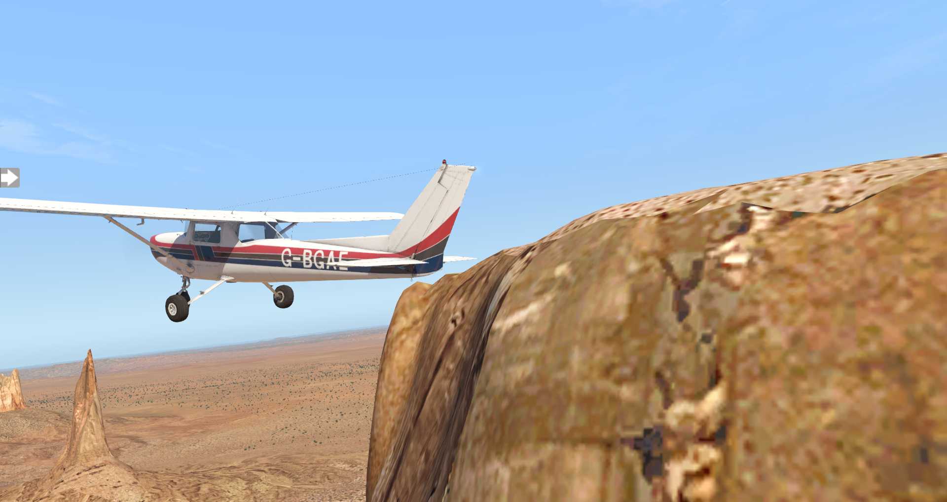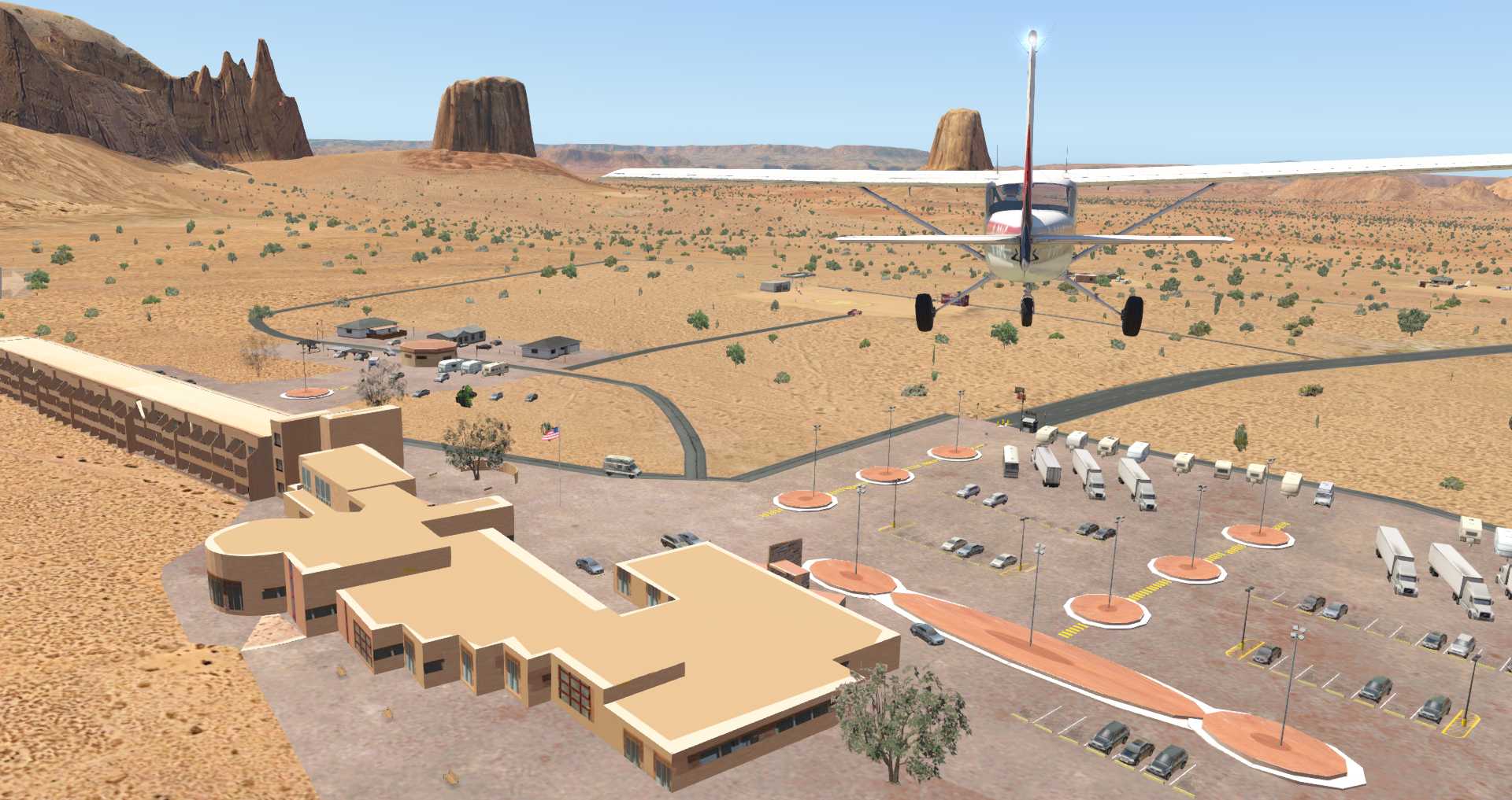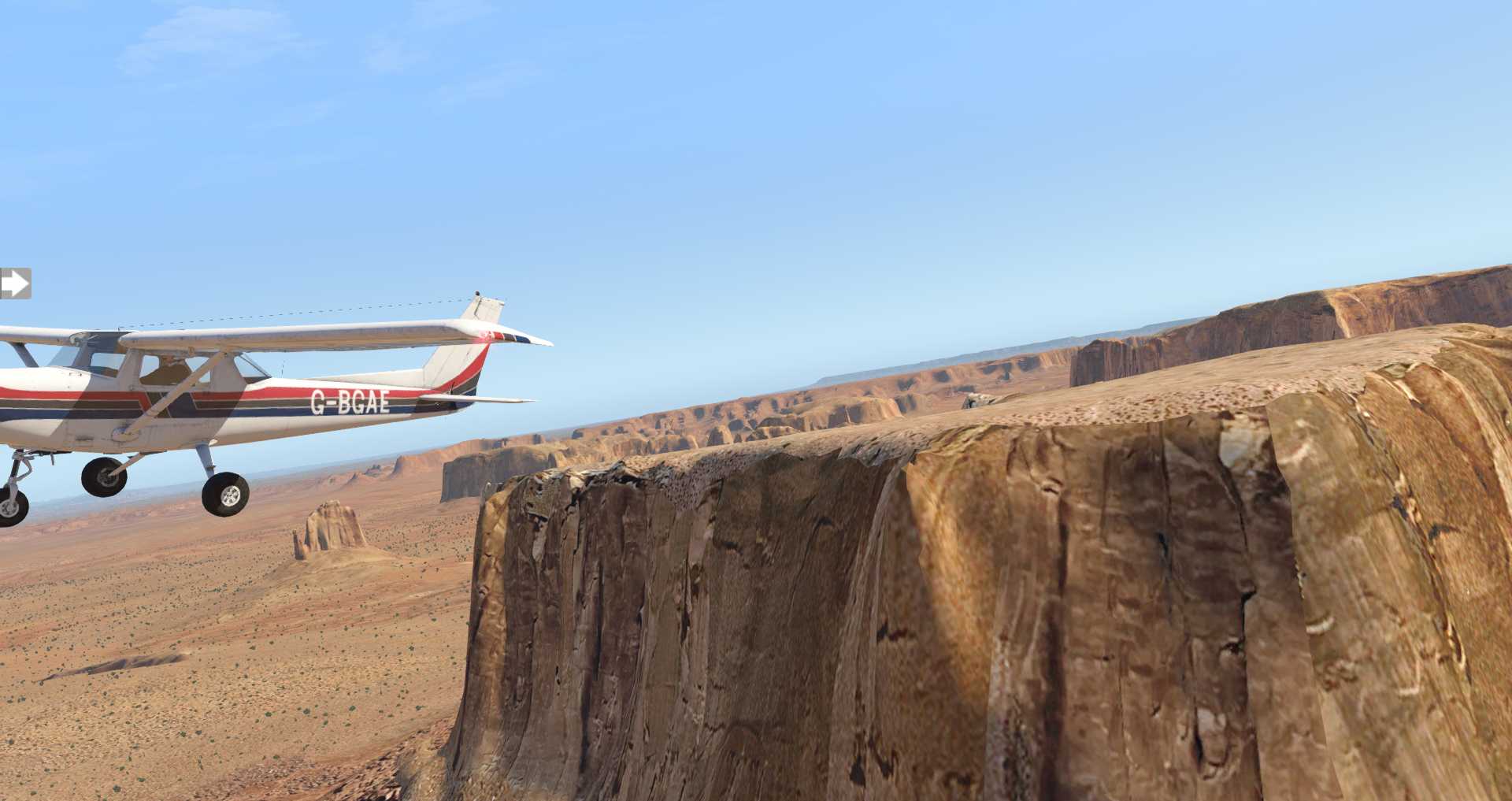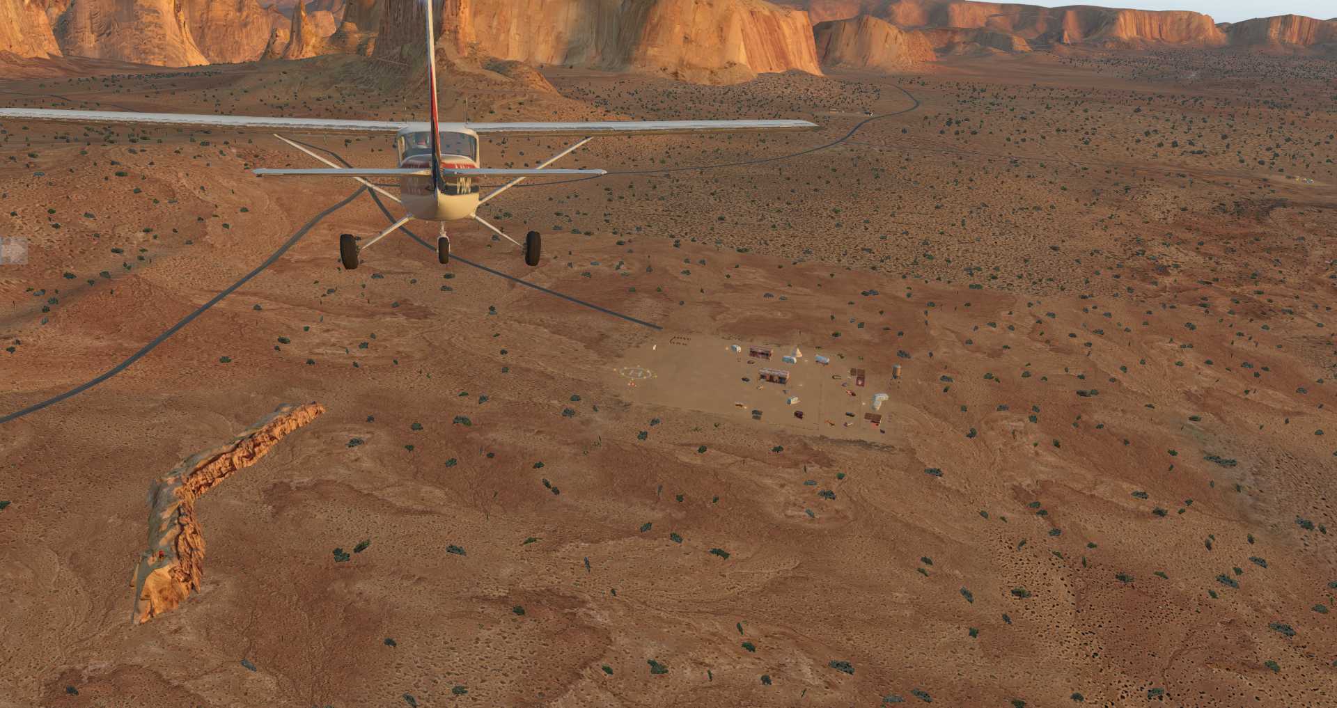 Schon muss sich das Terrainmodell nur noch um das allgemeine Geländeniveau kümmern., das Dank Fototexturen noch nicht einmal besonders detailliert vorliegen muss. Das war das eigentliche Erfolgsgeheimnis des OrbX Monument Valley für den FSX/P3D.