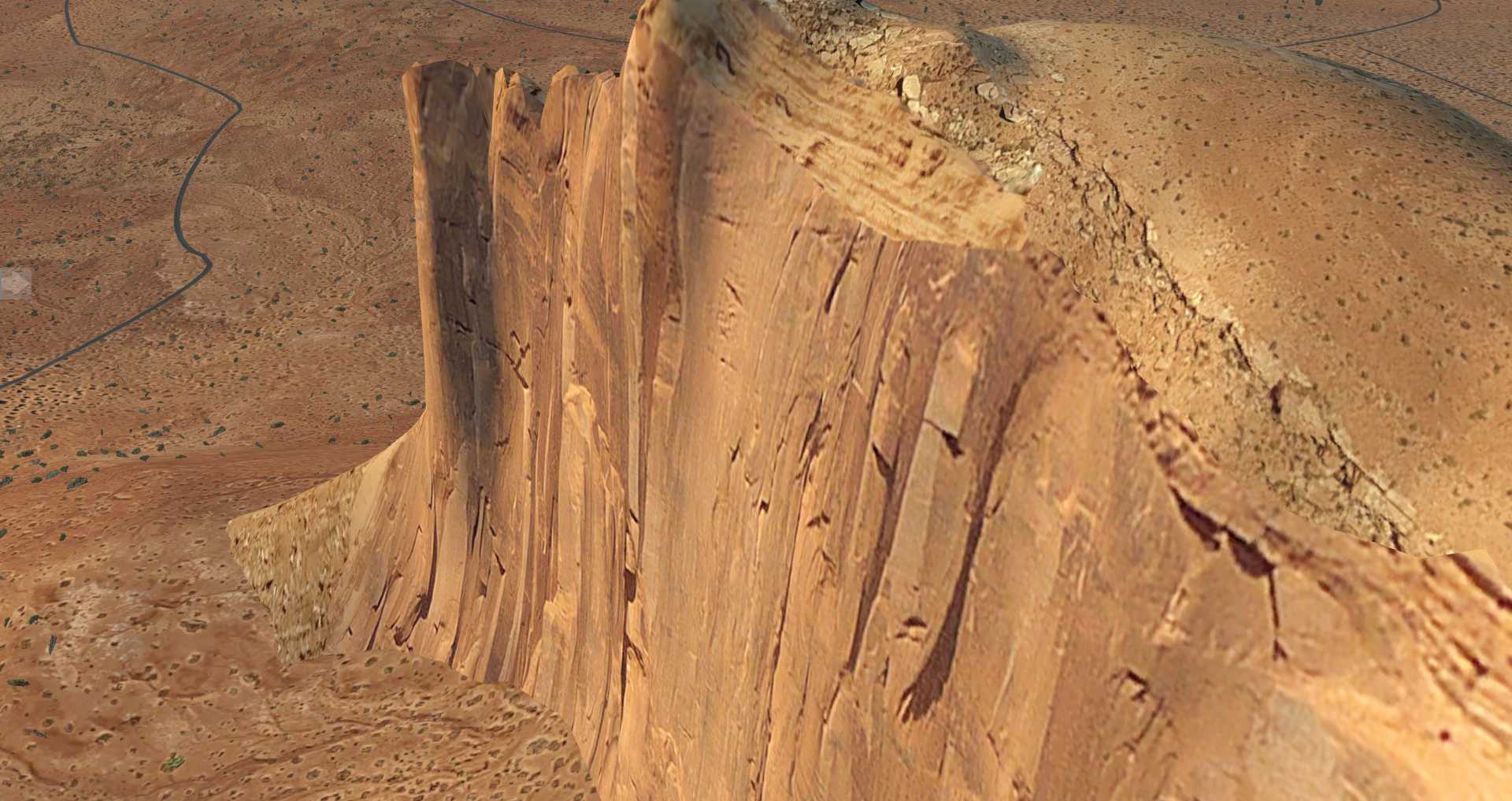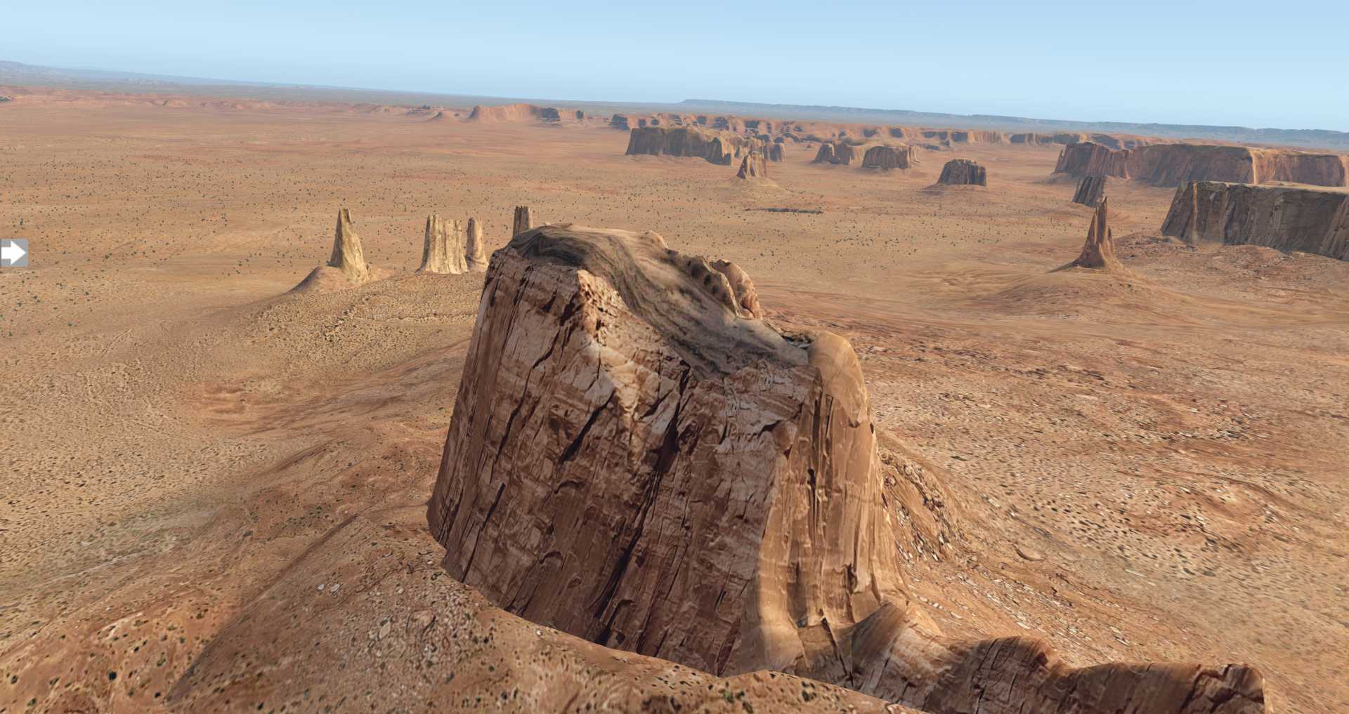 Doch wie sollte man in dieser Landschaft das Monument Valley erkennen? Teilweise sind die Felsstrukturen zu feingliedrig für die generischen Strukturen des normalen Mesh oder auch des UHD Mesh, die nun einmal darauf ausgelegt sind ganze Gebiete darzustellen.