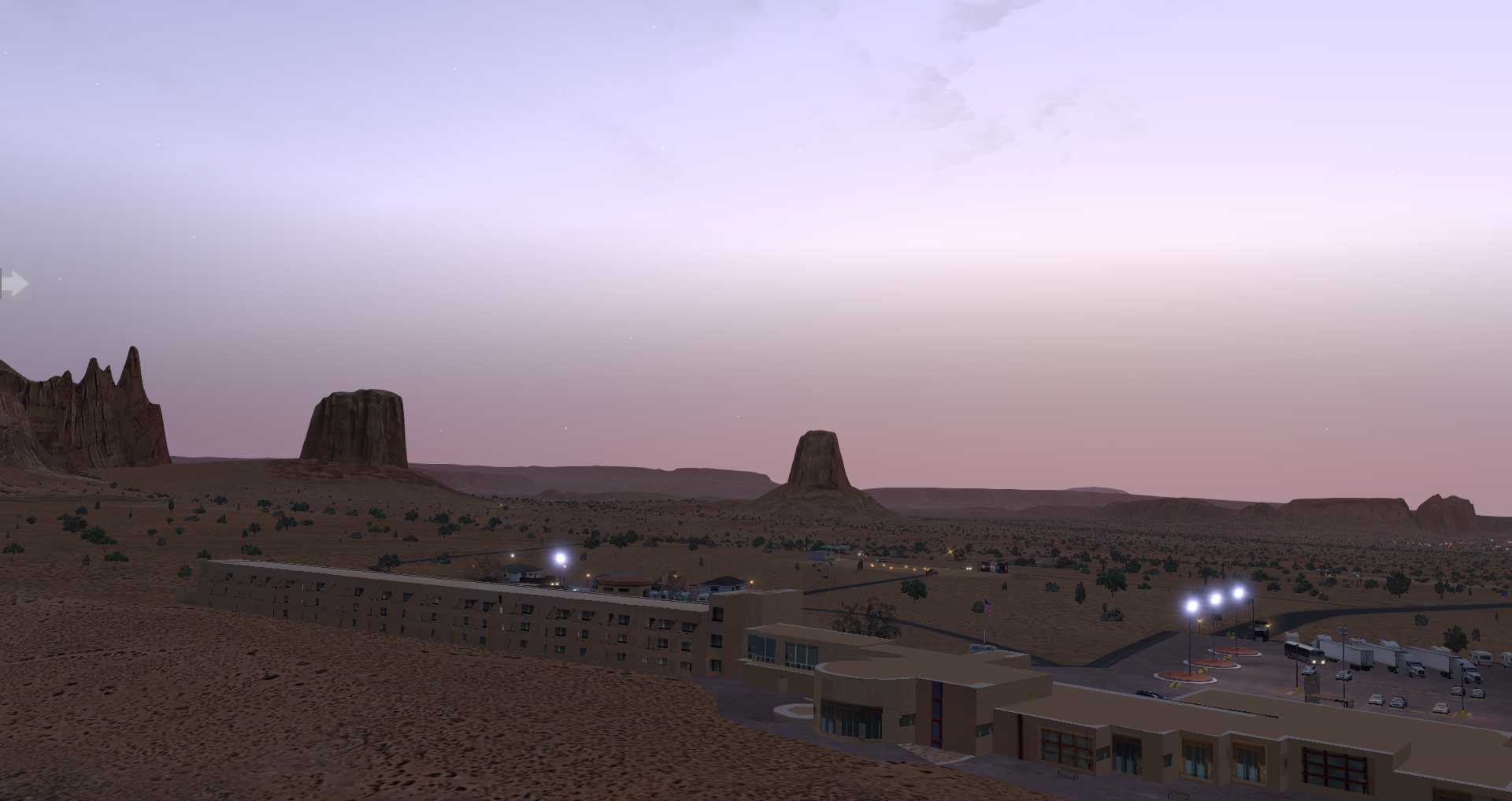 Wenn wir uns das Hotel aus der Nähe ansehen, können wir sehen, dass es schon recht detailliert ist, aber der Entwickler hat versucht die Anzahl der Polygone gering zu halten. Das Gelände und die Felsmonumente spielen eindeutig die Hauptrolle.