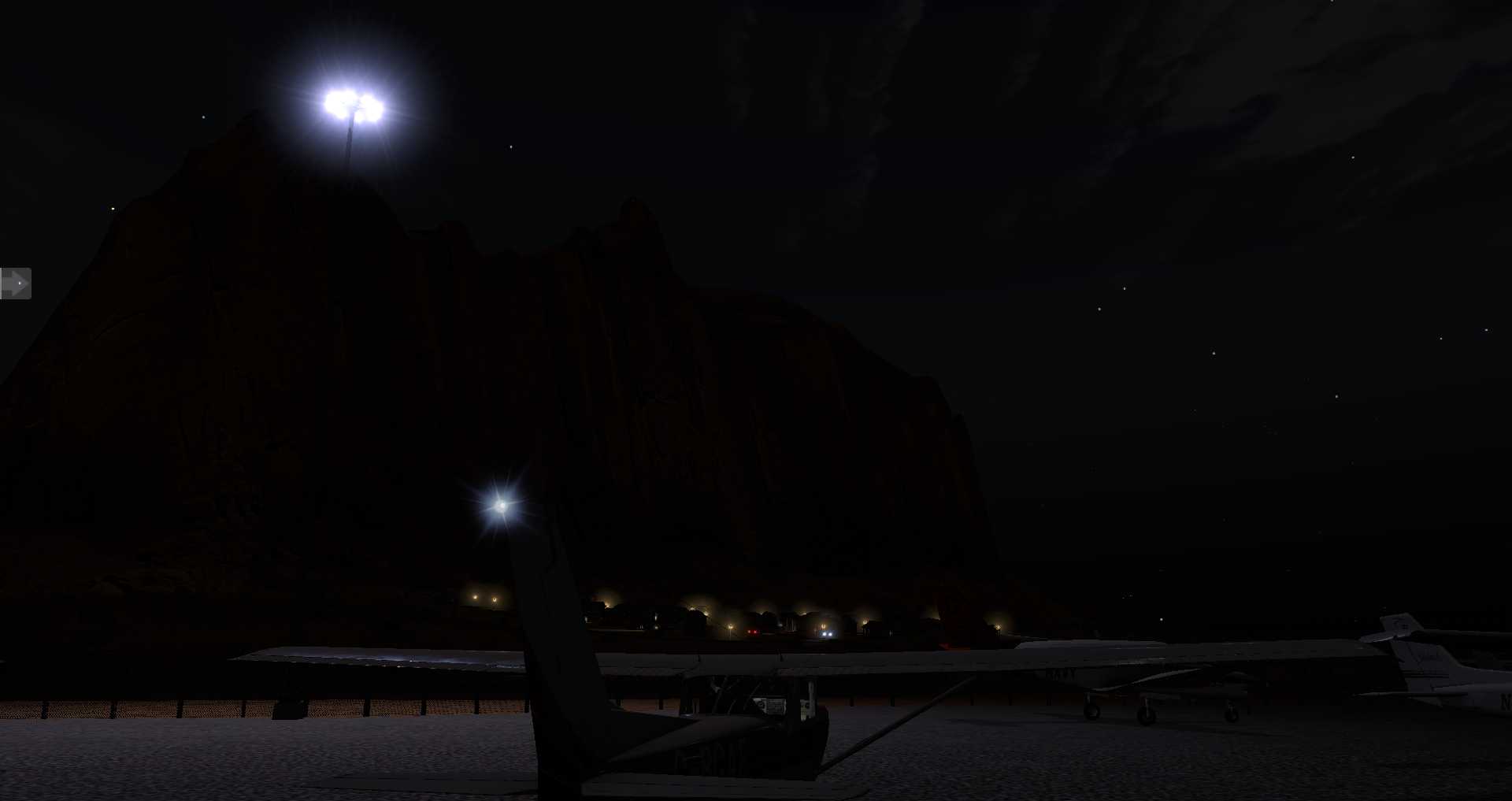 Das Problem ist, dass das Landclass System eigentlich nur einheitliche Texturen zulässt. Eine Landclass Textur ist ein Repräsentant und keine Fototextur. Erst das Zusammenfügen verschiedener Landclasses erzeugt ein Gesamtbild. In X-Plane 11 hat man daher so manches Hausobjekt gleich mit einem kompletten Vorgarten ausgestattet um das Bodenfeld zu überdecken und anzupassen. Aus der Bodenperspektive sieht man davon nichts, aber im nahen Überflug fällt es auf. Zumindest wurden die 3D Objekte auch mit einer aktiven Beleuchtung ausgestattet.