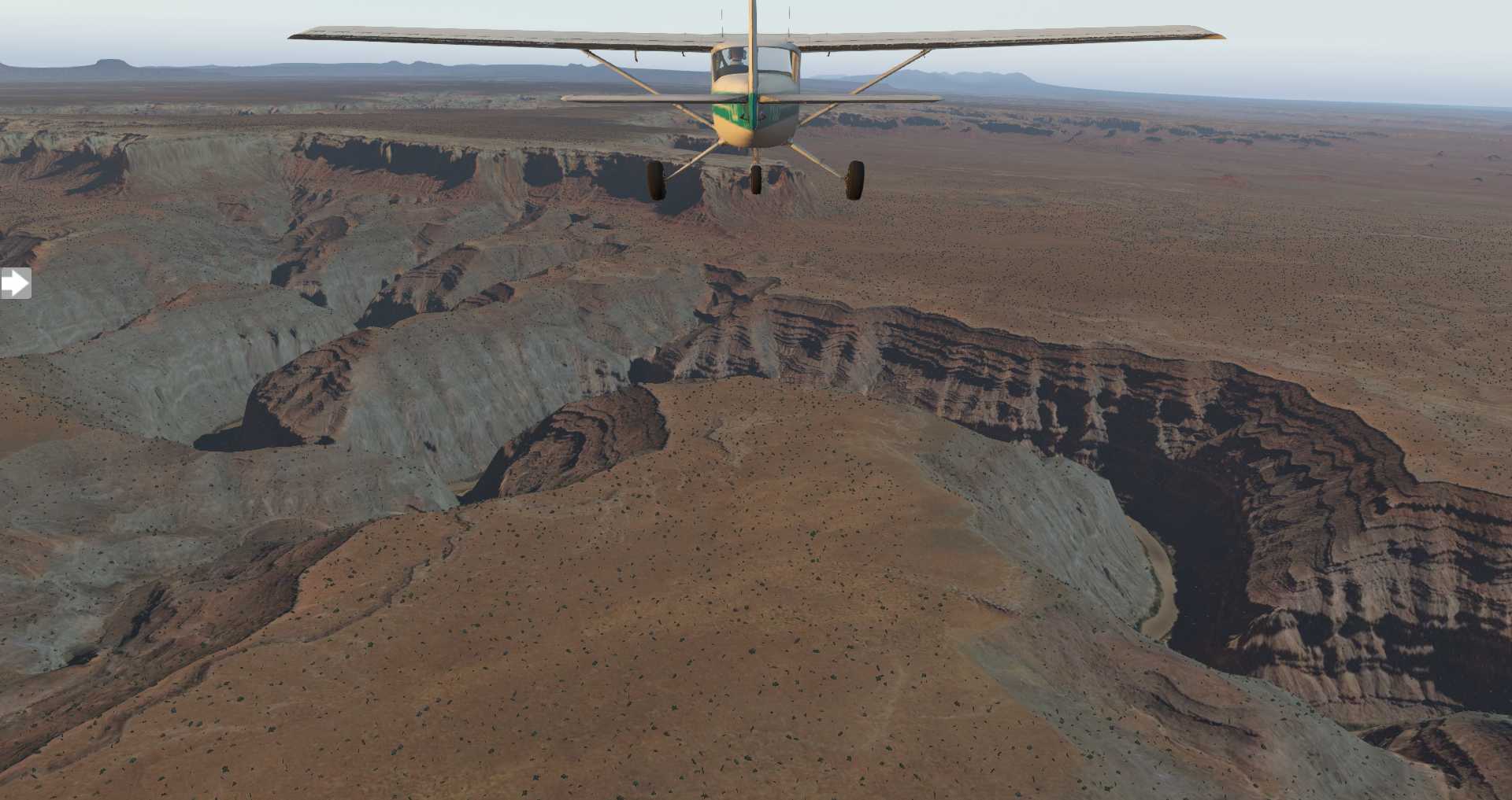 Arizona und Utah bedeuten bei mir im allgemeinen Orthphoto Szenerien. Und das sieht man der Szenerie auch an. Auf der einen Seite sehr gute Ansätze, aber da wir so dicht dran sind, beziehungsweise die Wände zu steil sind, müssen die Fototexturen auf eine zu große Fläche gespreizt werden, was die Auflösung deutlich verschlechtert.