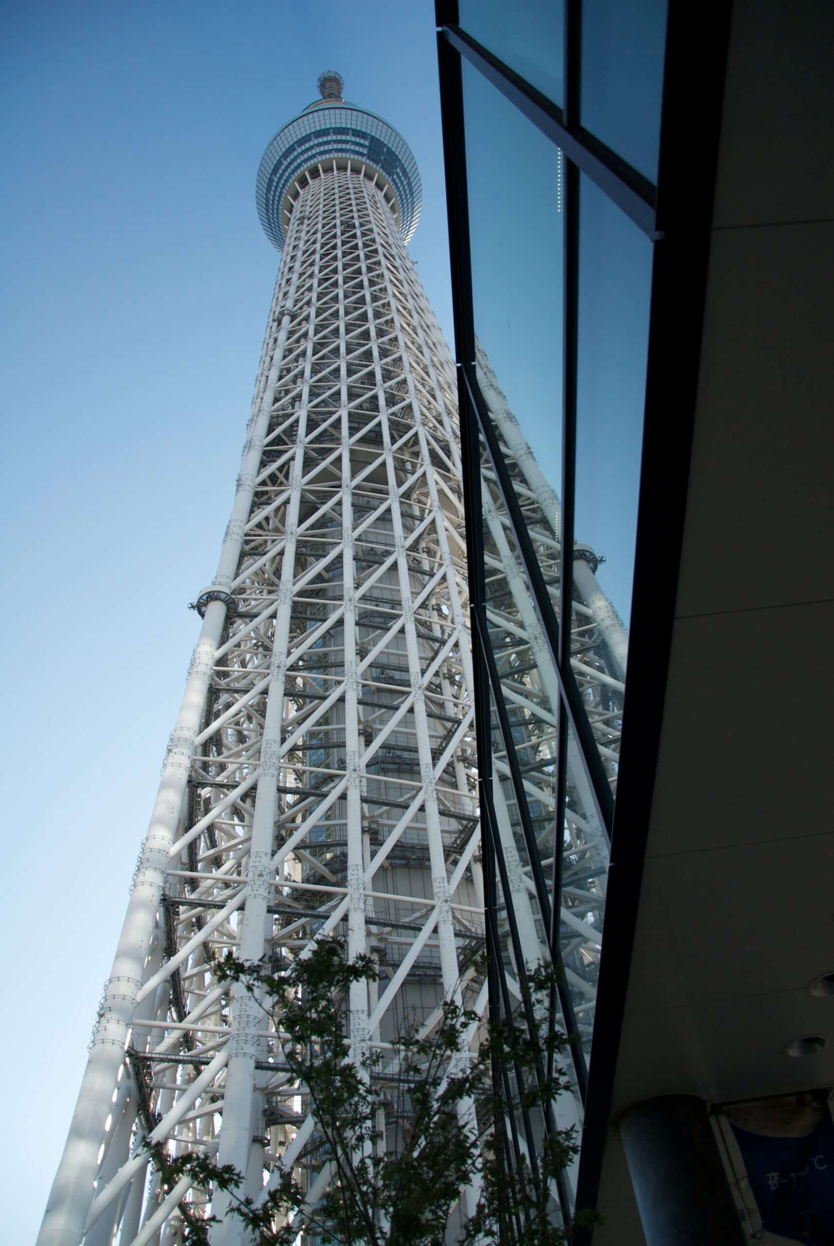 Tokyo Skytree, der Turm hat eine komplexe Struktur im unteren Teil und runde Plattformen. Das 3D-Objekt ist ein eckiger Rotationskörper mit schwachen Texturen.