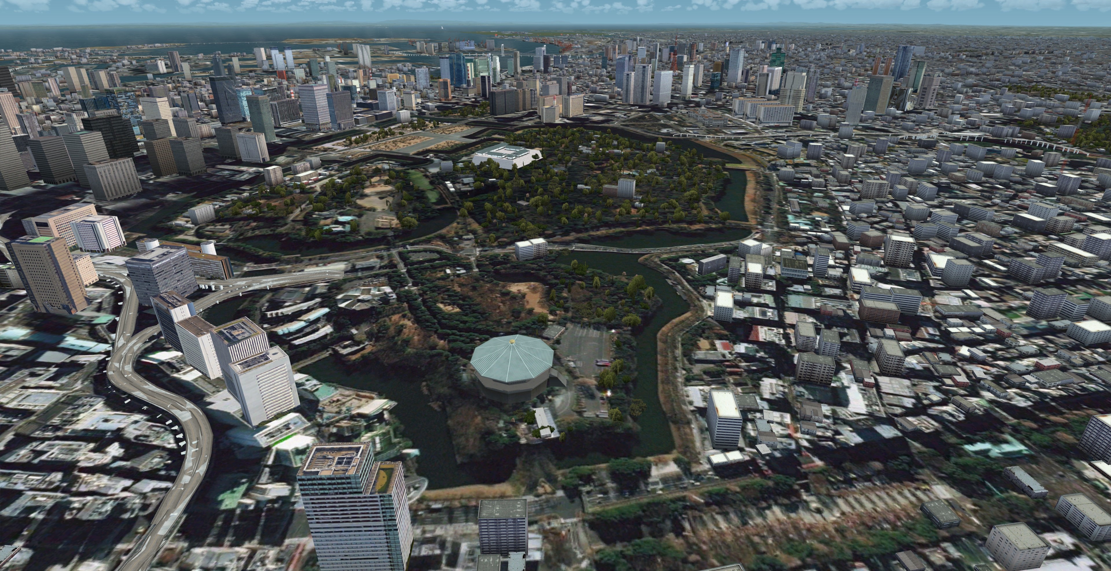 Allen Gebäuden ist gemein: Sie sind erkennbar, aber sie sind mit nicht besonders viel Liebe modelliert. Das können andere Experten, beispielsweise Drzewiecki oder auch LimeSim, deutlich besser. Hier nochmal Tokyo Dome mit Umgebung, Kaiserpalast, Geschäftsviertel und Tempelkomplex in Asakusa.