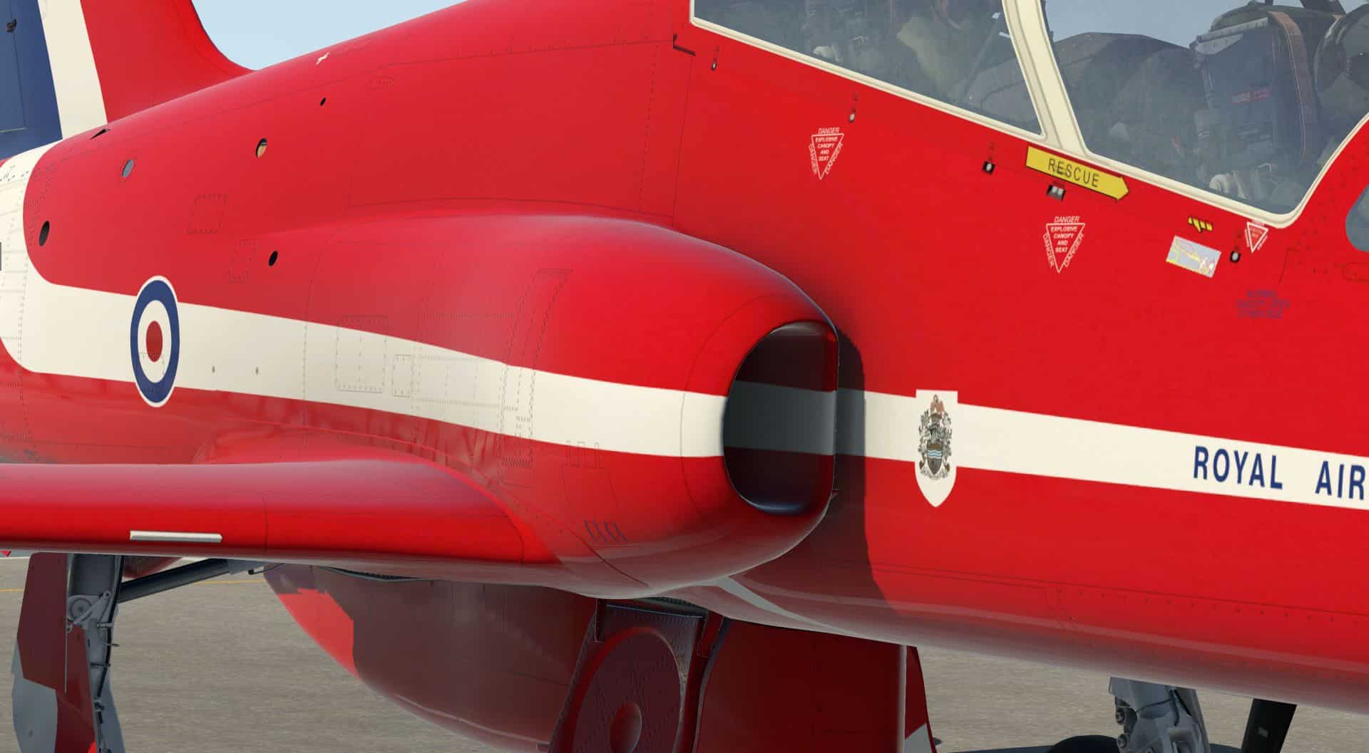 Nun, hier kommt der übliche Disclaimer, dass ich kein realer Pilot, noch sonst beruflich vertraut bin mit diesem Flugzeugtyp, den ich hier auch noch etwas mehr so meine als bei meinen In-Depth-Reviews zu Airlinern. Einfach aus dem Grund, dass ich mit der Militärfliegerei nur vom Hörensagen her vertraut bin und dementsprechend auch die Flugmuster nicht im Detail kenne. So auch hier mit der Hawk T1/A. Insofern kann ich mich nur auf meinen Verstand und natürlich für mich zugängliche Informationen (Handbücher und ggf. Foren) verlassen.