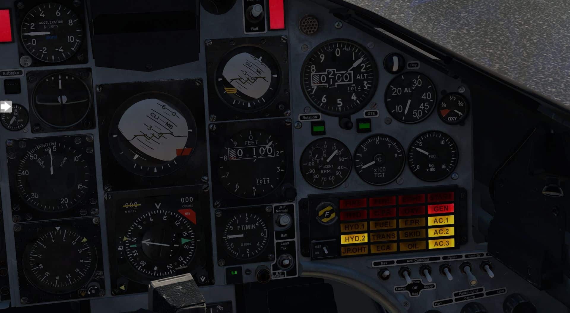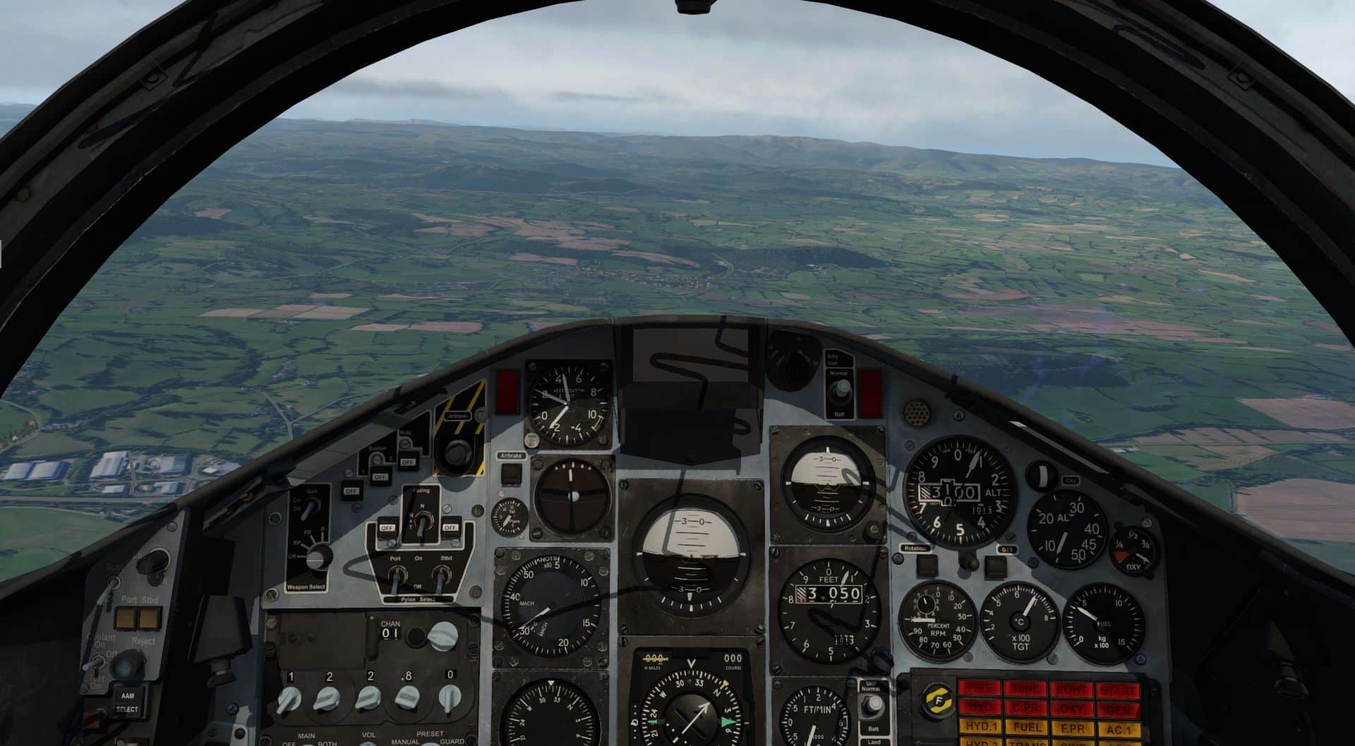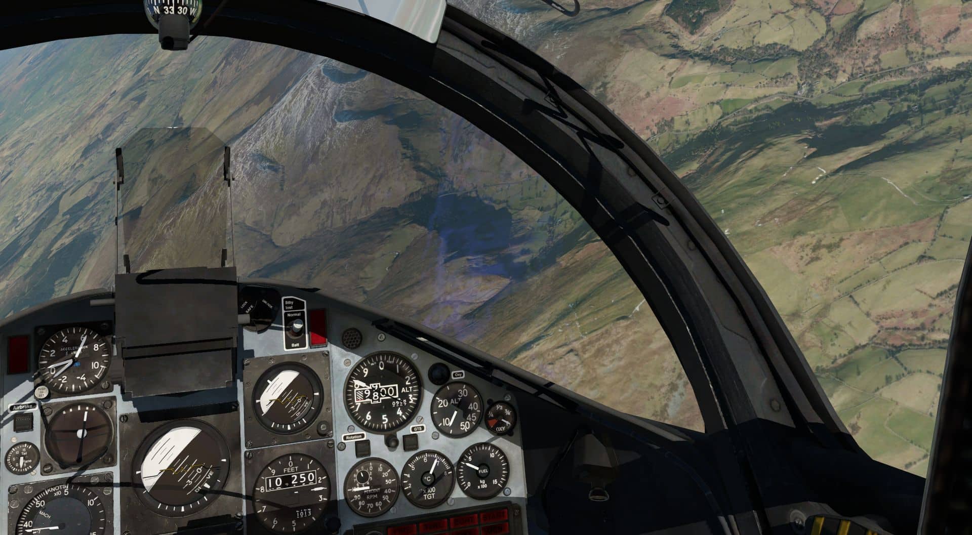 Der Sound… wer nun vielleicht ein dröhnendes Donnern eines Nachbrenners erwartet, der wird sicherlich enttäuscht sein. Das Ganze klingt ein wenig zahmer und trotzdem vernünftig. Einen Nachbrenner hat die Hawk T1/A nun mal nicht und der beinahe leise, helle Klang des Rolls-Royce-Triebwerks passt zum zierlichen Auftreten des Jets im Allgemeinen. Im Cockpit kommt der Triebwerkssound nur gedämpft an, weswegen die Triebwerksanzeigen im Blickfeld so nützlich sind. Im Cockpit bekommt man überhaupt nichts von den Landeklappen oder dem Fahrwerk mit. Wirkt aber nachvollziehbar.
