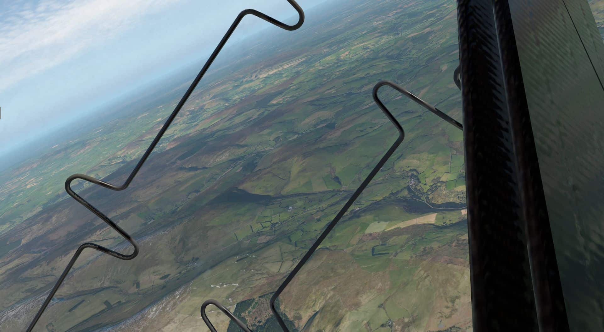 Allgemein sind die PBR-Texturen sehr angenehm anzusehen und die zwölf mitgelieferten Lackierungen sind auch mit viel Liebe zum Detail umgesetzt. In Sachen Modellierung leistet man sich auch keine Blöße. Jedes kleine Leitblech, das ich mir nur vorstellen kann, finde ich auch in der einen oder anderen Form wieder. Die beweglichen Teile wirken realitätsgetreu animiert und beim Blick zur Seite aus der Kanzel macht der Anblick der Steuerflächen vor der sehr schnell vorbeiziehenden Landschaft eine Menge Spaß.