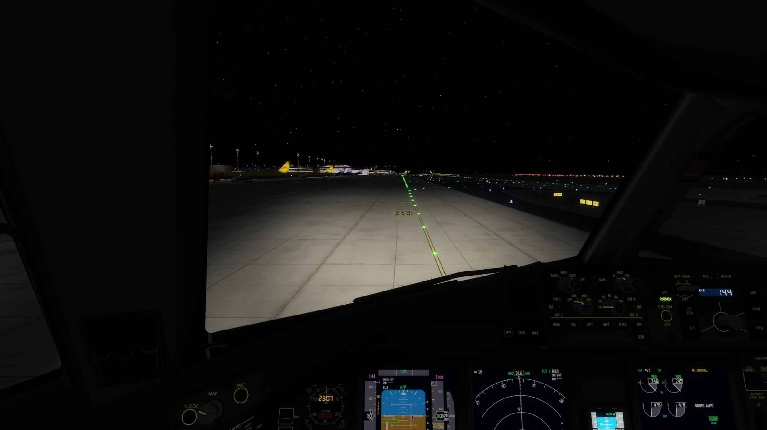 Für einen ersten Eindruck der Nachtdarstellung habe ich mich in’s Cockpit einer 777 geschwungen und den Anflug ab Nörvenich aufgezeichnet.