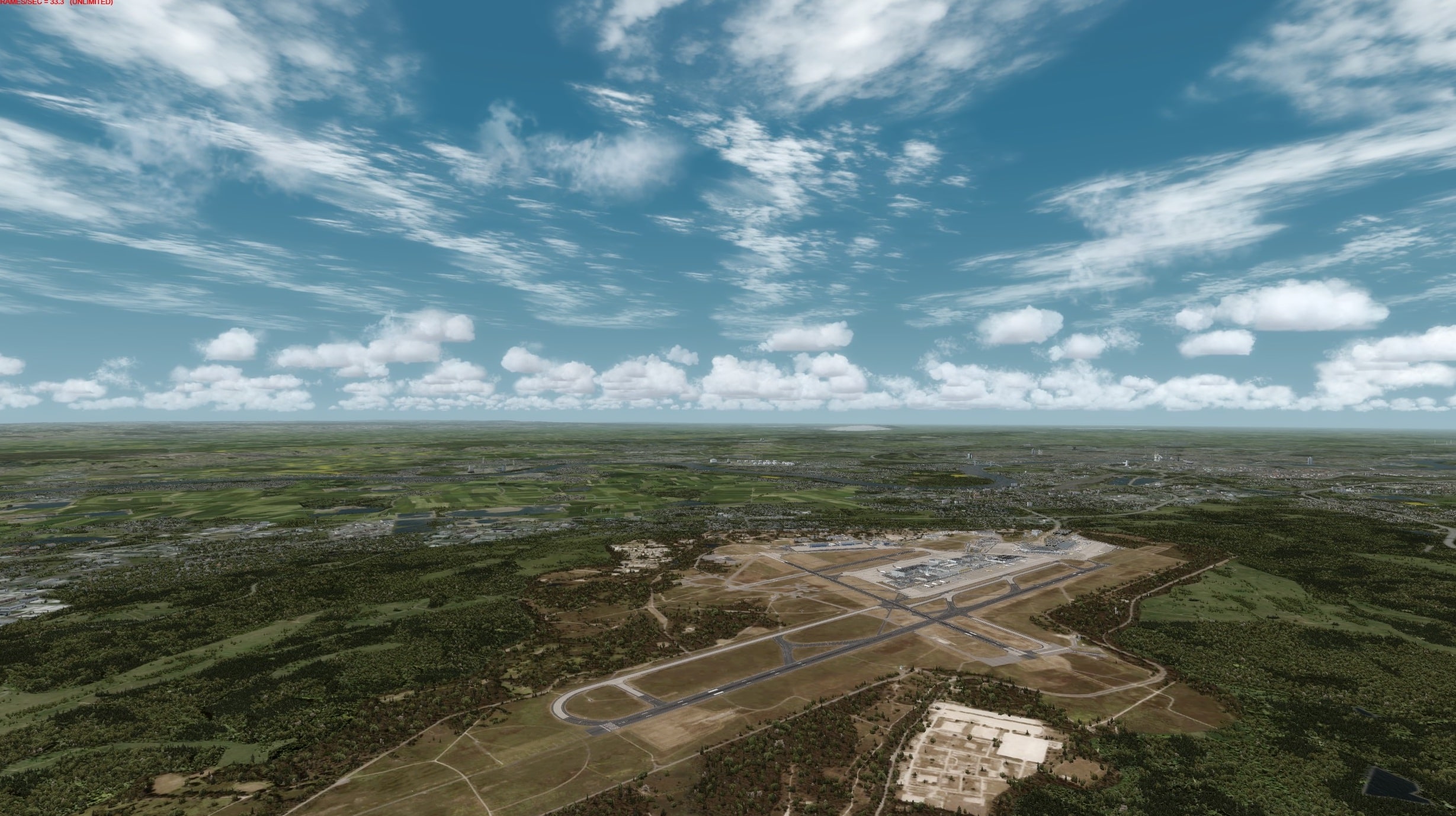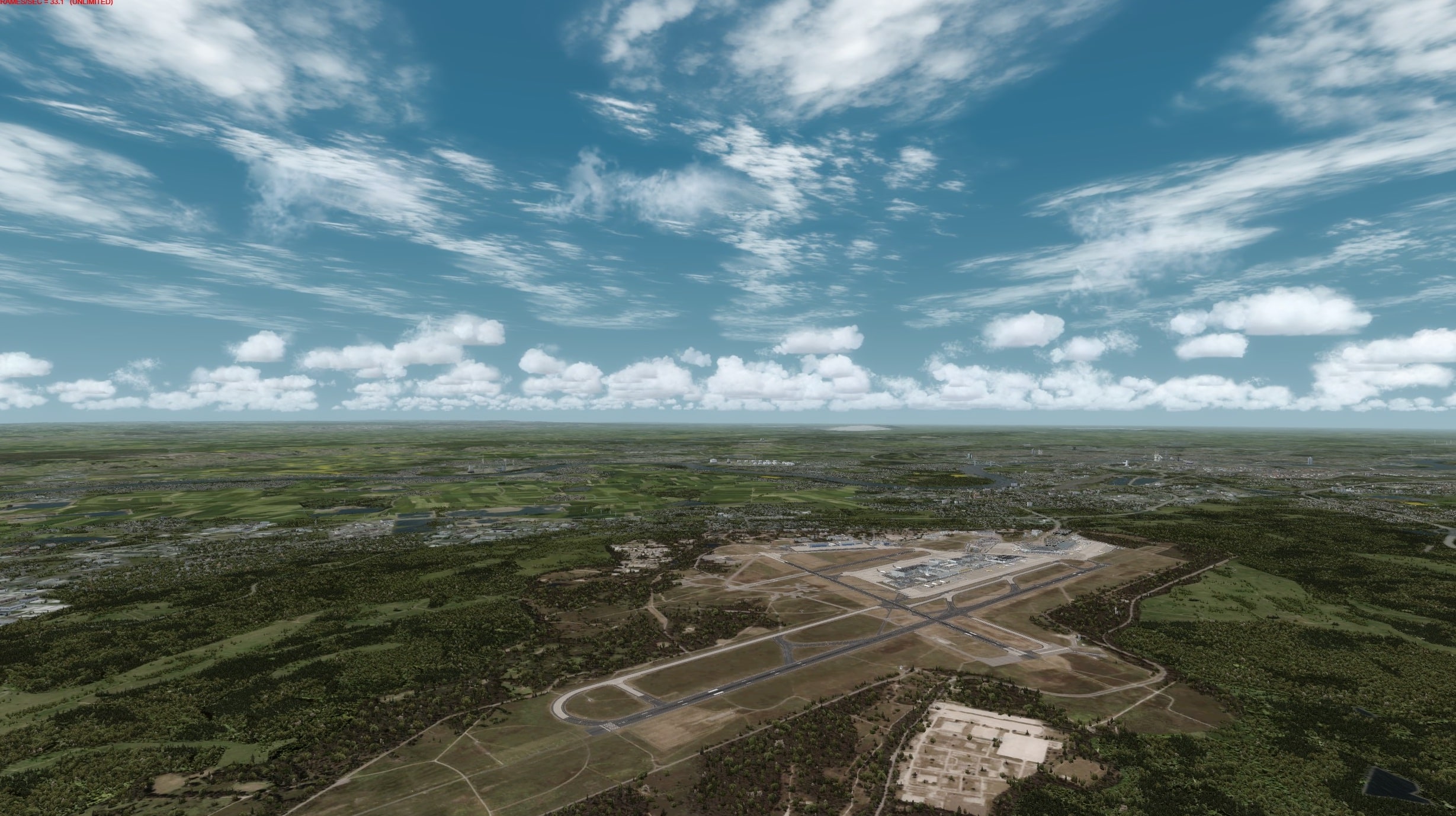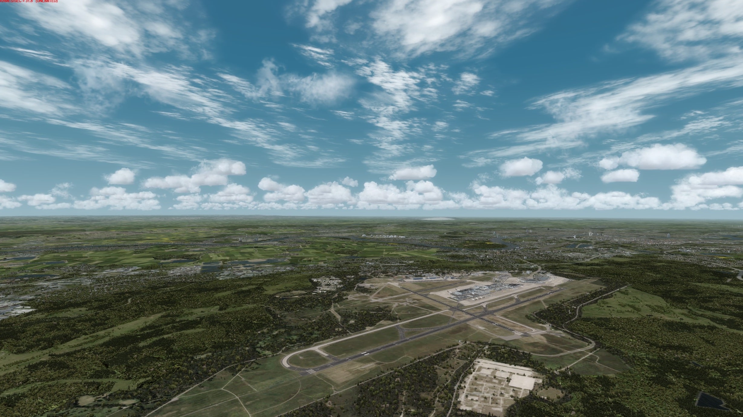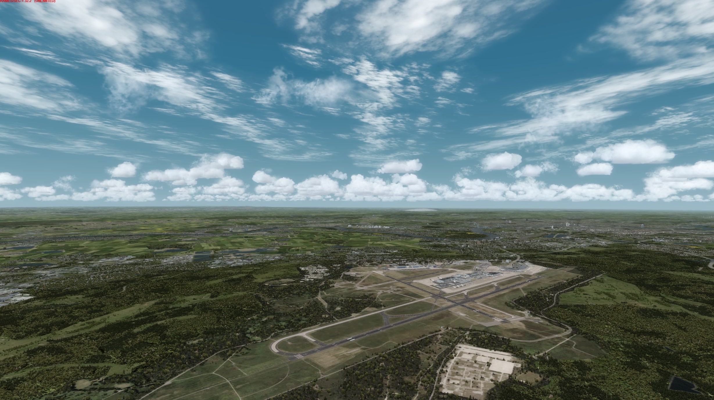 Etwas abgemildert wird das Problem dadurch, dass tatsächlich ein Großteil des Anflugs um Köln-Bonn über der Fototapete stattfindet, so dass der Übergang zwischen Umgebung und Fototextur in großer Entfernung vom Flughafen stattfindet. Ich hatte die Umgebung bei meinen ersten Flügen vor allem deshalb ausgeblendet, weil die Performance mit Oculus Rift und hohen Autogeneinstellungen etwas gelitten hatte.