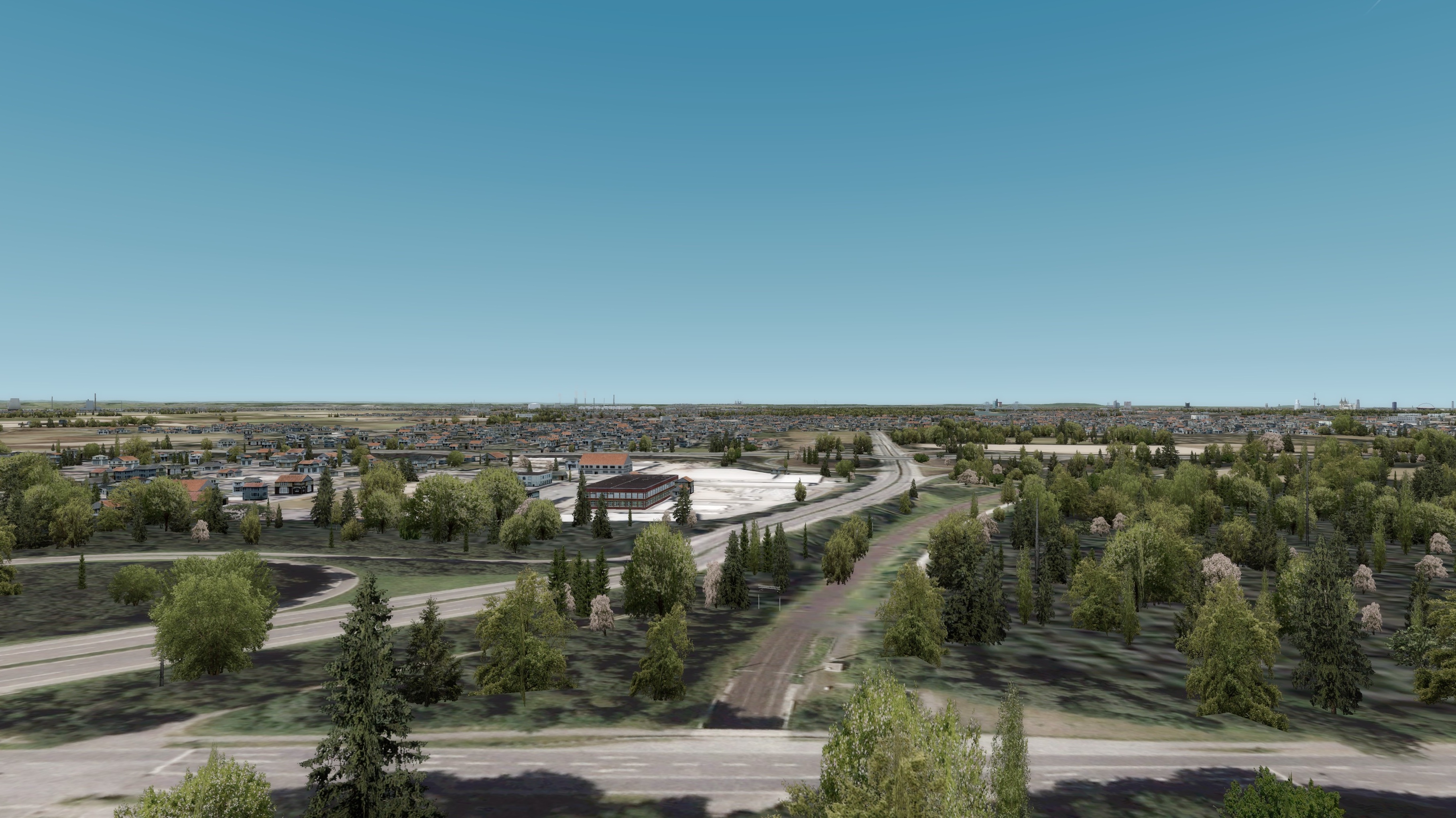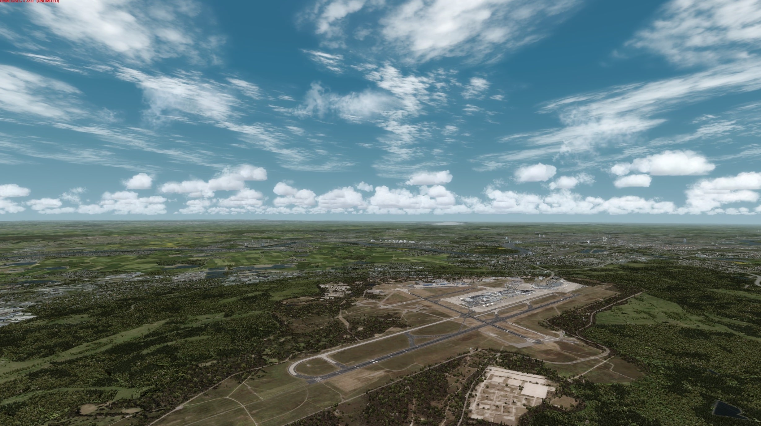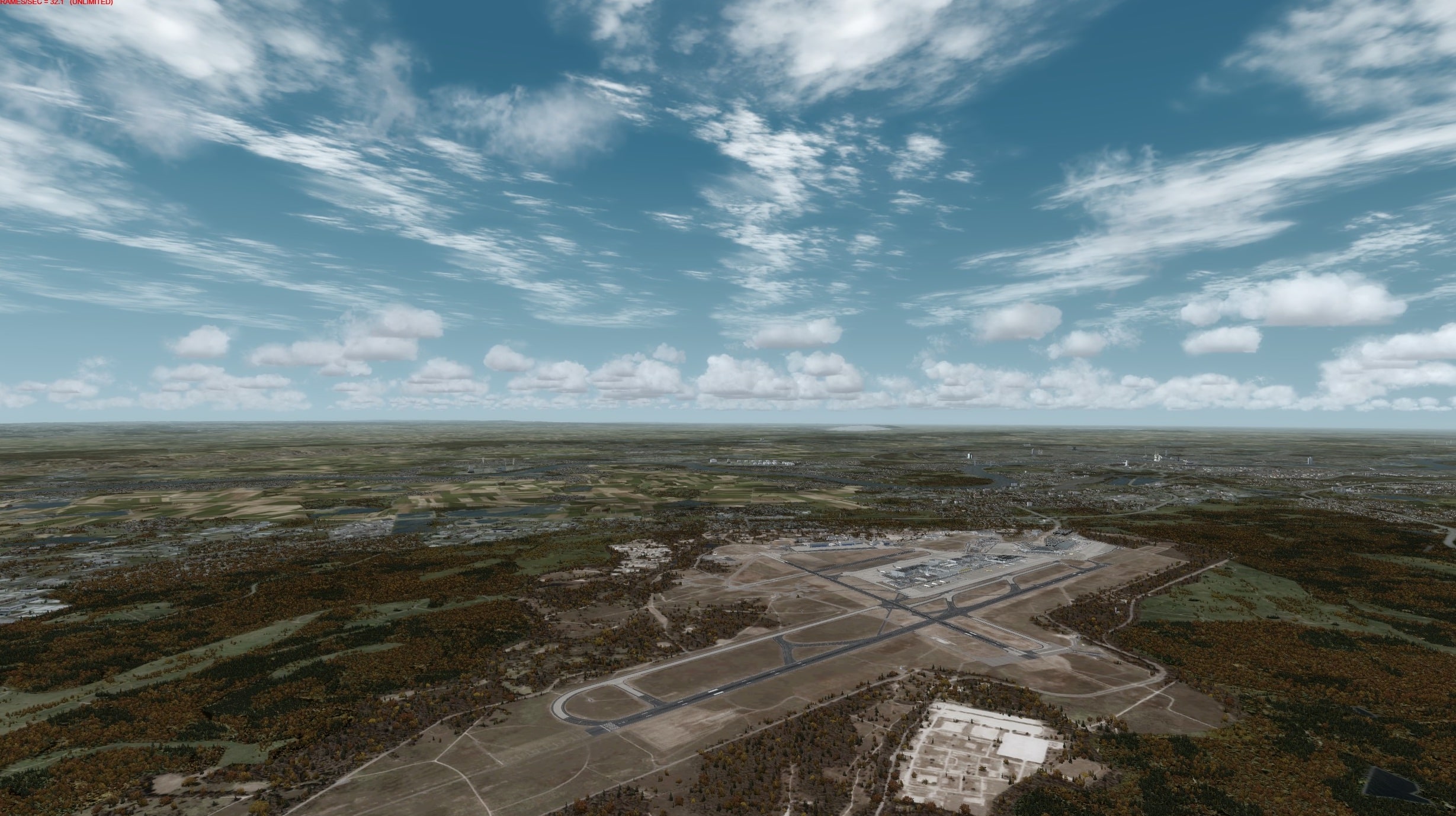 Etwas abgemildert wird das Problem dadurch, dass tatsächlich ein Großteil des Anflugs um Köln-Bonn über der Fototapete stattfindet, so dass der Übergang zwischen Umgebung und Fototextur in großer Entfernung vom Flughafen stattfindet. Ich hatte die Umgebung bei meinen ersten Flügen vor allem deshalb ausgeblendet, weil die Performance mit Oculus Rift und hohen Autogeneinstellungen etwas gelitten hatte.