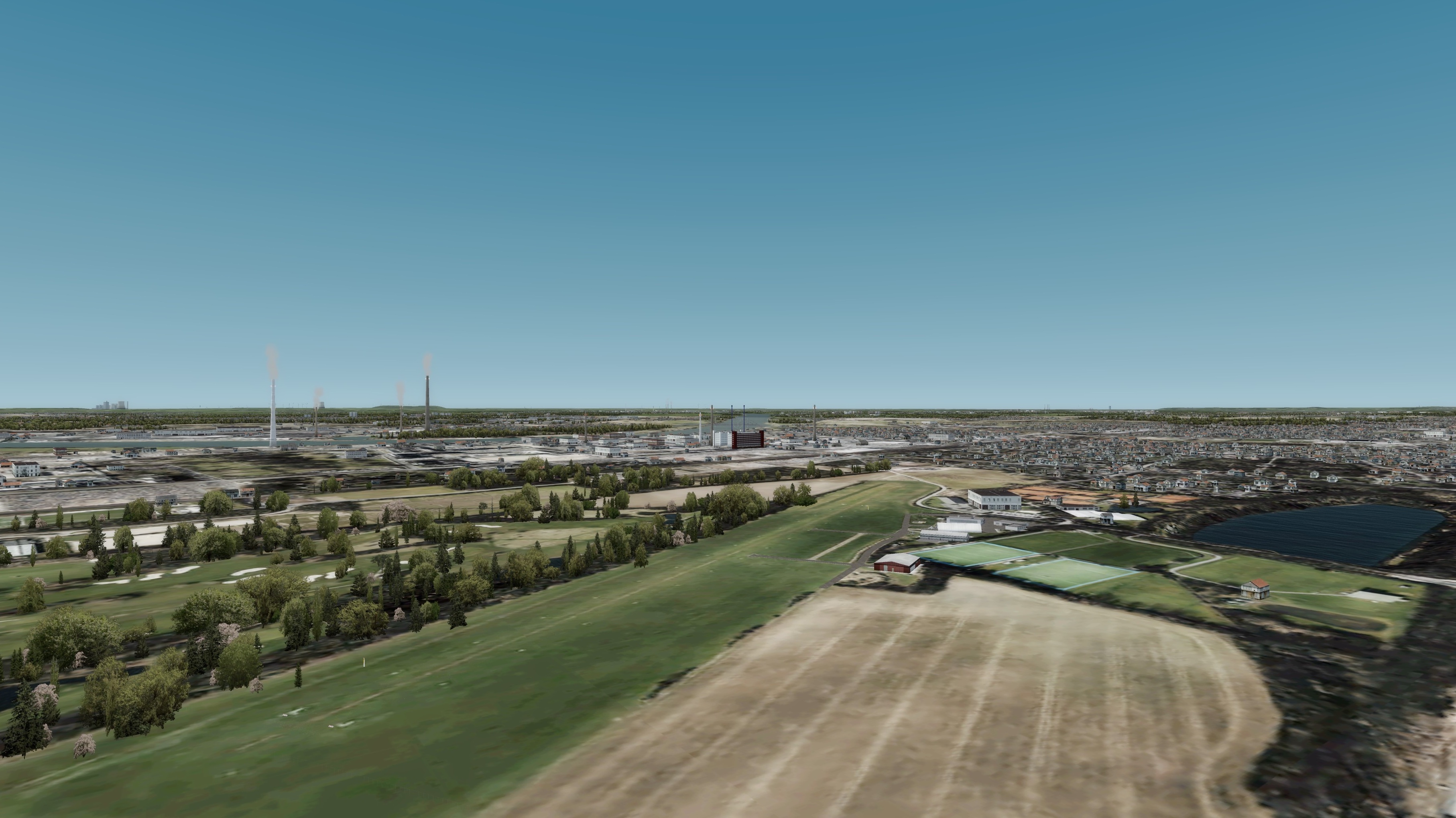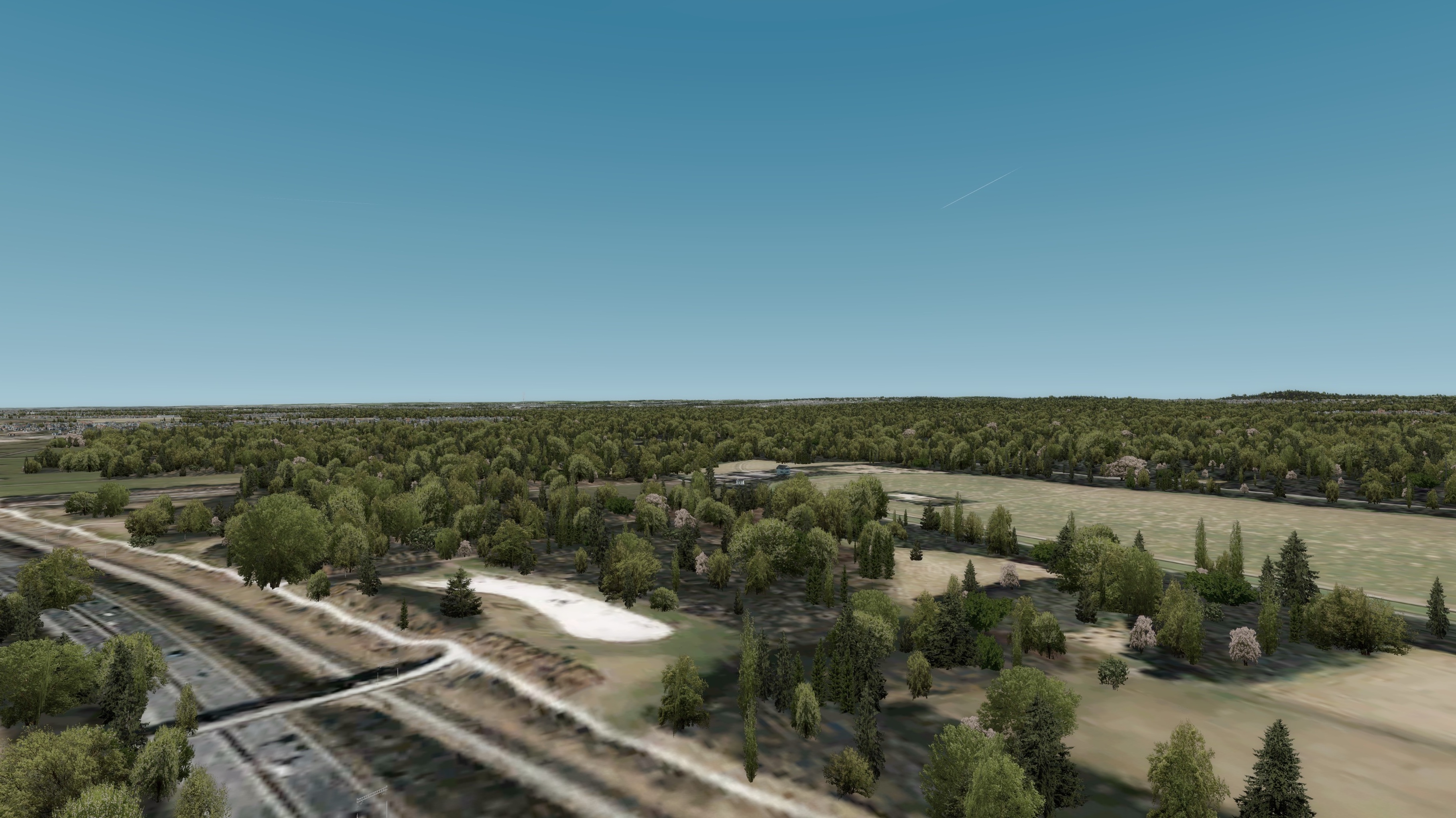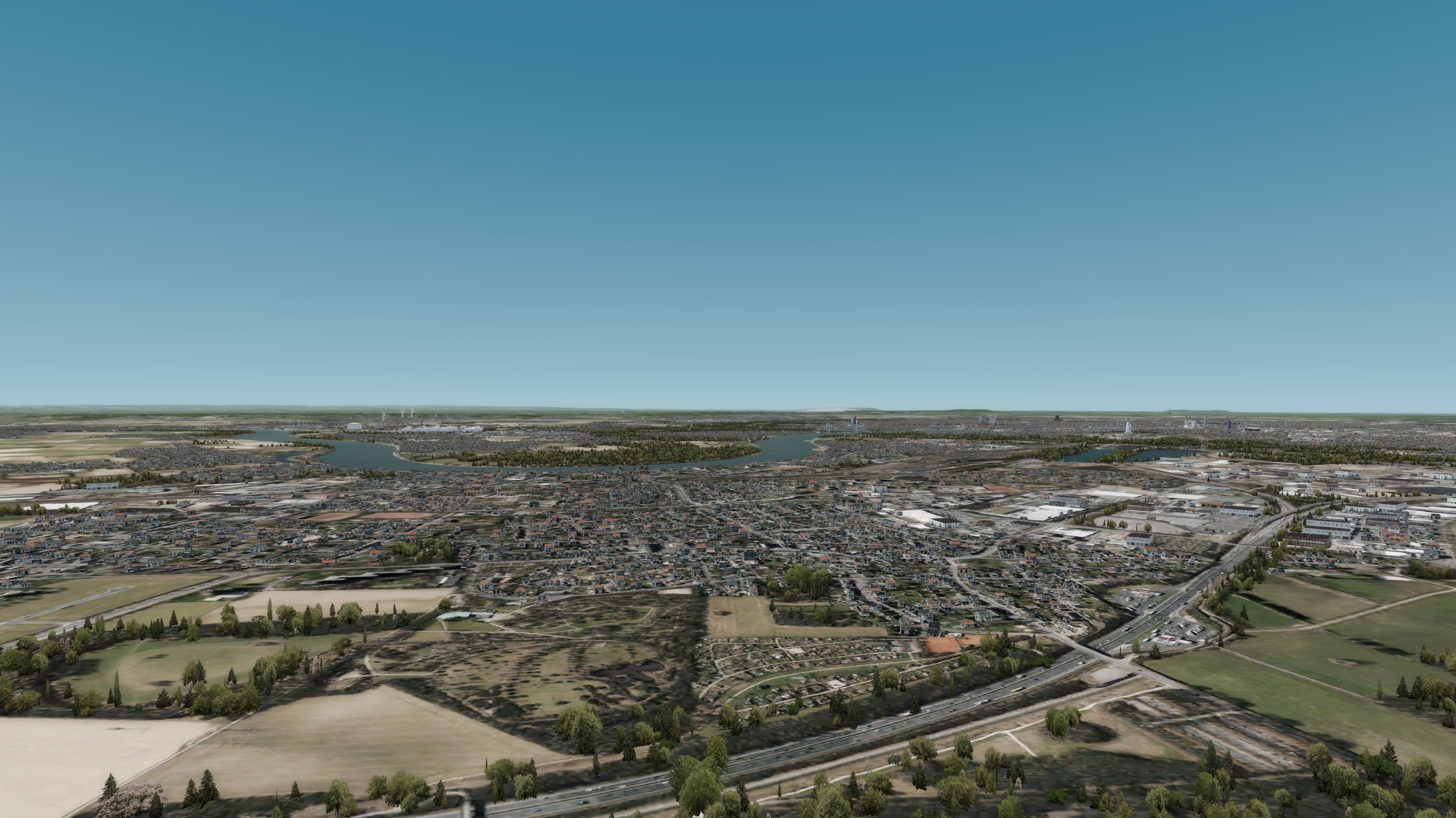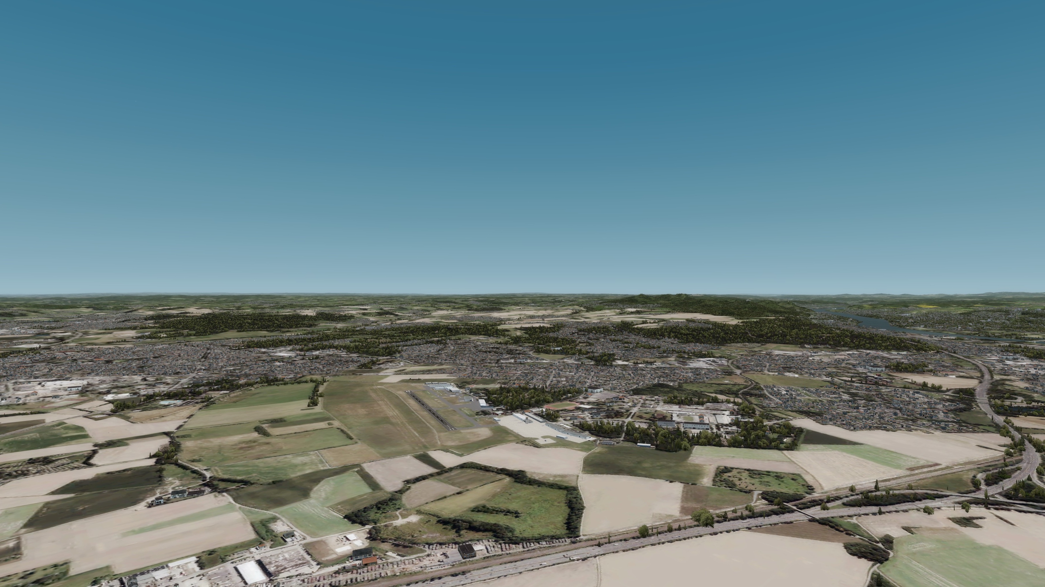 Etwas abgemildert wird das Problem dadurch, dass tatsächlich ein Großteil des Anflugs um Köln-Bonn über der Fototapete stattfindet, so dass der Übergang zwischen Umgebung und Fototextur in großer Entfernung vom Flughafen stattfindet. Ich hatte die Umgebung bei meinen ersten Flügen vor allem deshalb ausgeblendet, weil die Performance mit Oculus Rift und hohen Autogeneinstellungen etwas gelitten hatte.