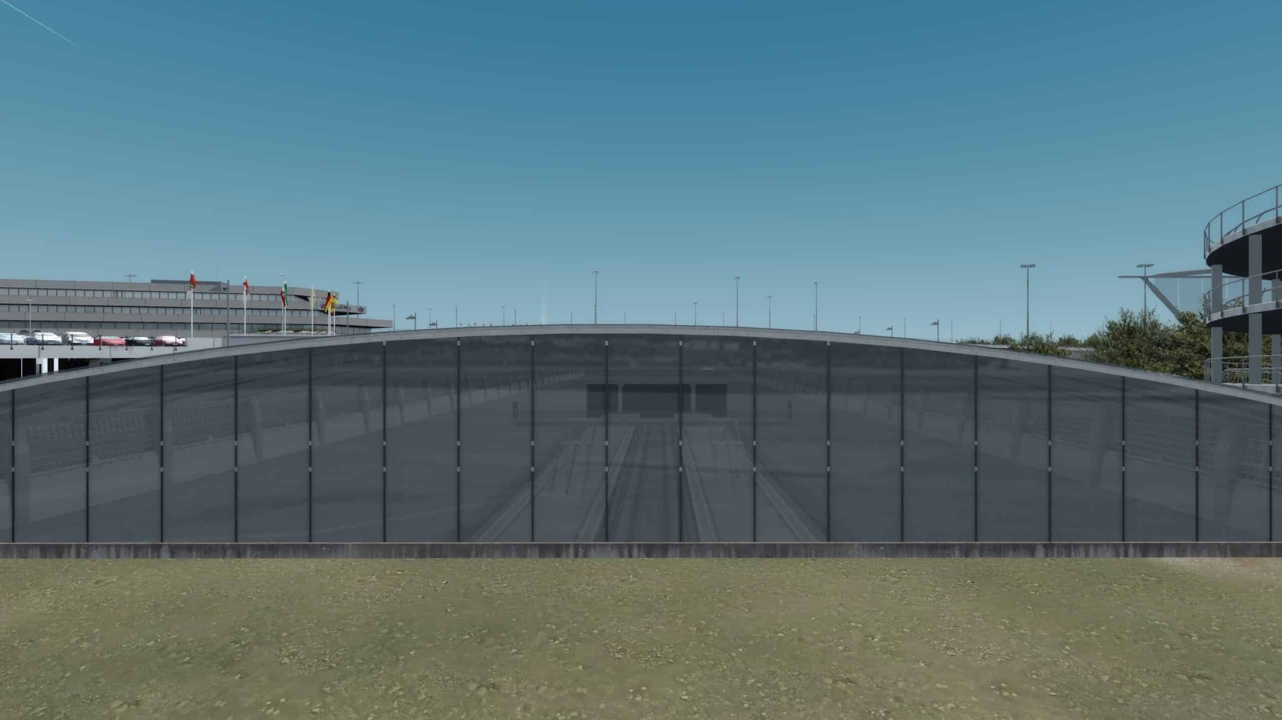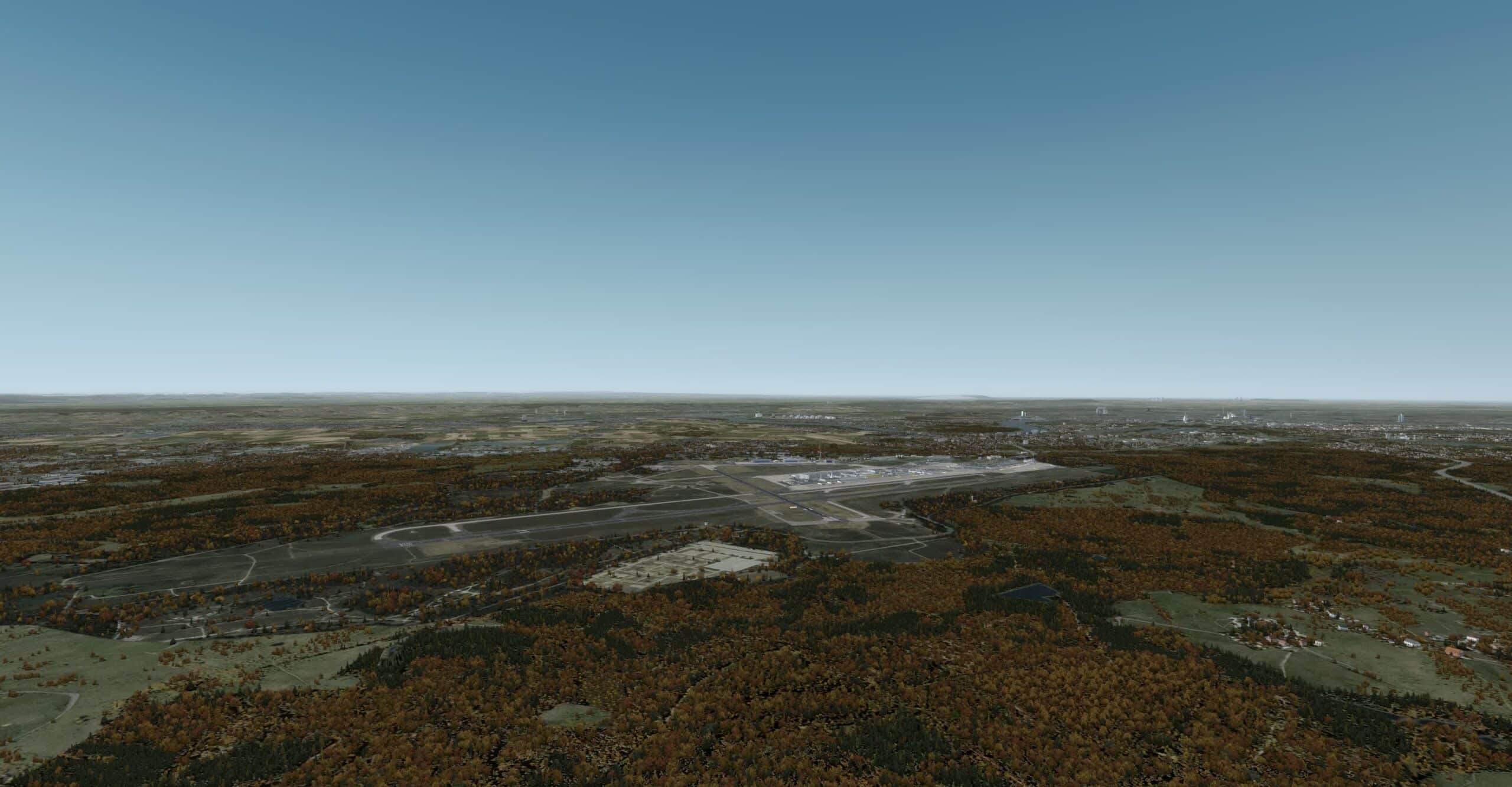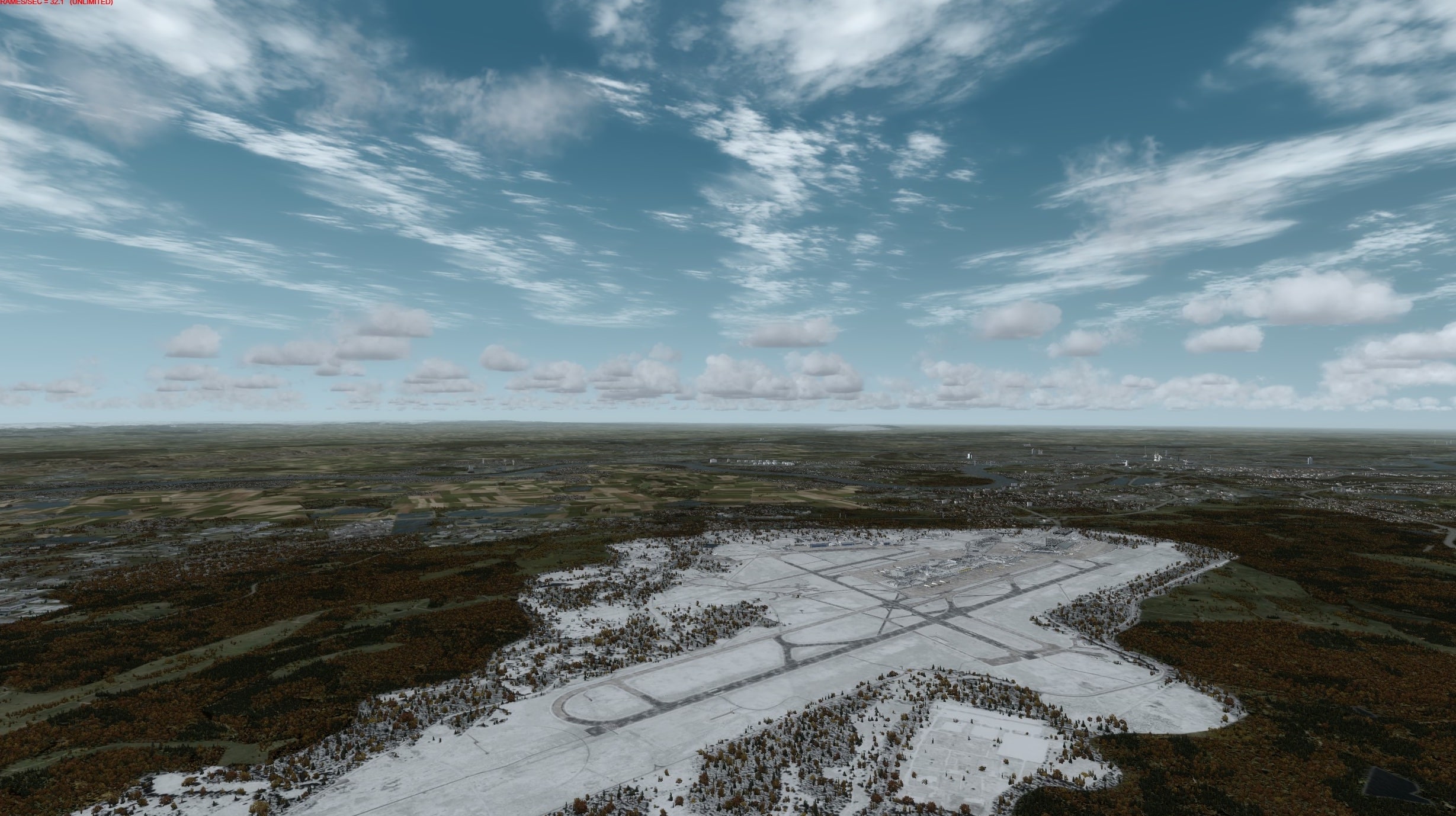Fangen wir mit dem Unangenehmen an, bevor wir die unfassbar tollen Details beleuchten. Bei Verwendung von Orbx FTX Germany South passt die Farbgebung perfekt nur im Januar und Februar (beides verschneit). Juni, Juli, August passen auch noch sehr gut, da die Flughafenwiesen im satten Grün erstrahlen. Im Frühling fängt das Farbdebakel dann an. Da sind die Wiesen am Flughafen deutlich zu bräunlich. Auch im September ist die Umgebung des Airports noch ziemlich grün, während die Flora des Flughafen schon anfängt braun zu werden. Die Bäume werden bei Orbx erst im Oktober braun, daher passt es hier wieder halbwegs. Gleiches gilt für den November. Die virtuellen Fluggäste werden im Dezember bei der Anfahrt zum Flughafen vom Schnee verschont, denn diesen wiederum gibt es in der Ecke hier bei Orbx erst im Januar. Das böse Erwachen lauert an der Flughafengrenze. Denn hier liegt bereits Schnee im Dezember en masse.