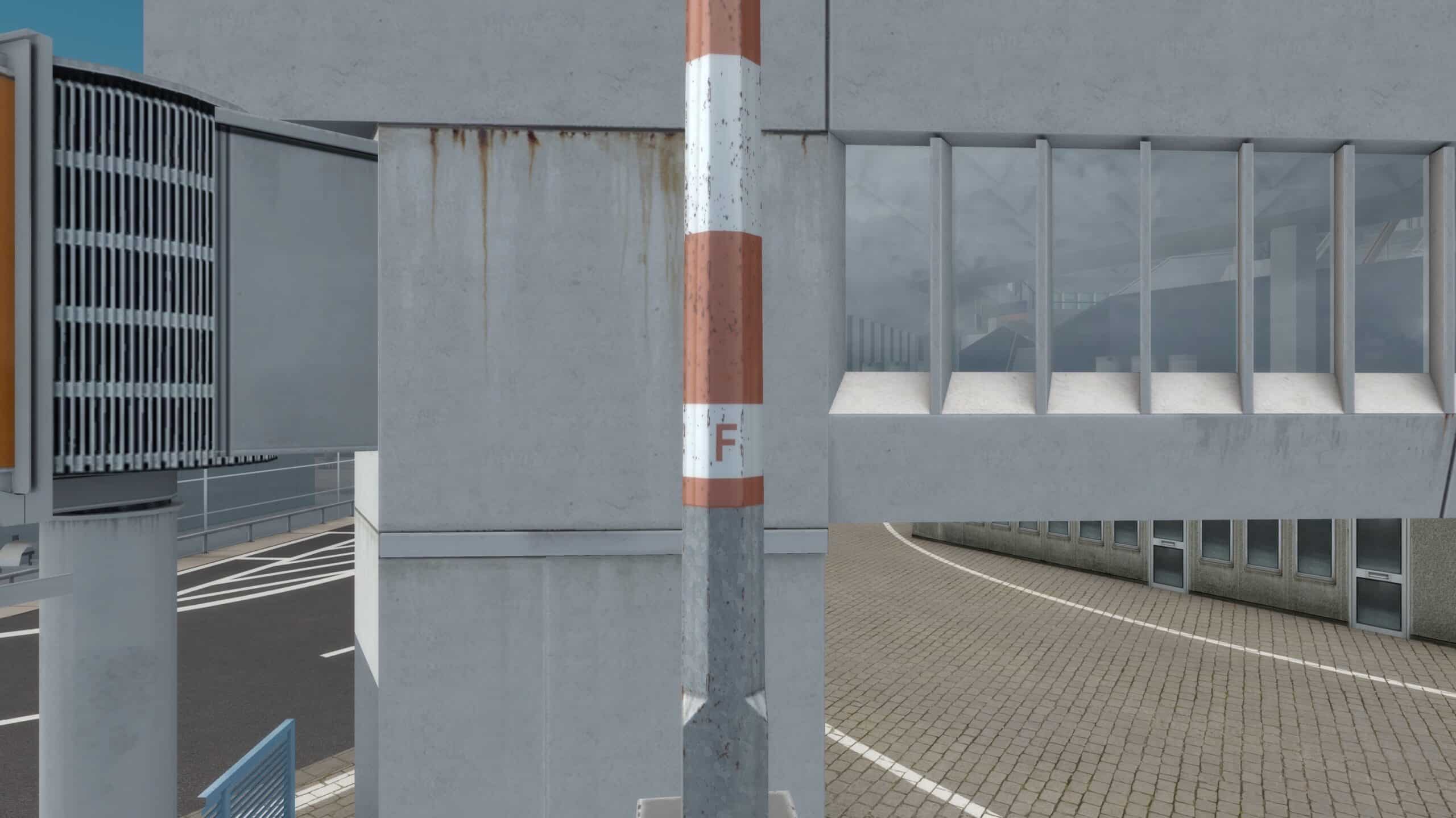 Die Jetways sehen sehr gut aus, aber als Beispiel der Qualität der Modellierung würde ich gerne diesen belanglosen Mast des Flutlichts heranziehen, dessen leichte Lackschäden doch echt nett anzusehen sind.