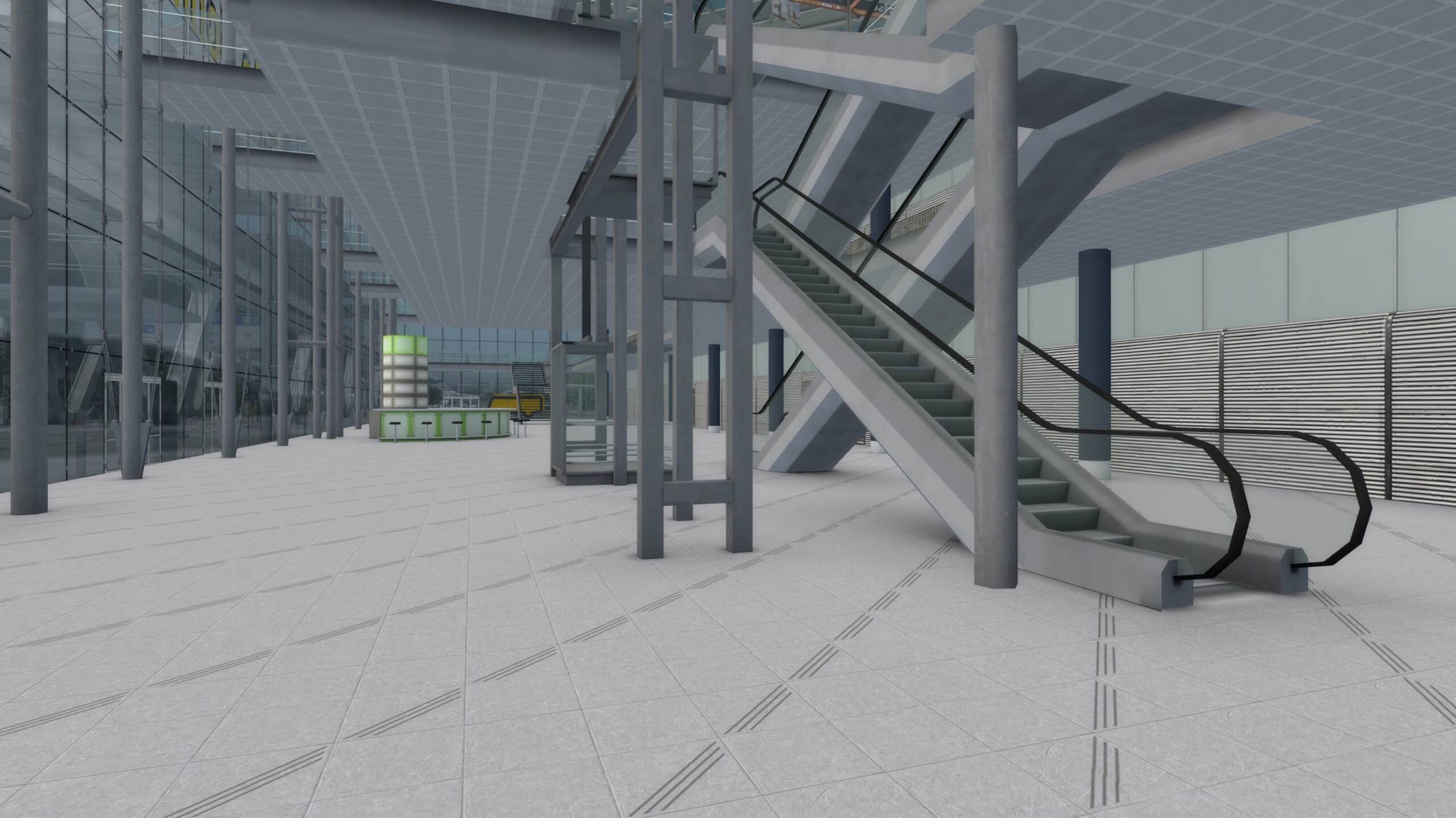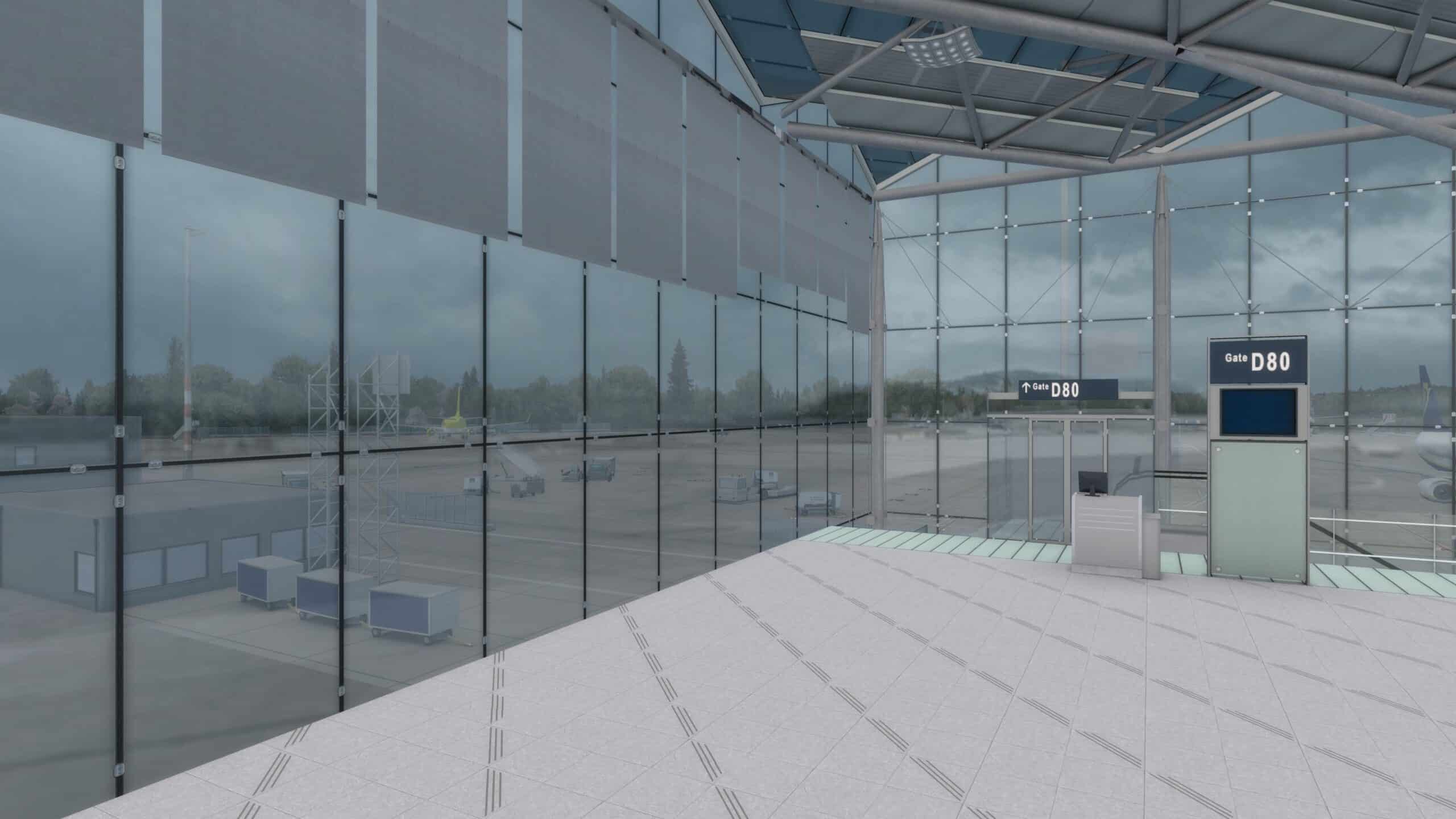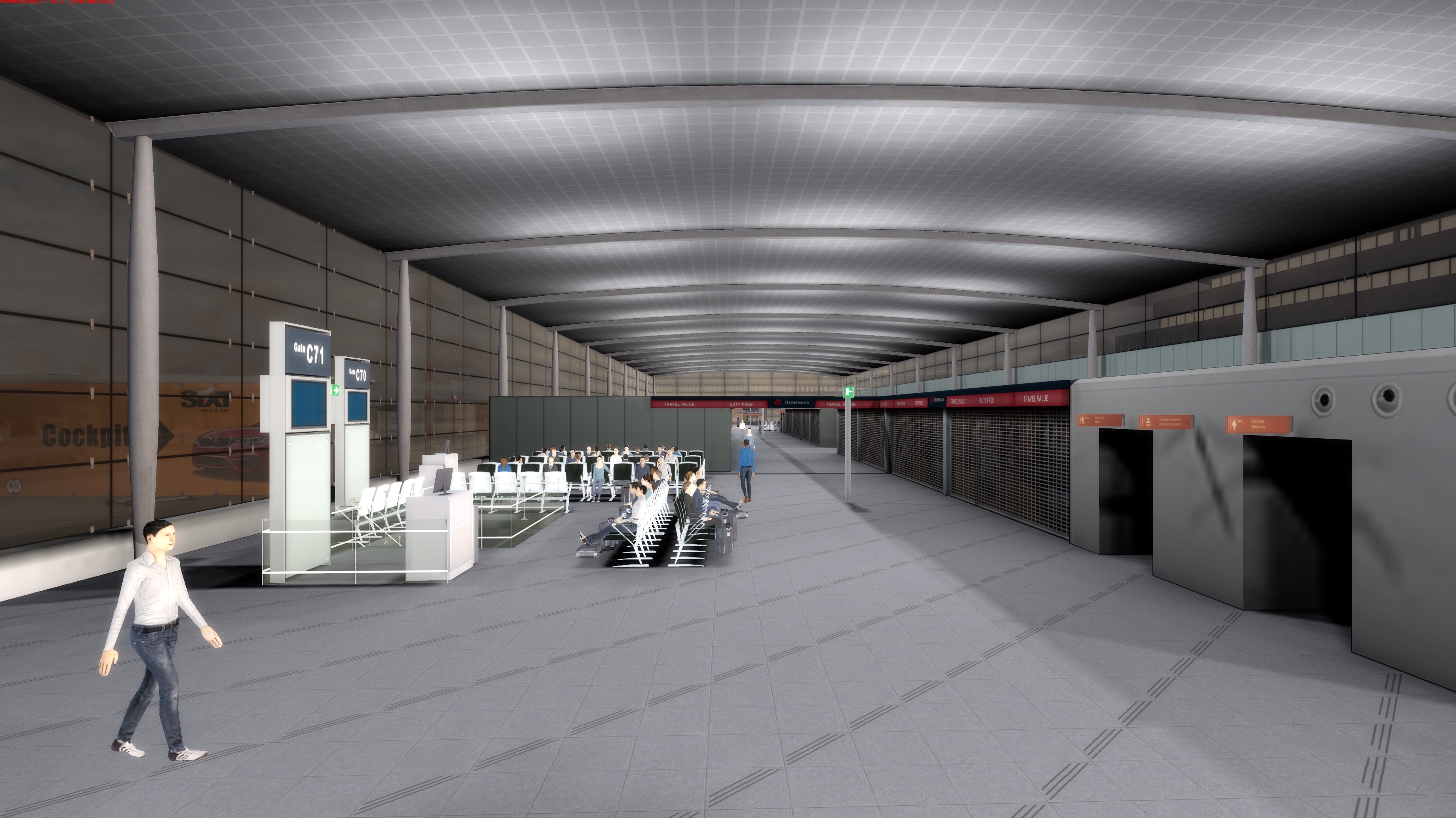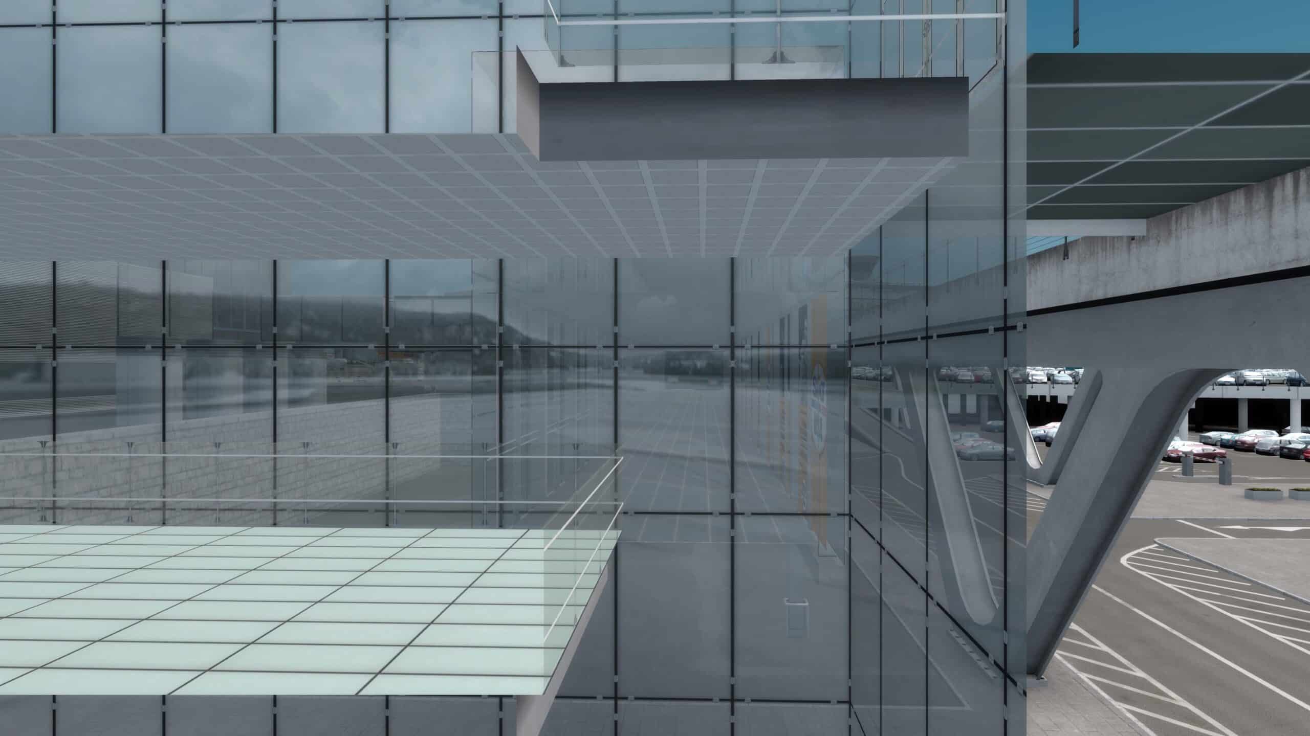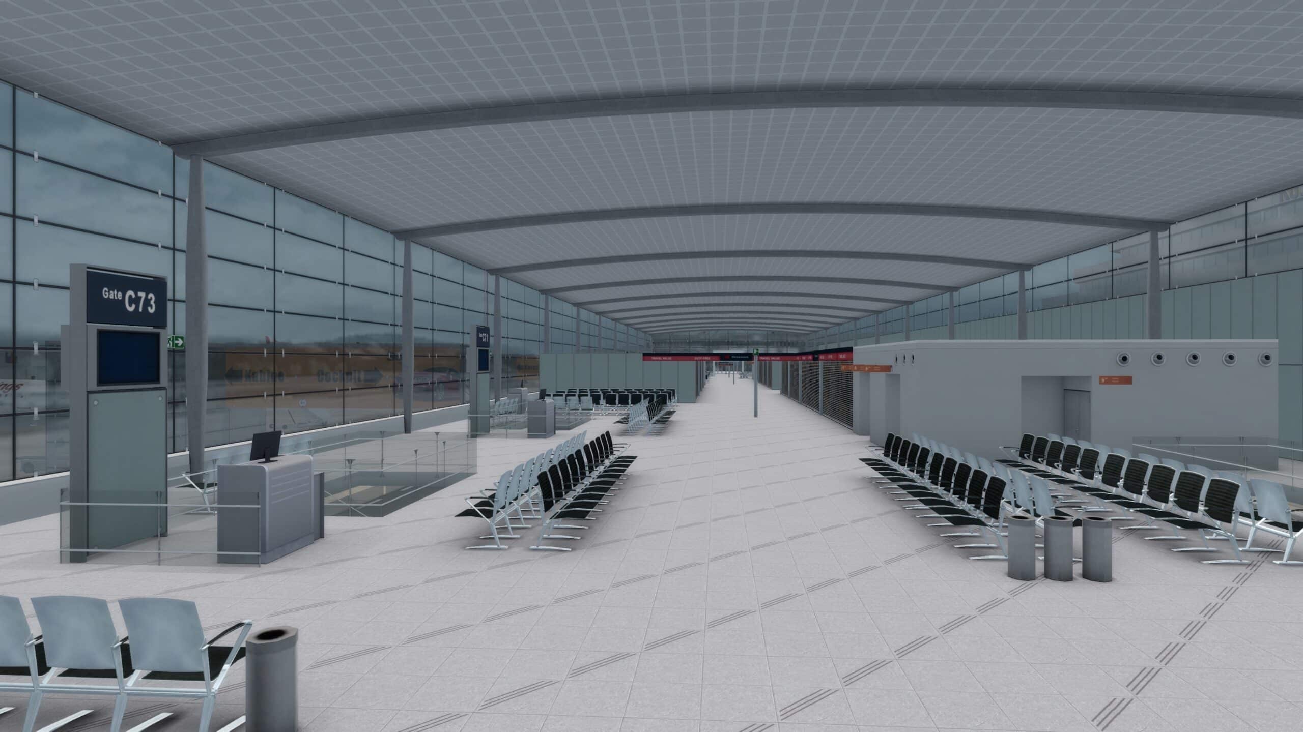 Terminal 2 ist – zumindest im Fluggastbereich – vollständig verglast, da ist die Modellierung des Innenraums deutlich wichtiger für den Gesamteindruck als bei Terminal 1.