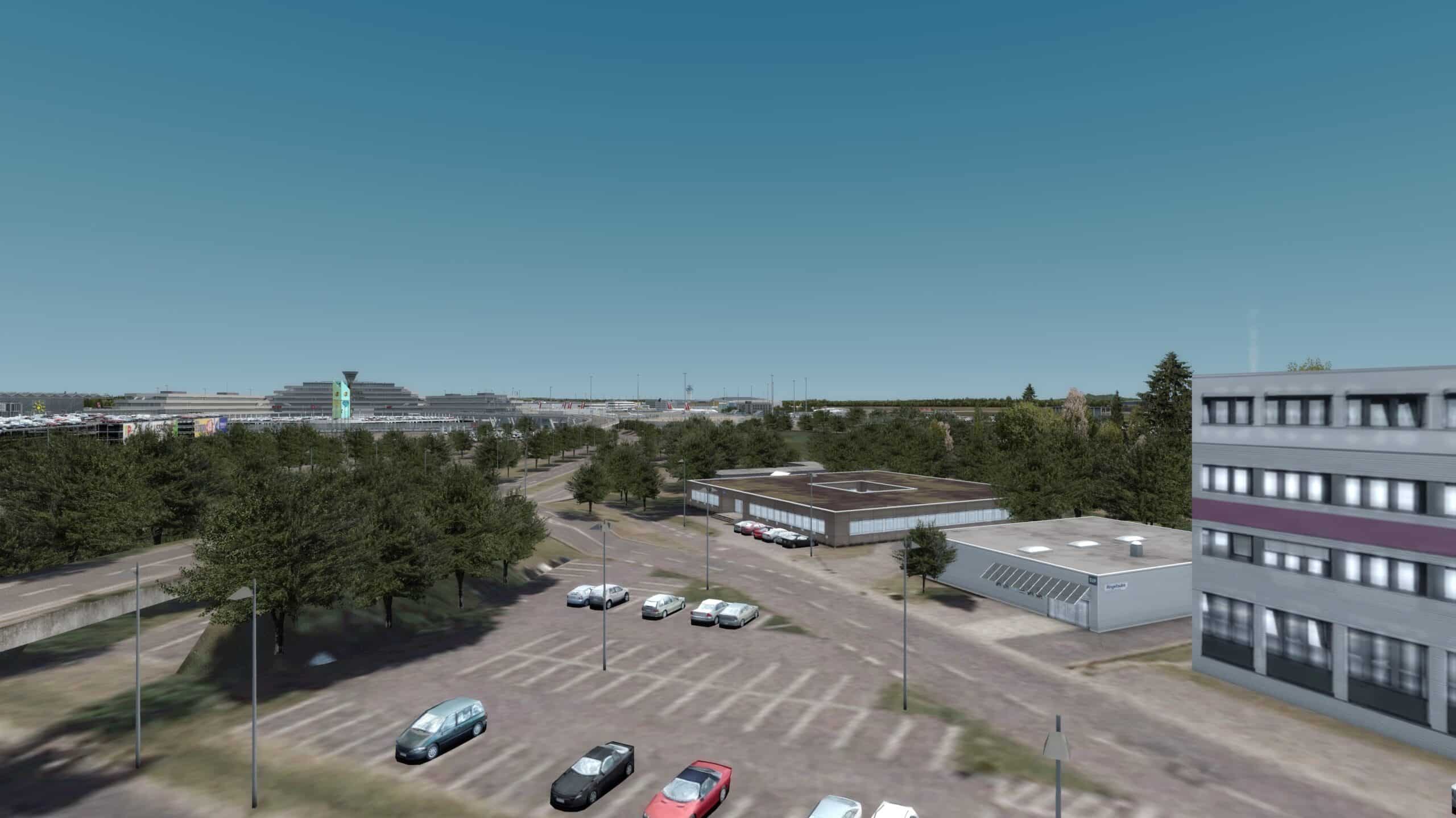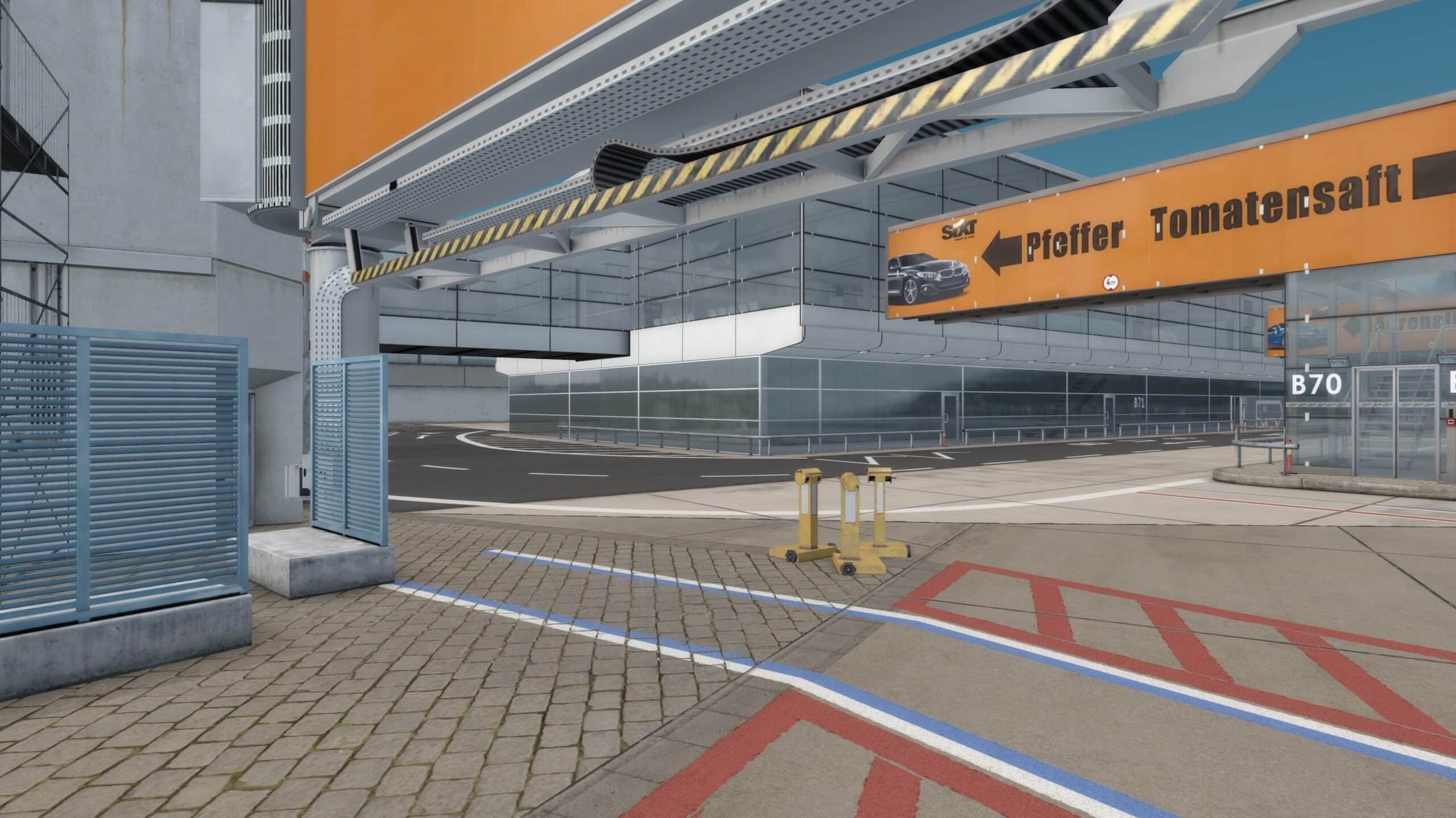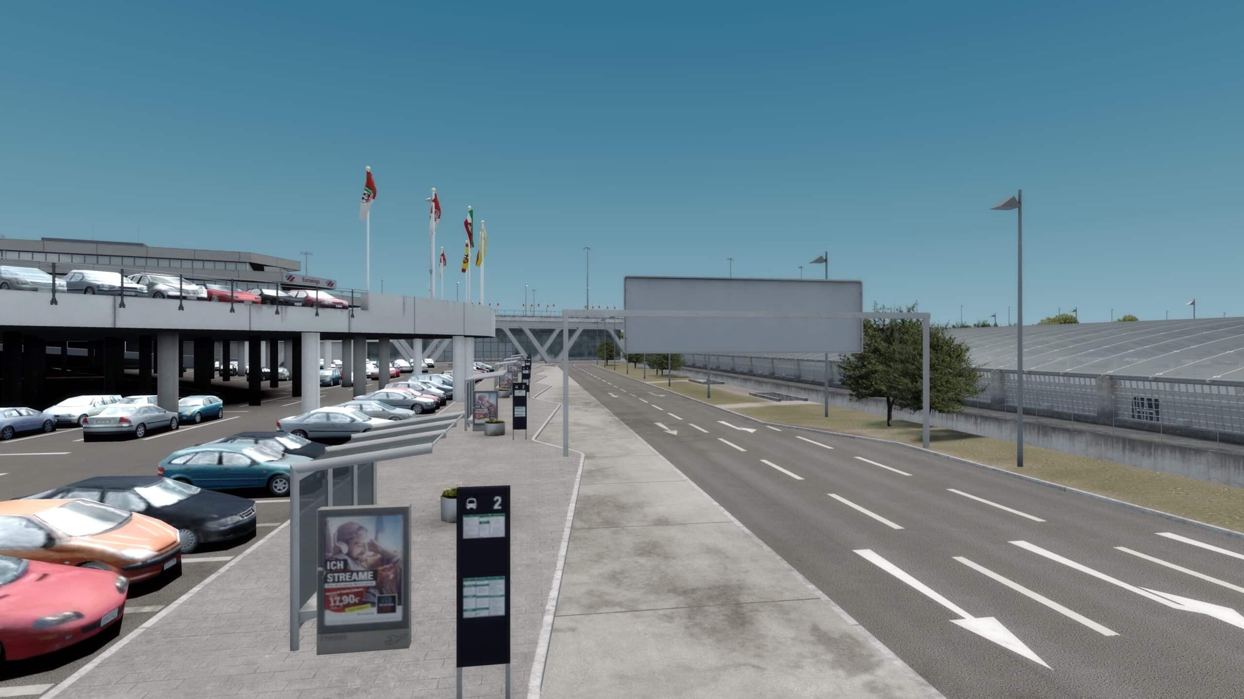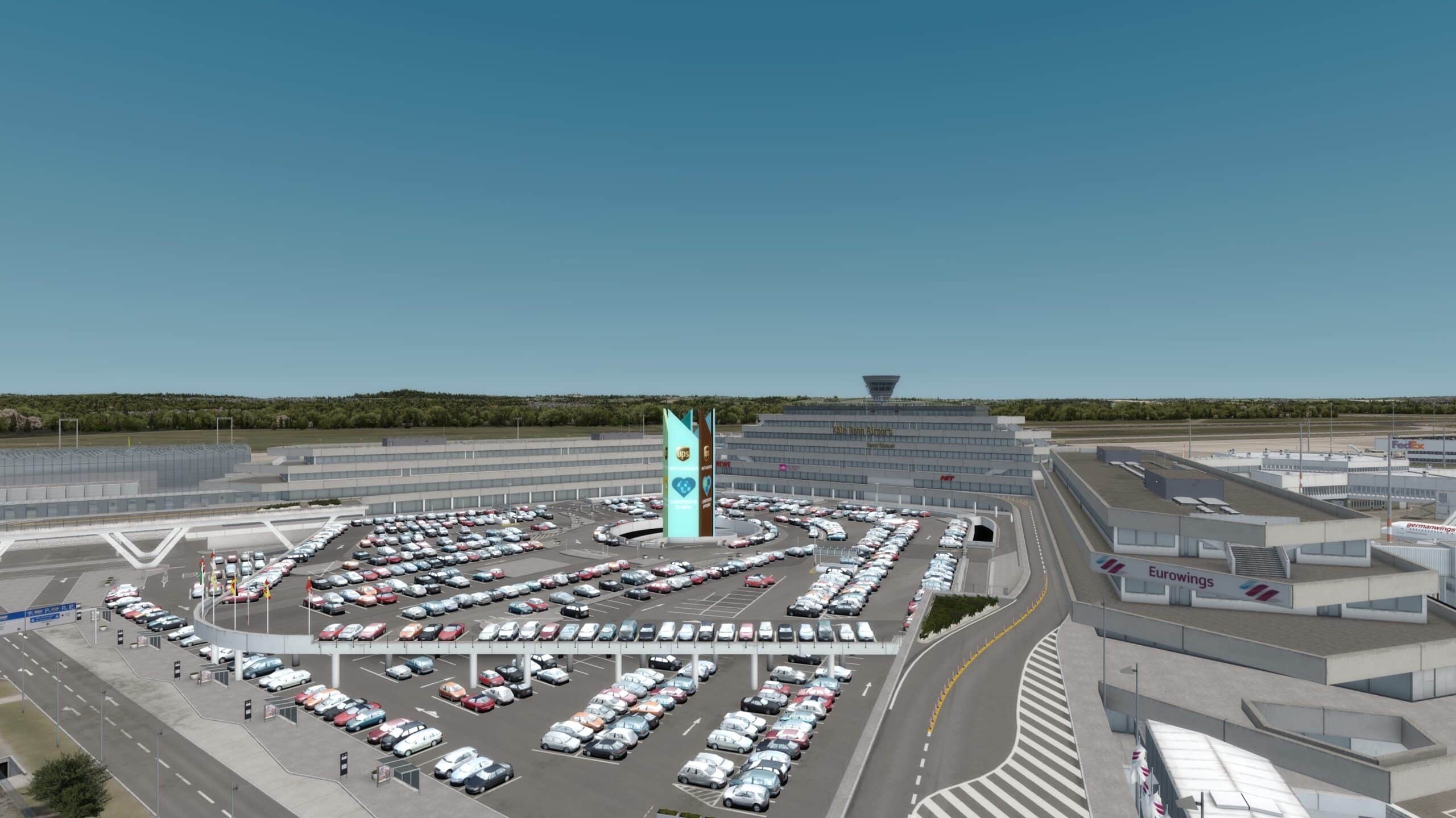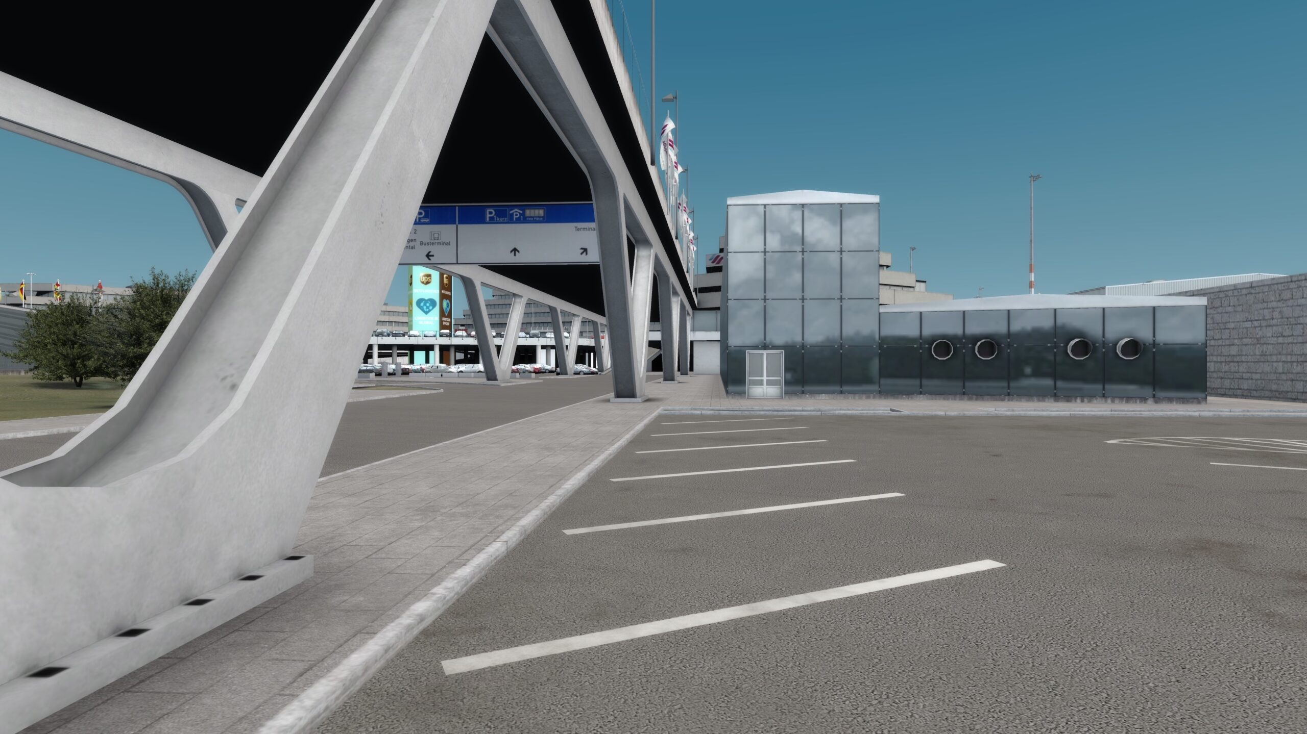 Die Qualität eines Flughafen-Addons zeigt sich eigentlich besonders da, wo sie nicht erforderlich ist – zum Beispiel an der Landseite der Terminals, die man aus einem Flugzeugcockpit doch eher selten sieht. Und da passt wirklich nahezu alles. Bis auf: Fehlende Fahrradständer am Eingang zur S-Bahn, und ein paar Details an der Parabel-A300, die auf dem ehemaligen Kurzzeitparkplatz vor Terminal 2 steht (deshalb sollten da nämlich keine Autos sein, vor allem nicht unter dem Bugfahrwerk).