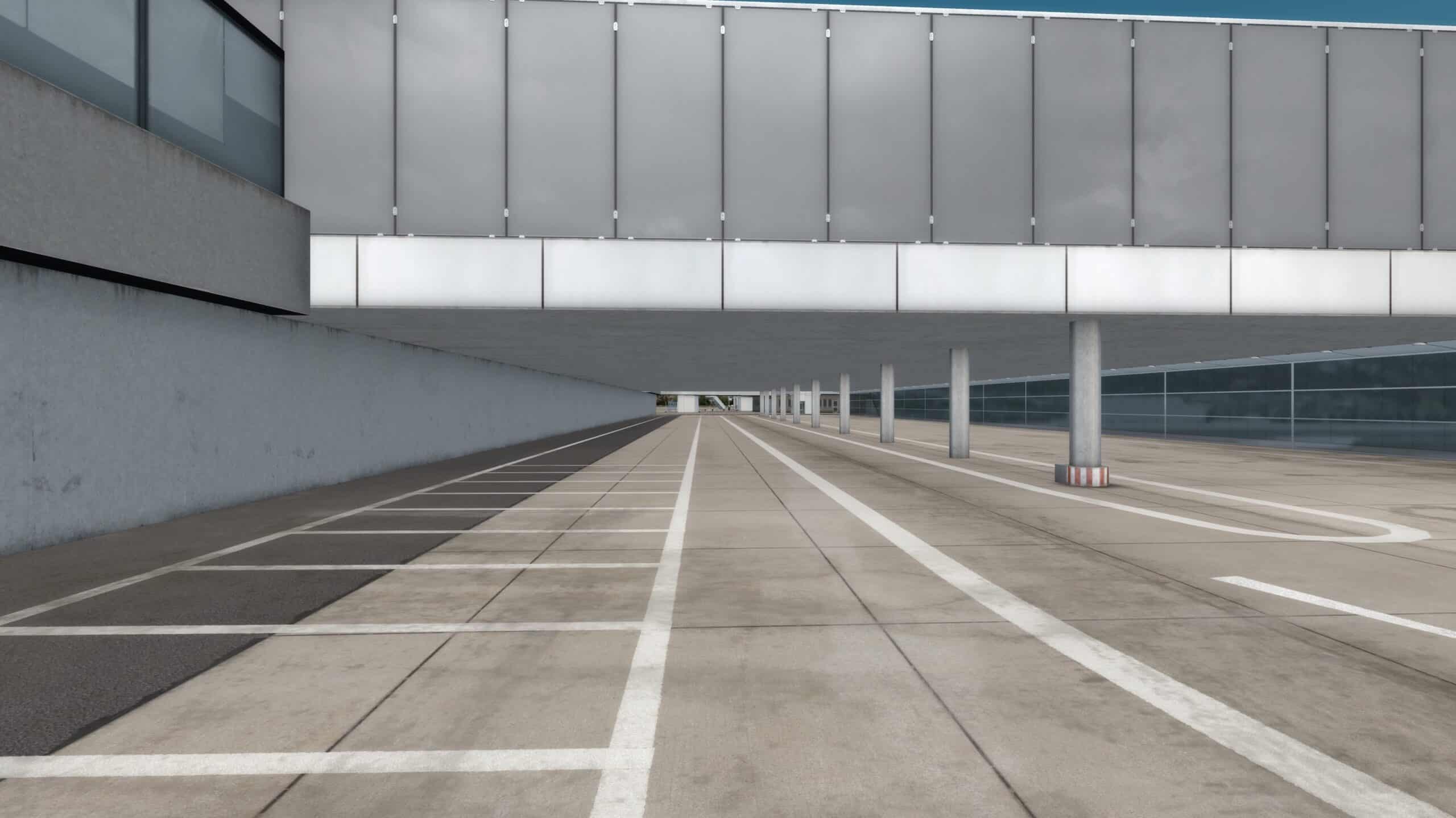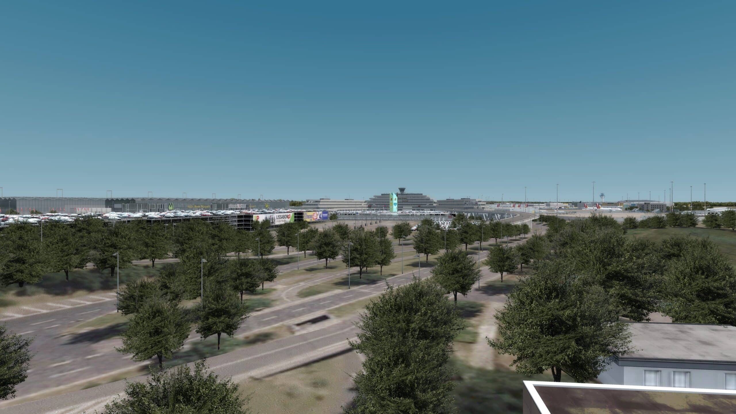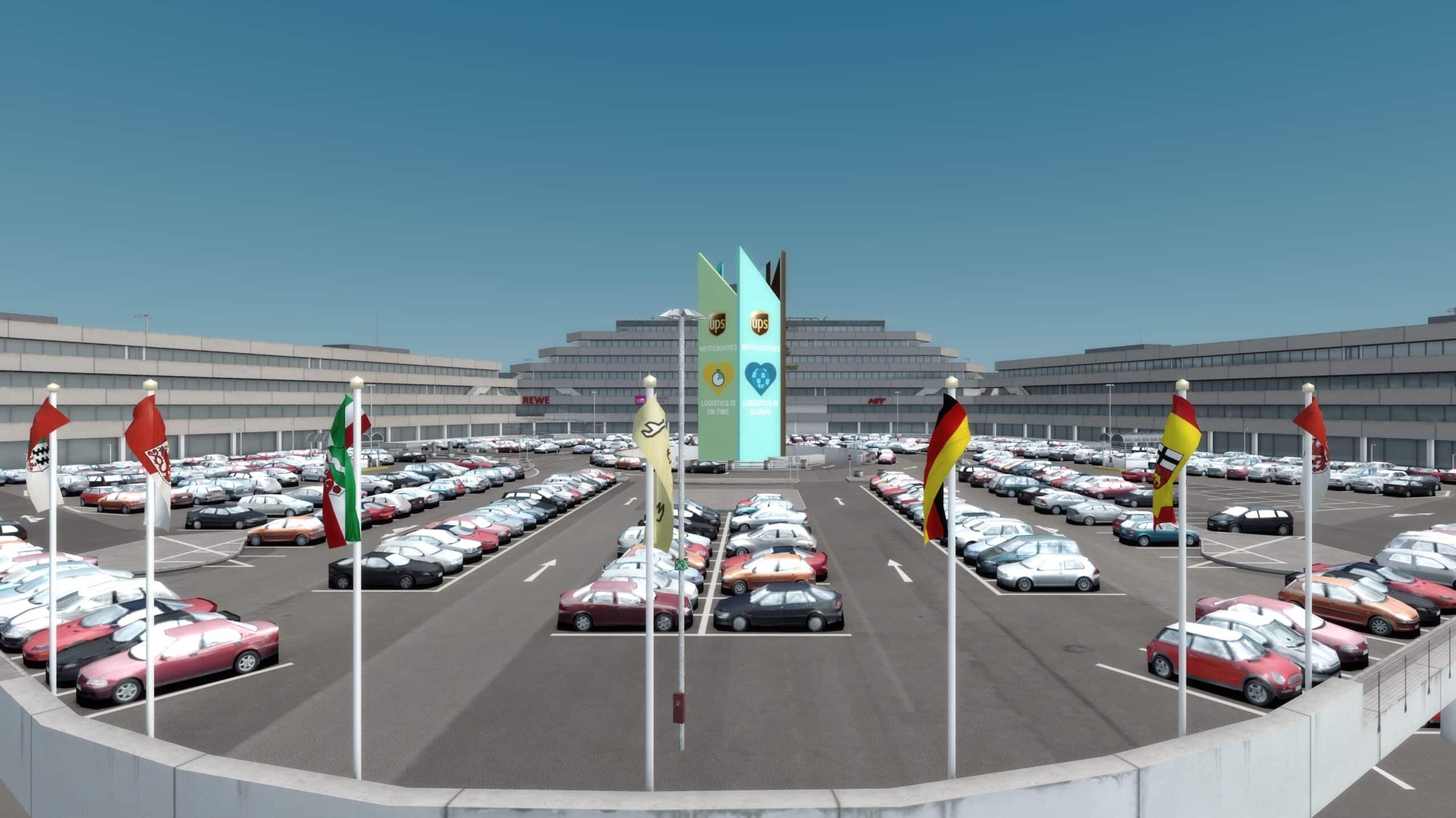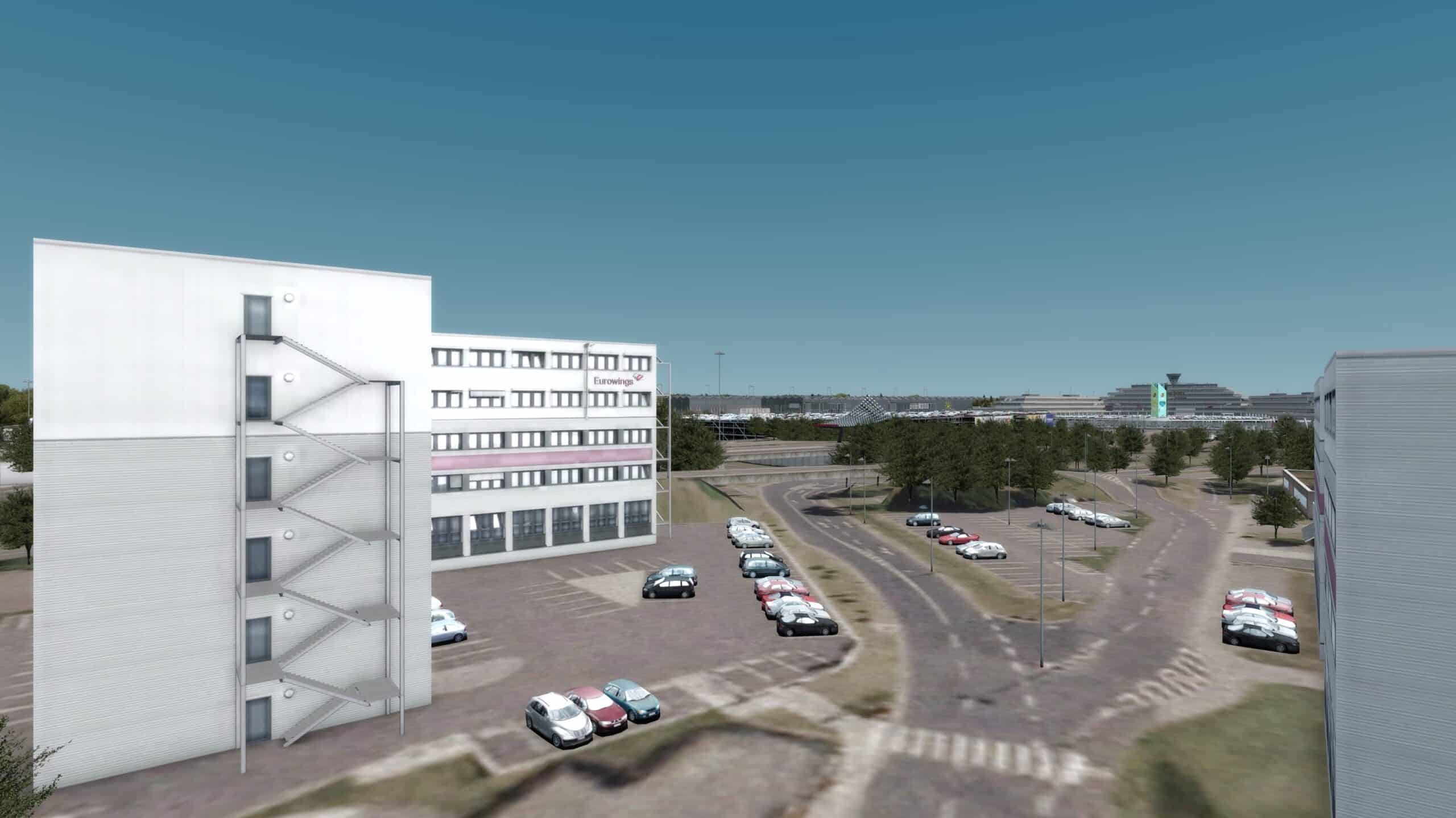 Neben der Airside des Frachtbereichs ist auch die Landseite exzellent dargestellt. Als ich hier mit dem Avatar für die Bildschirmfotos unterwegs war habe ich das erste Mal überlegt, ob Jo Erlend Sund vielleicht vollständigen Zugang zum Flugplatz hatte; hier sind Geländeteile extrem scharf umgesetzt, die eher schwierig zugänglich sind. Besonders schön finde ich den 3D-Schriftzug auf dem Cityline-Gebäude.