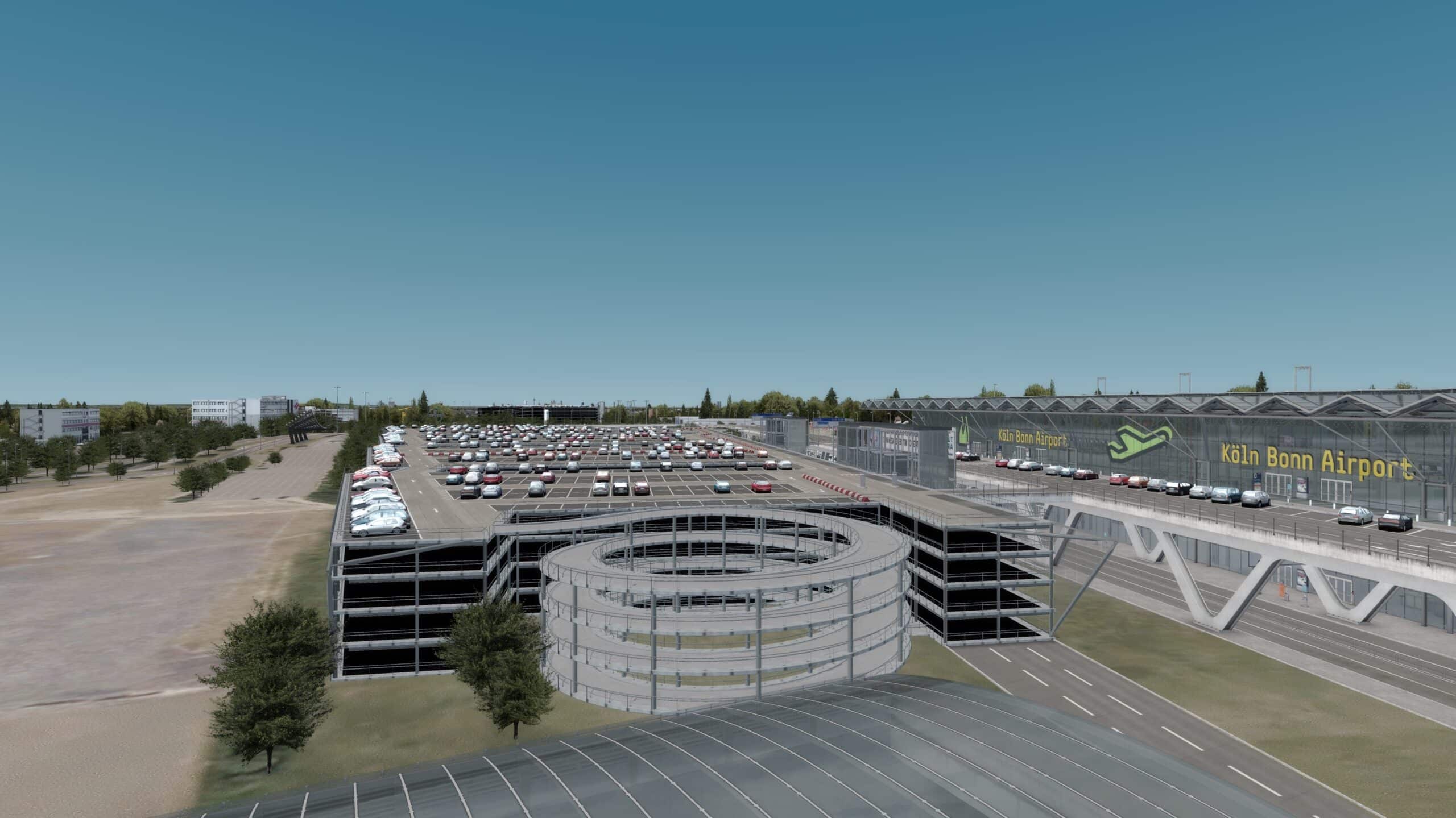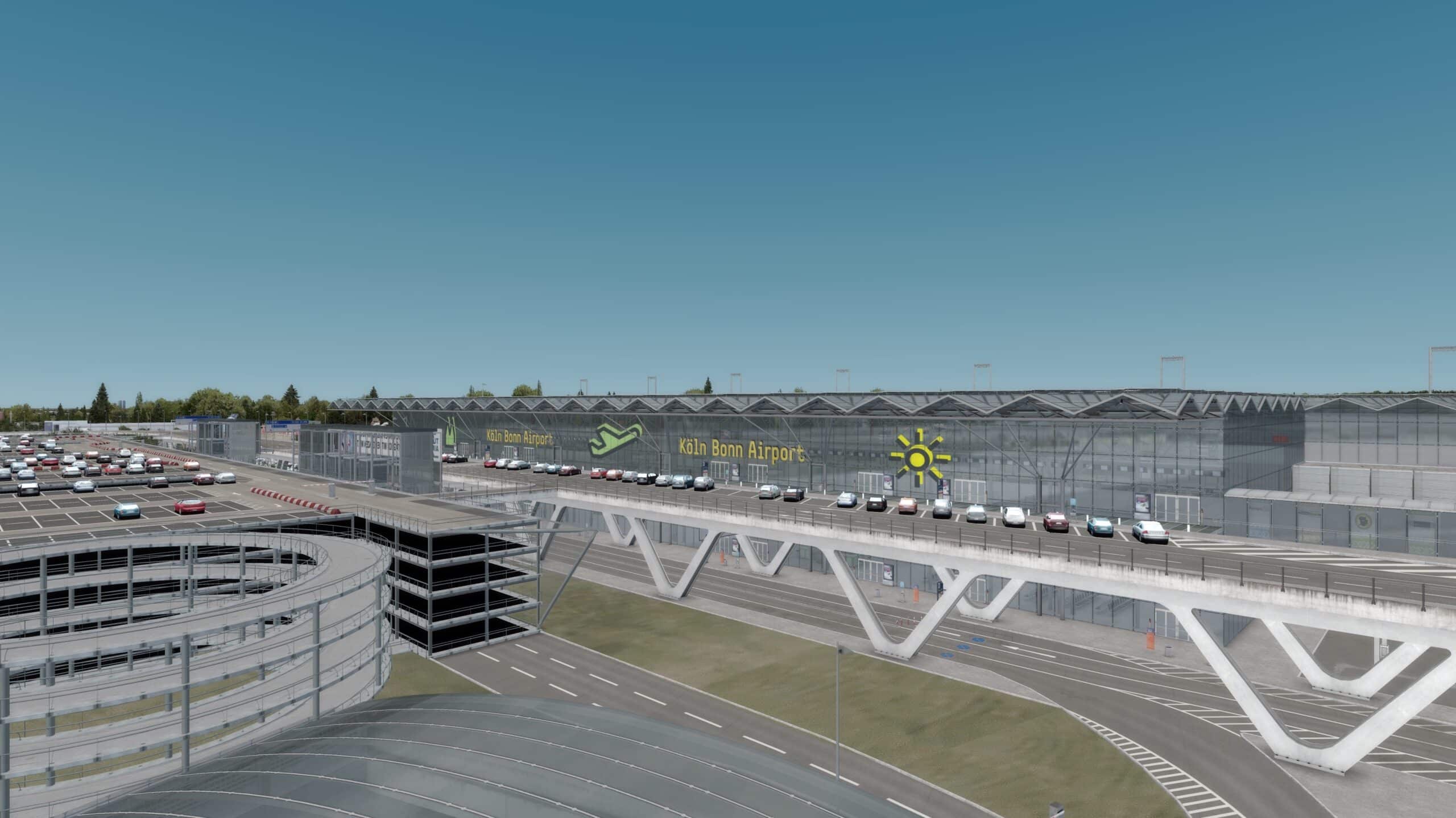 Das Addon bildet nicht nur den Flughafen ab, sondern liefert auch eine Fototextur mit Autogen-Abdeckung für die Umgebung, von Leverkusen im Norden über Bergisch-Gladbach, das gesamte Kölner Stadtgebiet bis hinunter zur Bonner Rheinaue. Eigene Gebäudemodelle sind mir nicht aufgefallen, aber ich möchte euch ein paar Detailaufnahmen der Umgebung nicht vorenthalten.