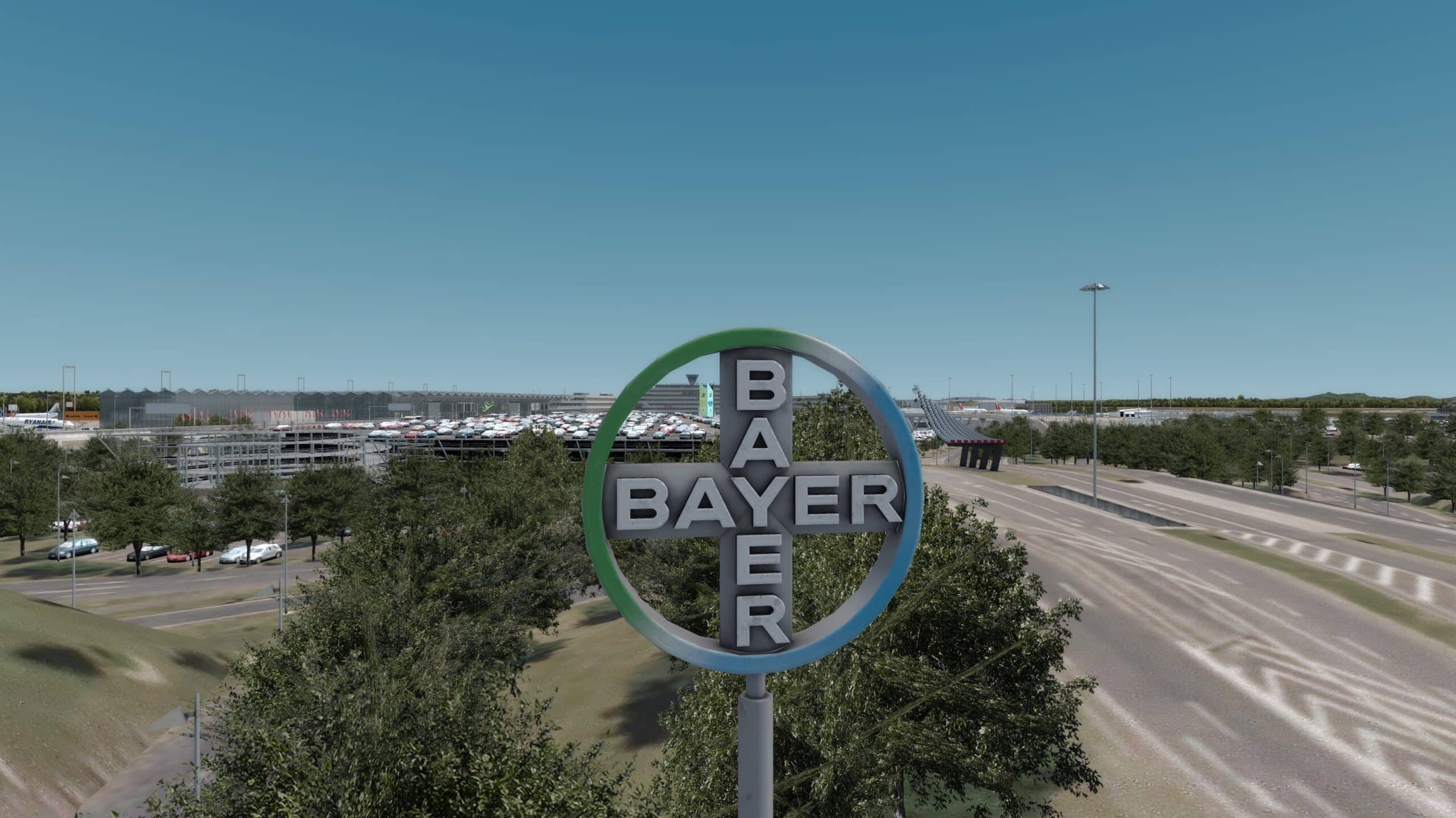 Etwas weiter ab von den Terminals sind dann zwar die Gebäude noch detailreich dargestellt, aber keine Strukturen mehr. Mir fehlt dann beispielsweise – auf einem sehr hohen Niveau! – das Heckleitwerk vor der GermanWings-Zentrale, dafür gibt es die Bayer-Werbung am Autobahnzubringer.