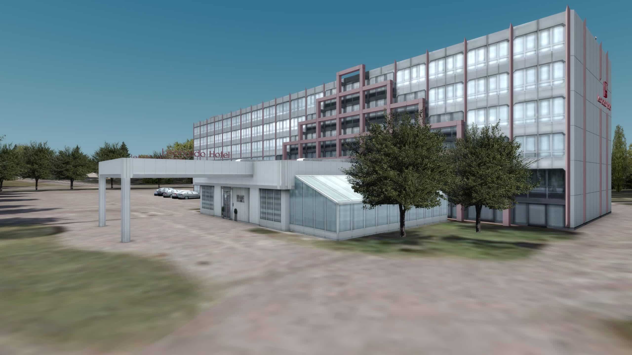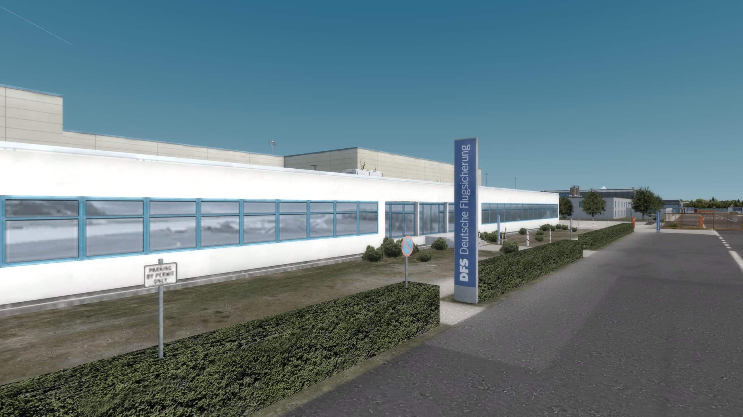 Nicht umgesetzt ist leider das Gelände des DLR; immerhin befindet sich hier das europäische Astronauten-Trainingszentrum. Hier ist es leider nur auf der 2D-Fototextur zu erkennen. Die weiße Halle im Bildmittelpunkt müsste es sein: