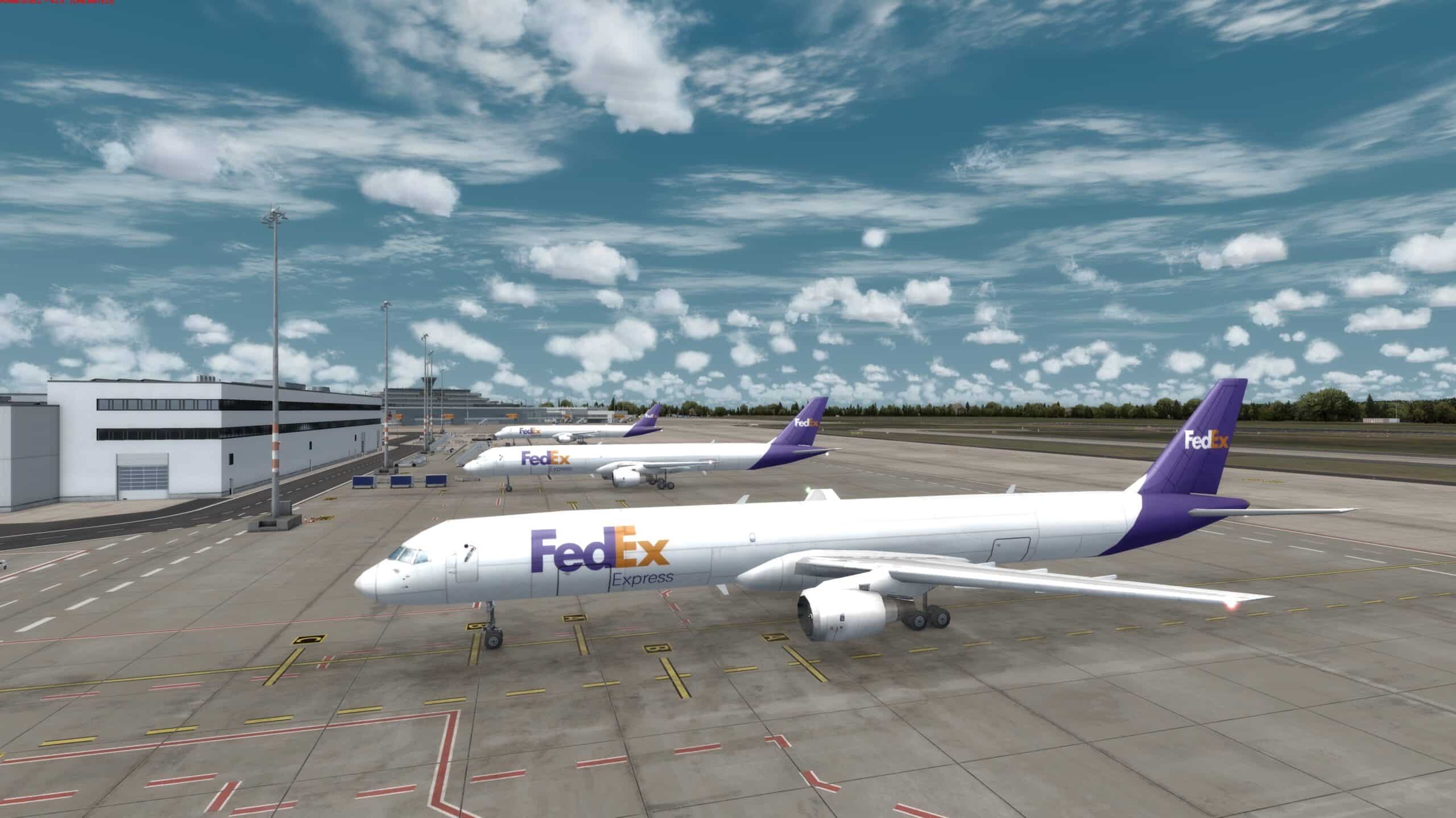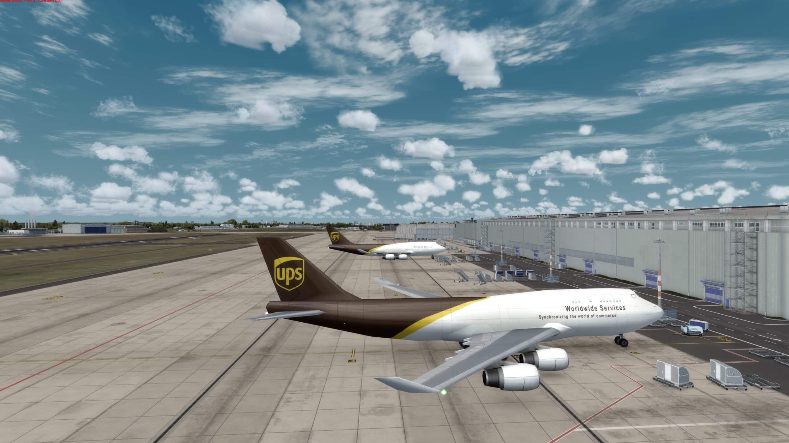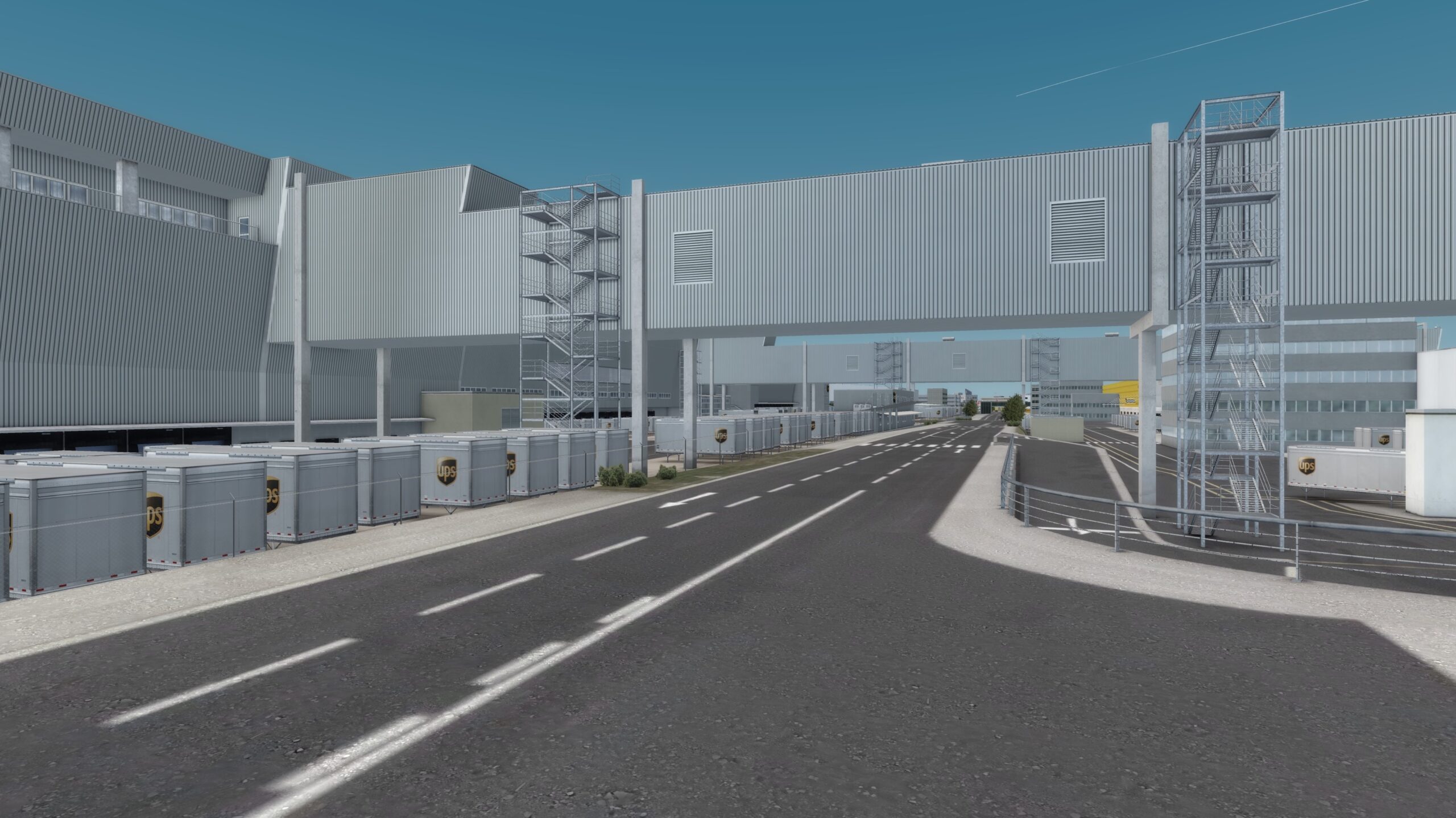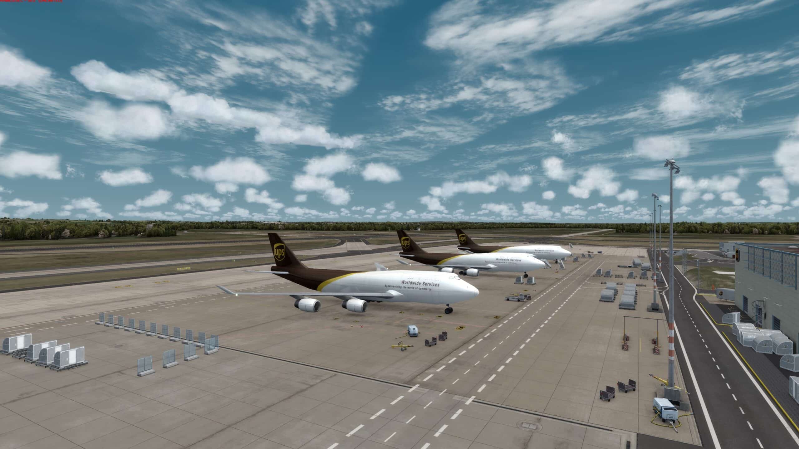 Die Auswahl der statischen Flugzeuge passt daher leider nicht: 747-400F stehen in der Realität zwar herum, aber – meiner Erinnerung nach – selten mehr als eine, die Mehrzahl der UPS-Flieger sind MD-11. Und weiter rechts, bei Fedex, da stehen in der Realität eher 777 als die hier nachgebildeten 767er. Wirklich schlimm ist die Auswahl der statischen Flieger aber nicht, denn es könnte ja auch so sein wie dargestellt.