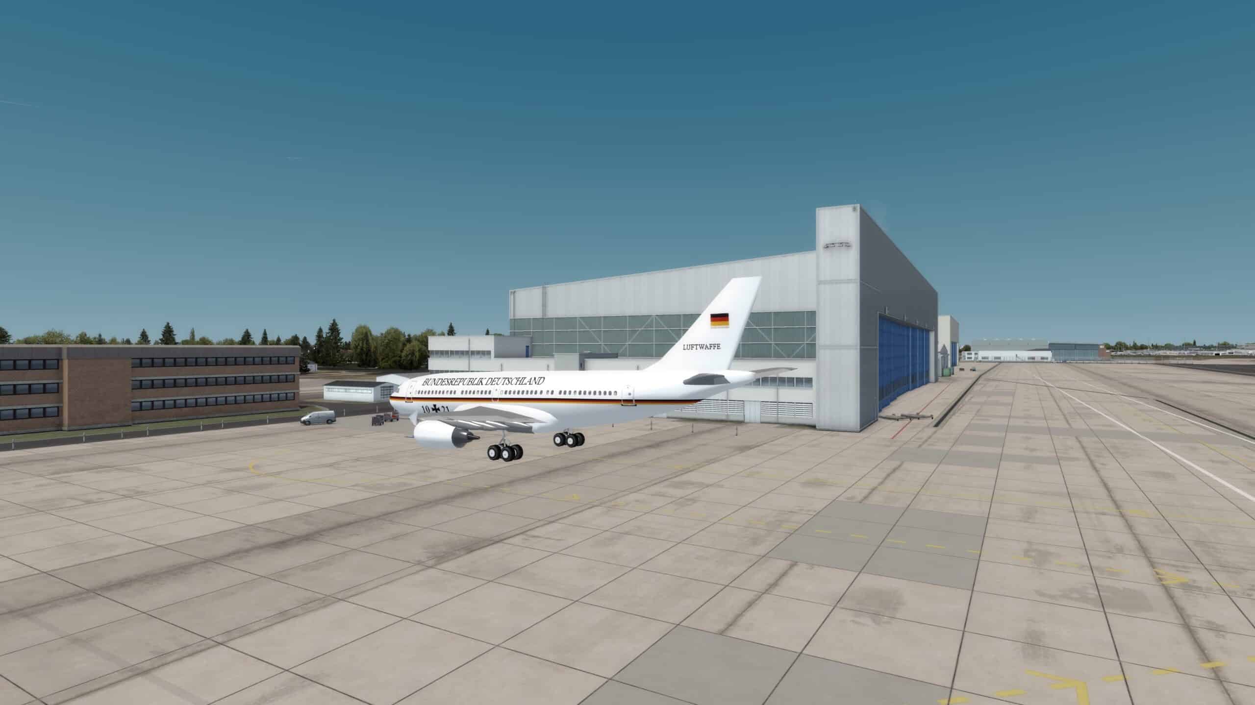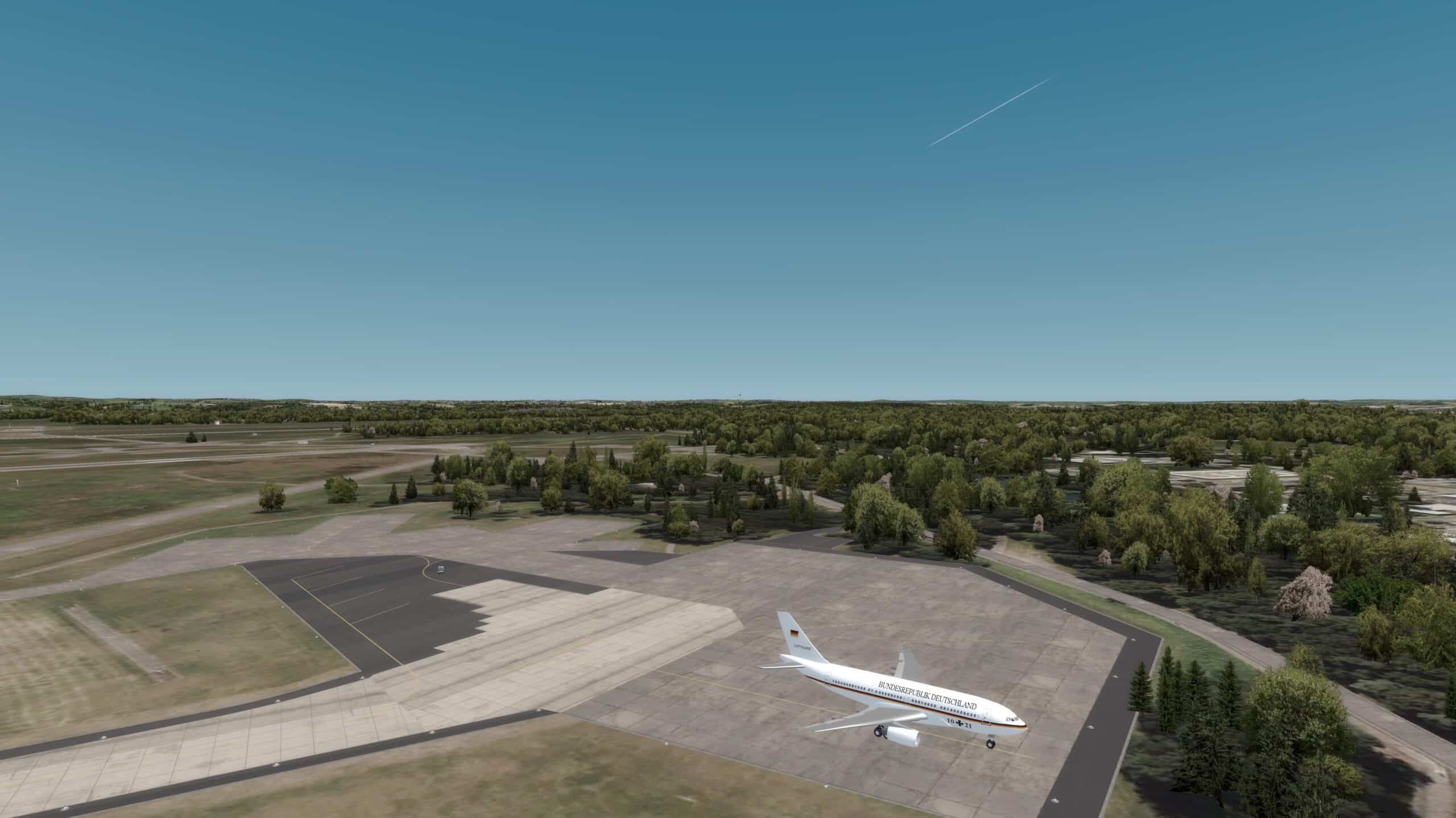 Die Flieger werden abgefertigt in zwei Passagierterminals, Terminal 1 von 1970 und Terminal 2 von 2000, einem sehr großen Frachtbereich mit kleinerer Werft und der Luftwaffenbasis, auf der die Flugbereitschaft des Verteidigungsministeriums (BMVg) stationiert ist – Überreste aus einer Zeit, in der Bonn noch einzige Hauptstadt war. Hier kommen gelegentlich auch die Heimflüge der Bundeswehrsoldaten mit C-17 der US Air Force an, und auch Transalls sind über Köln gelegentlich mal zu sehen. Als weitere Besonderheit sind in Köln-Bonn einige Forschungsflugzeuge des Deutschen Zentrums für Luft- und Raumfahrt (DLR) stationiert, und vom – nicht umgesetzten – Gelände des DLR gibt es direkten Zugang zu einem eigenen kleinen Vorfeld. Hier fand bis 2015 alle zwei Jahre das Flughafenfest statt, vielleicht kommt es ja mal wieder. Aber hey, mit der geeigneten Software könnt ihr ja jetzt euer eigenes Flughafenfest machen. Für mehr Details und zum Einstimmen kann ich die Dokumentation „Geheimnis Kölner Flughafen“ (zum Beispiel auf YouTube) empfehlen – viel Spaß damit.