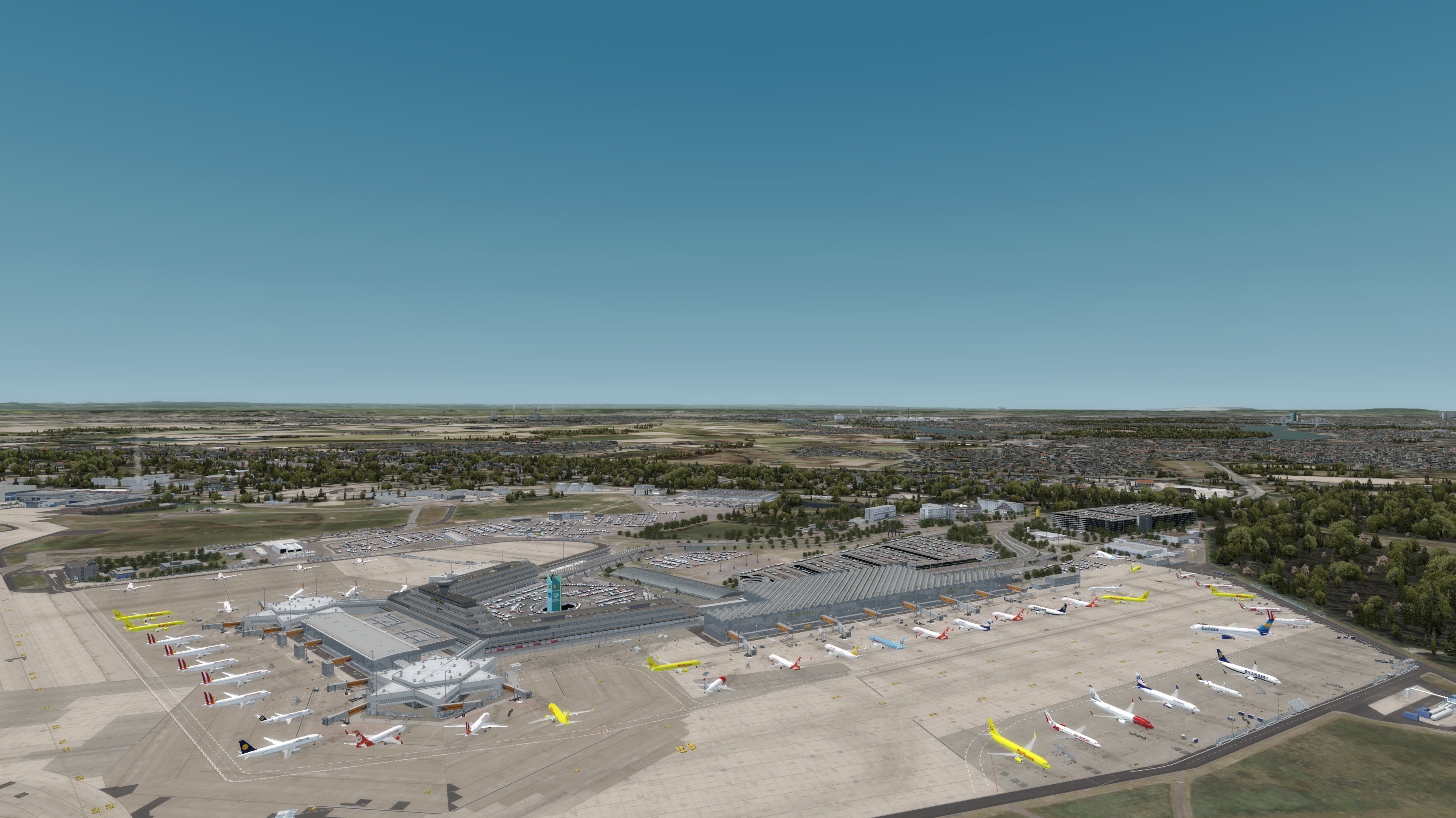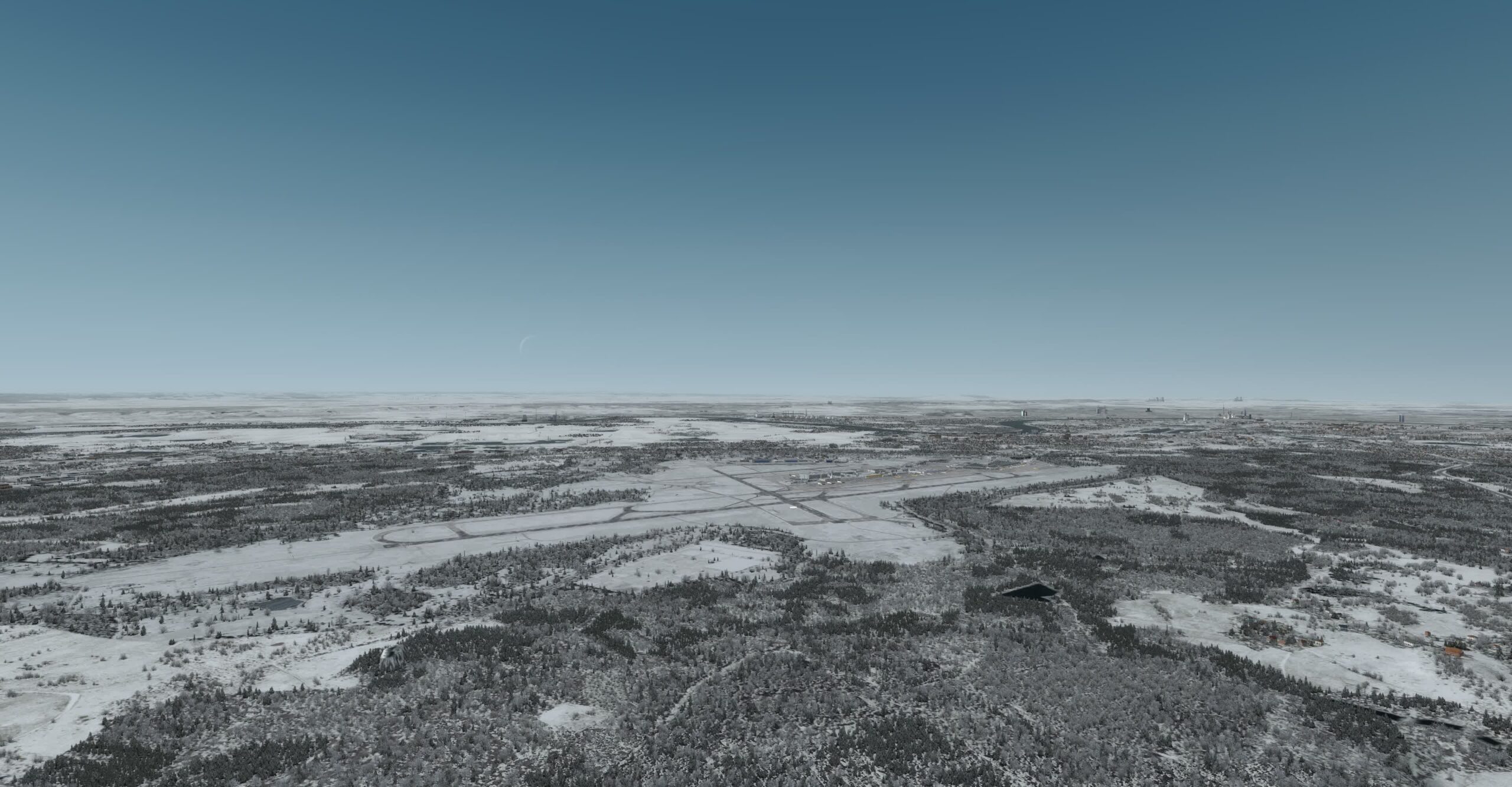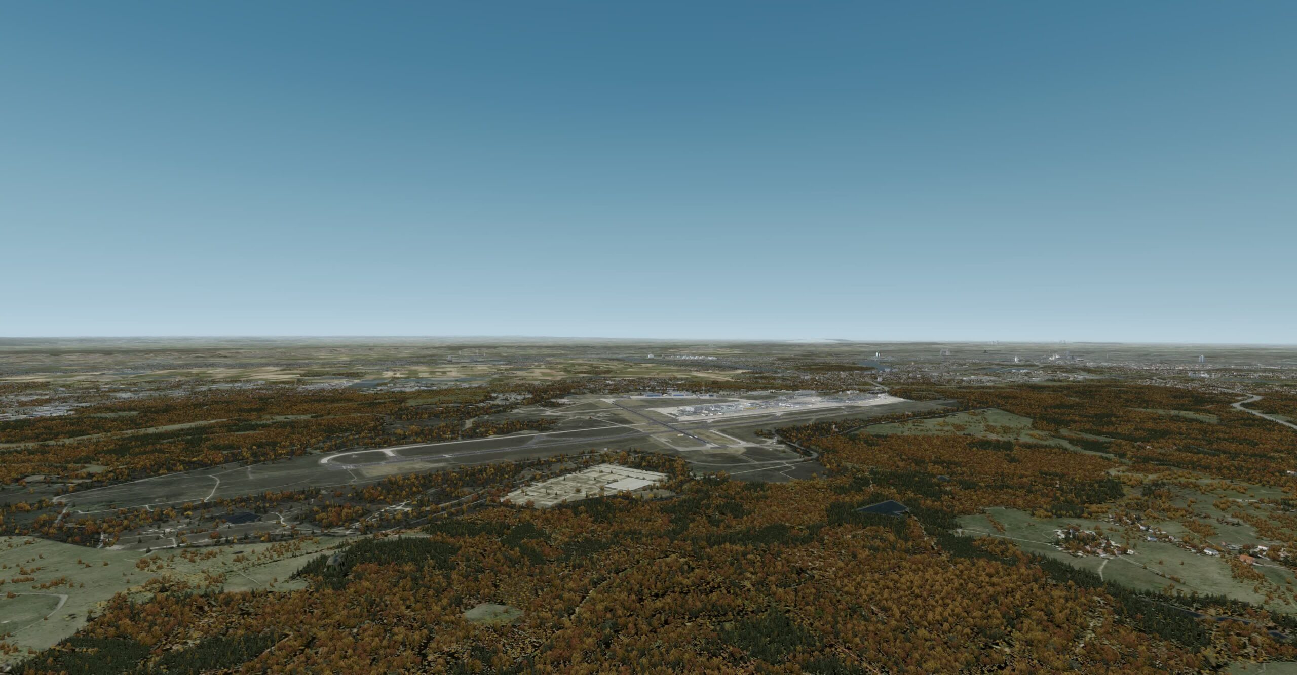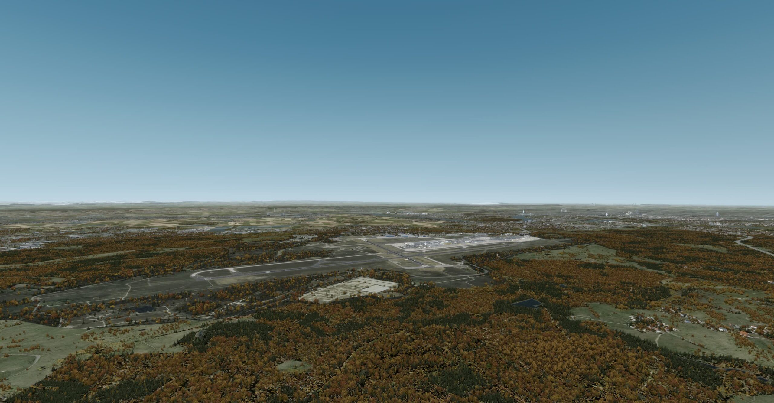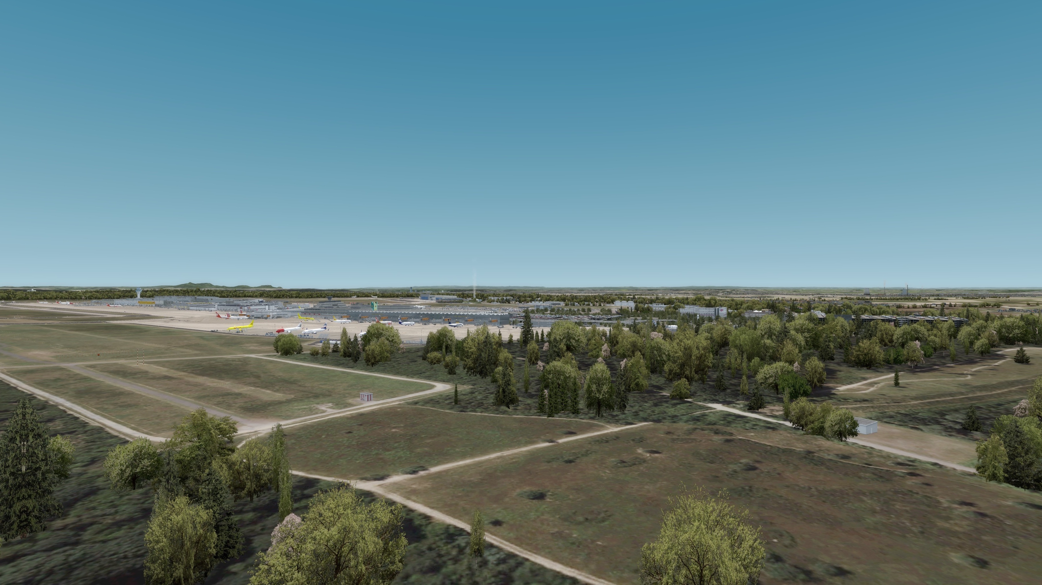 Mittlerweile passen die Farben deutlich besser zur Umgebung (hier dargestellt ohne die Fotoszenerie-Abdeckung außerhalb des Flughafengeländes).Der Februar hat bei mir Probleme mit der umgebenden Szenerie bereitet (manchmal war noch Schnee zu sehen), aber abgesehen davon: es passt jetzt!