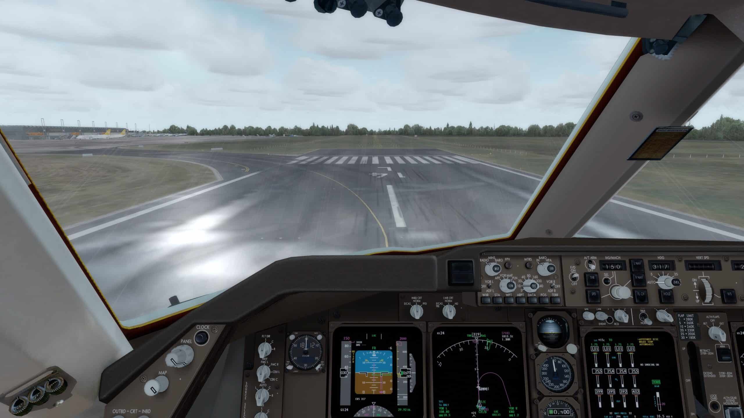Weitere „Spielerei“: Die Regen- und Schneeeffekte (Schnee hatte ich euch schon im Video gezeigt). Die Pfützen sind nett aus dem Cockpit anzusehen, aber ich kann nicht sagen, ob das starke Glänzen der Realität entspricht oder ob die Bahnen schon so gebaut sind, dass das Wasser abläuft.