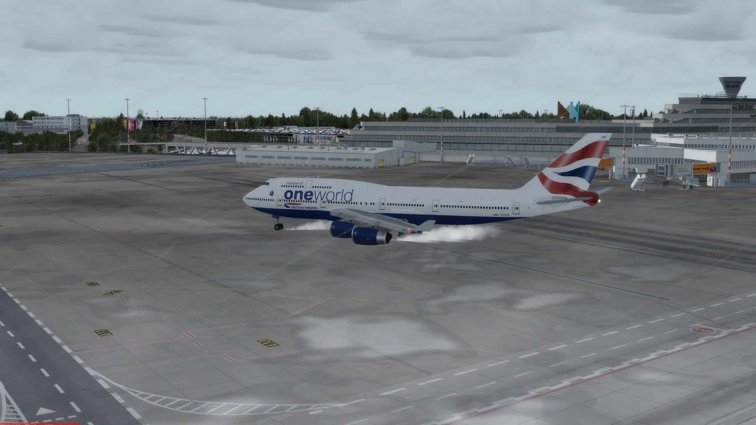 Mit der iFly 747 bei Regen (Wassereffekte aktiviert!) eine ausgedehnte Platzrunde 32R (auch in 4k):