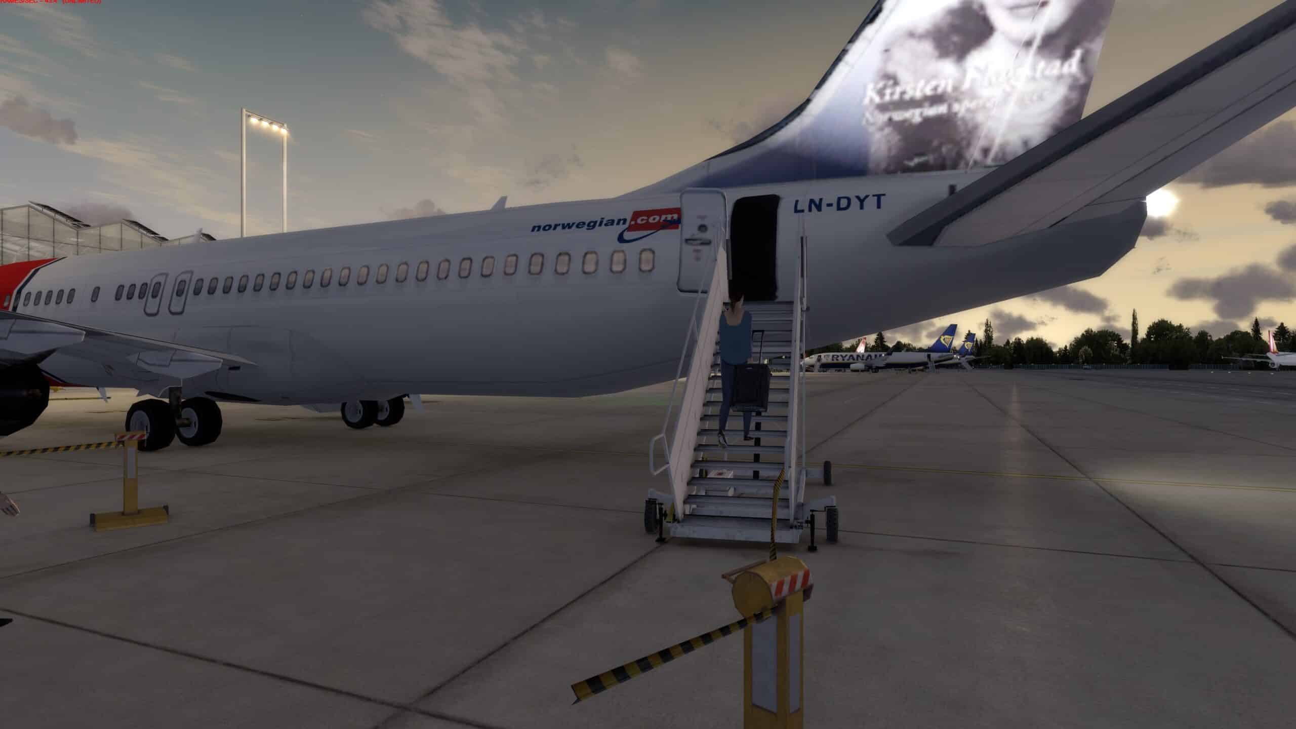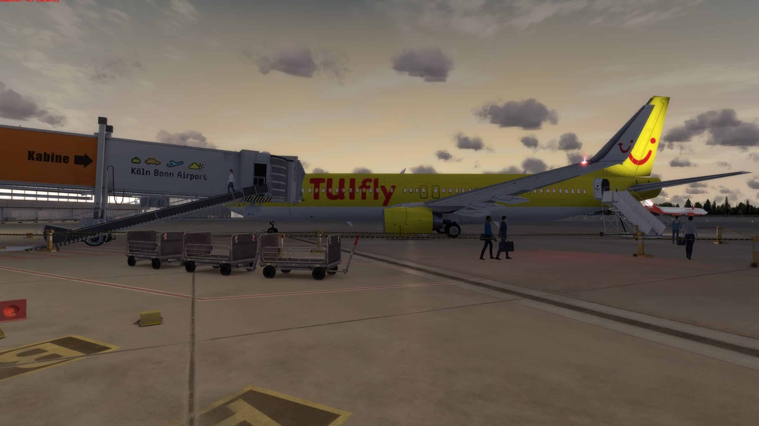Interessant wird es, wenn die statischen Flugzeuge und passende Passagiere eingestellt sind. Dann ist nämlich bei allen Fliegern Boarding. Komischerweise werden auch Maschinen, die an einer Jetway parken, über die (dann hintere) Treppe geboarded, das kenne ich so aus Köln nicht.