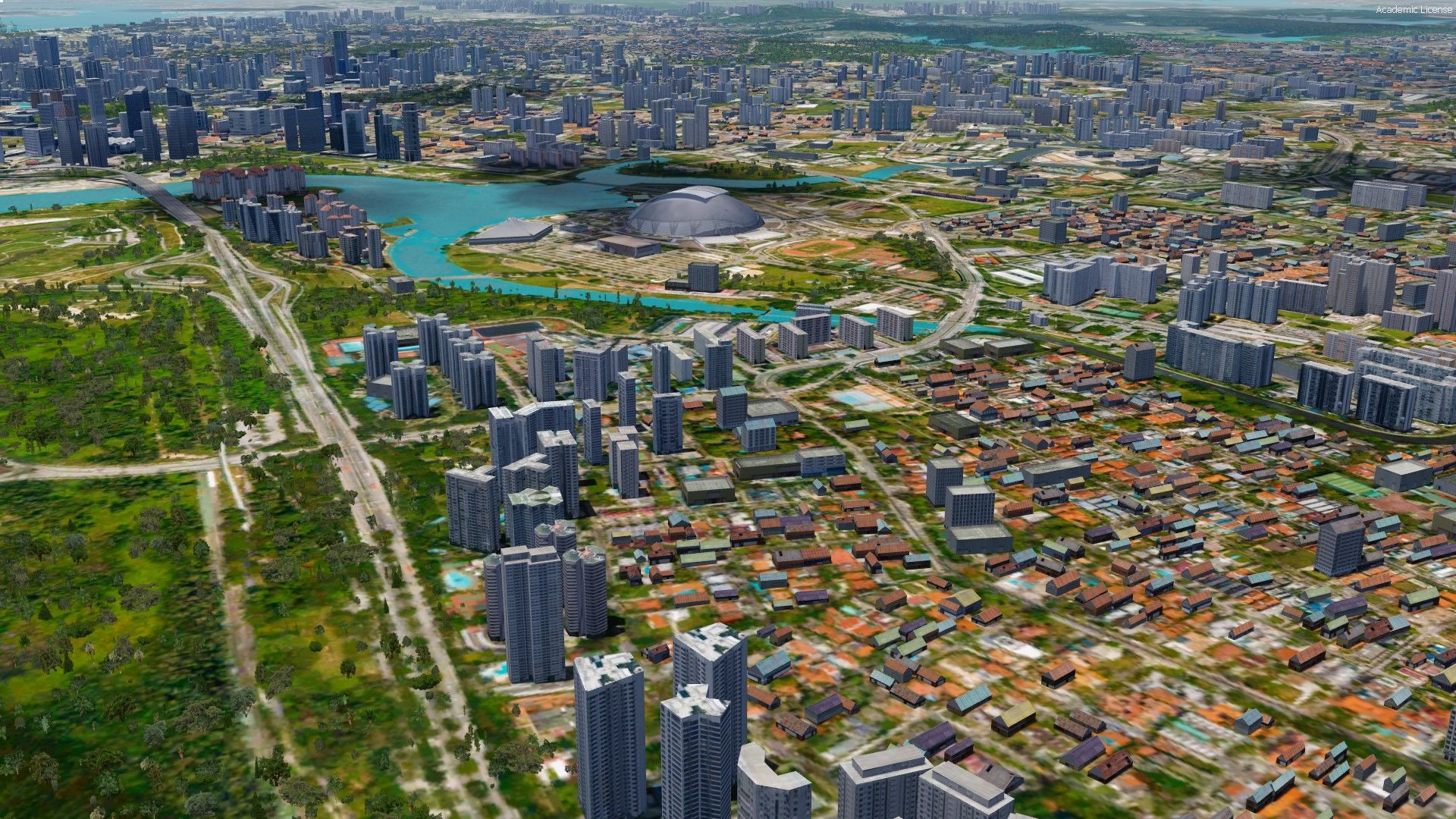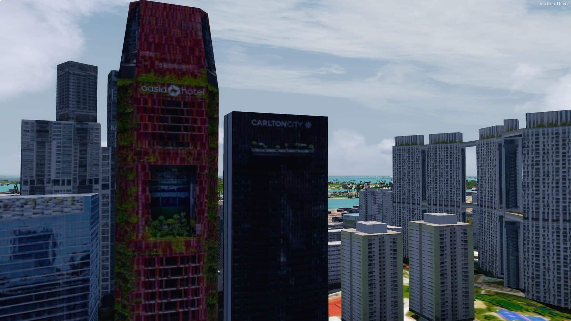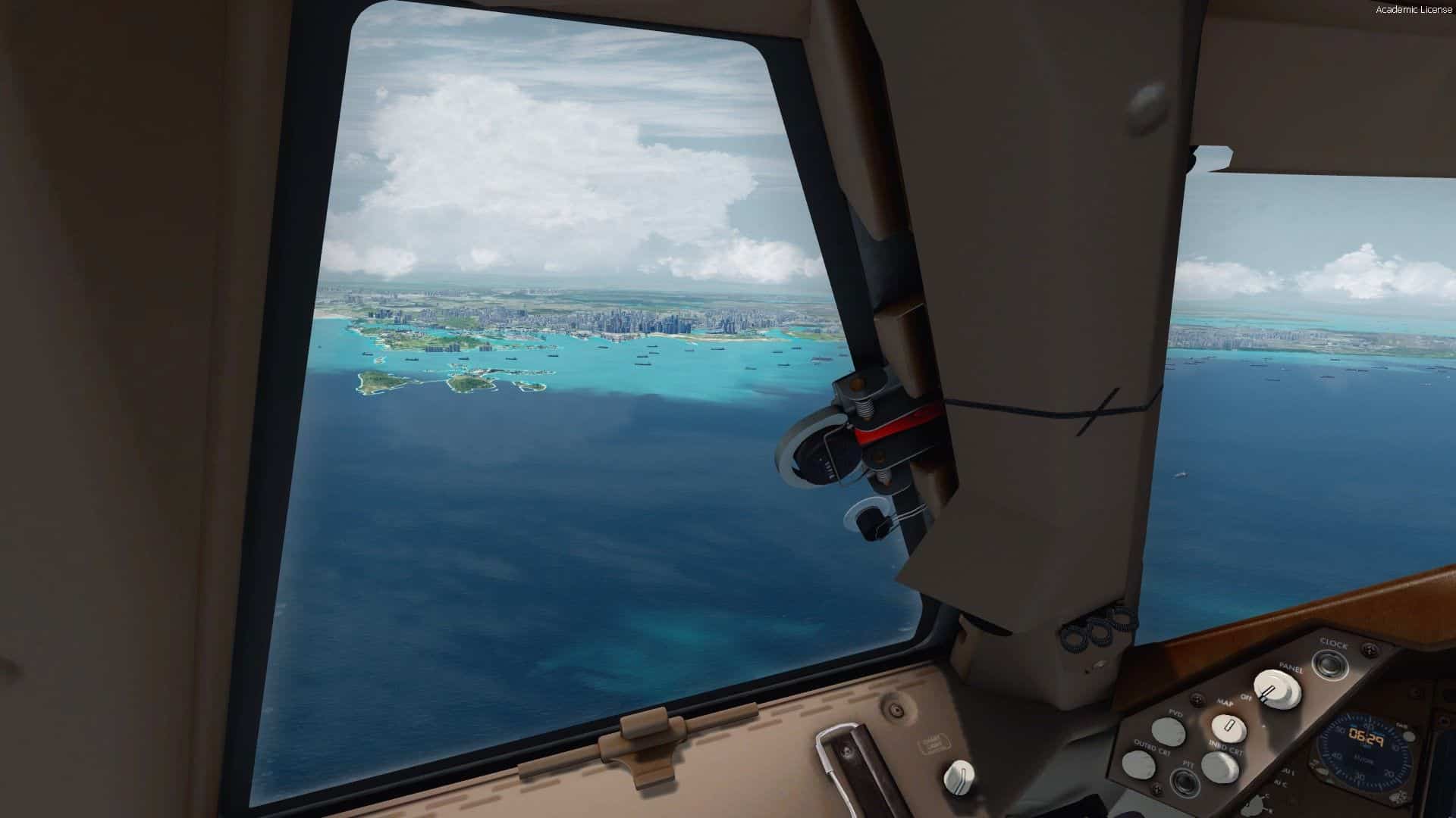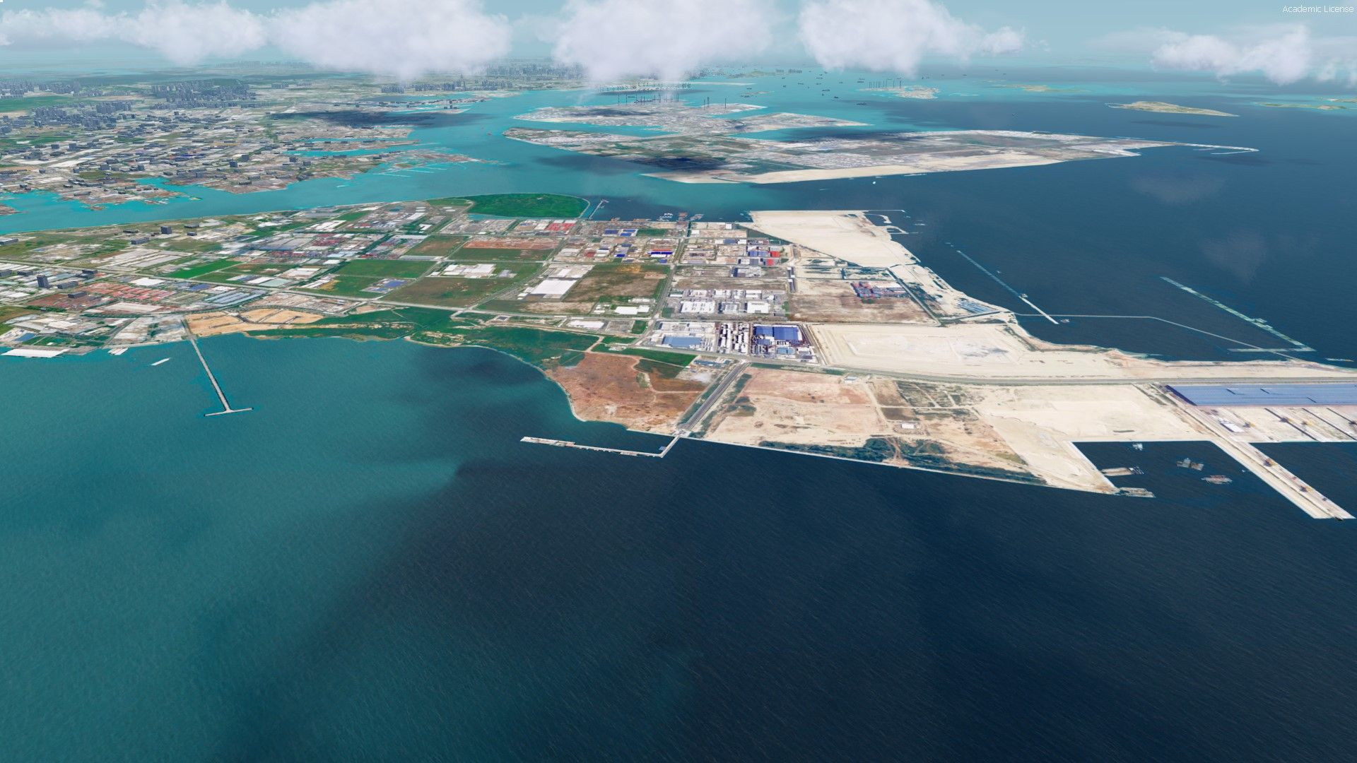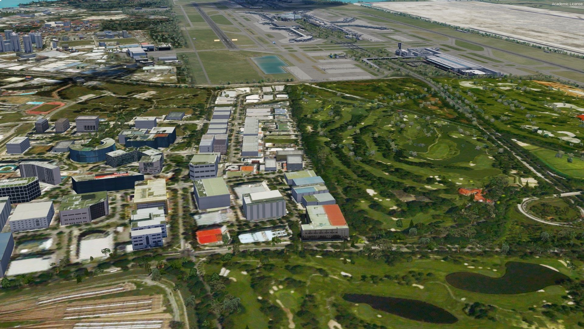 Ähnlich wie auch an der Küste nimmt auch die Qualität der Szenerie an Land in Richtung Westen ab. Zwar fehlen hier nicht so viele Objekte wie in den Häfen, man erkennt allerdings schon merklich, dass der Fokus der Entwickler näher am Flughafen liegt. Im Vorbeiflug, beispielsweise aus Europa kommend, von Norden aus den Flughafen Changi anfliegend, macht die Stadt (aus einer gewissen Höhe) aber einen recht netten Eindruck. Im Vergleich zu Orbx Global ist das schon eine deutliche Aufwertung und ein ganz anderes „Feeling“.