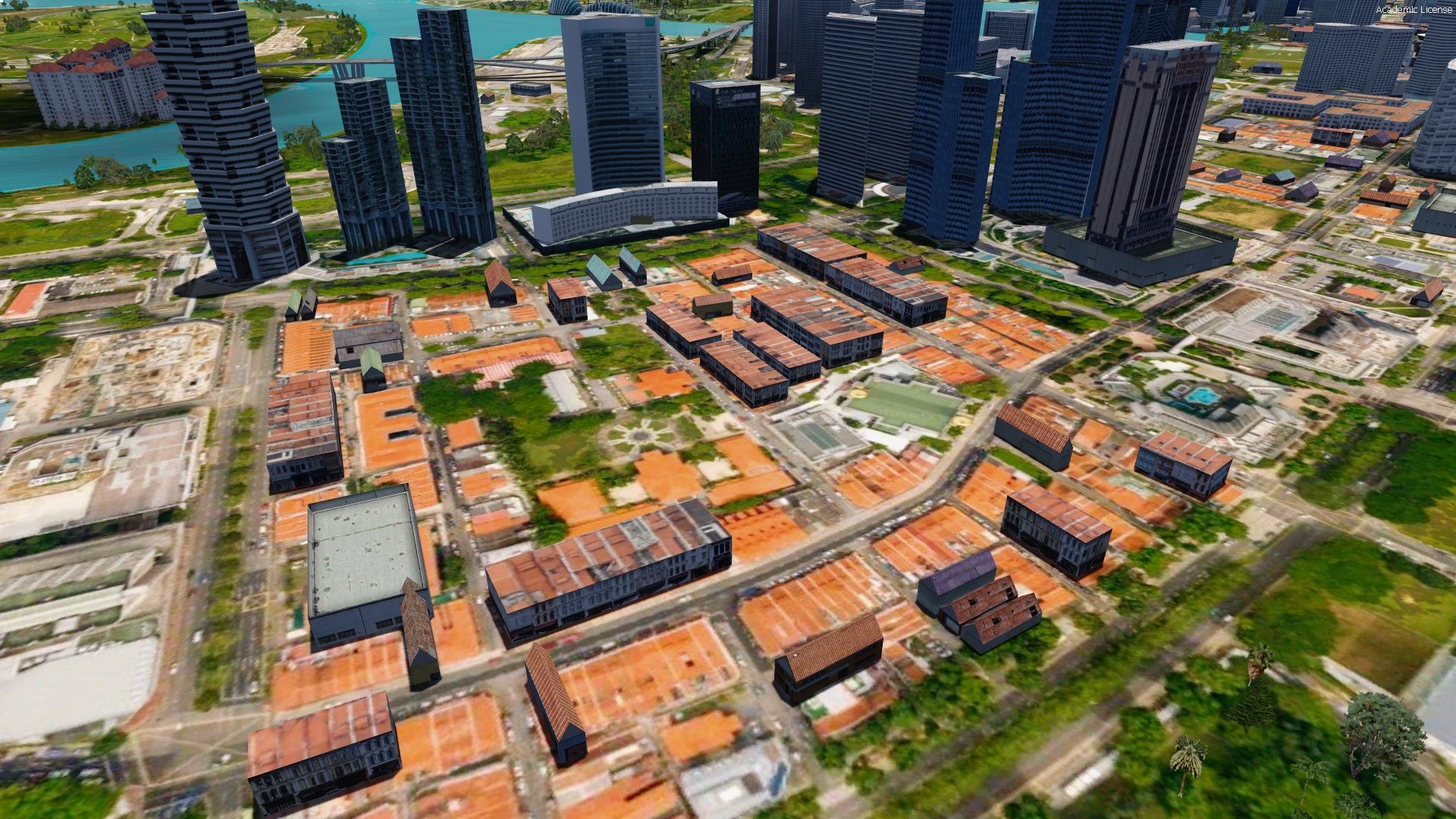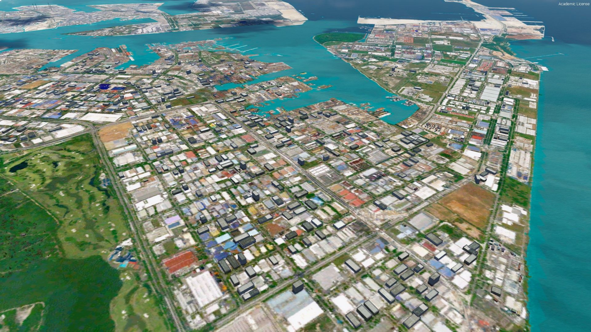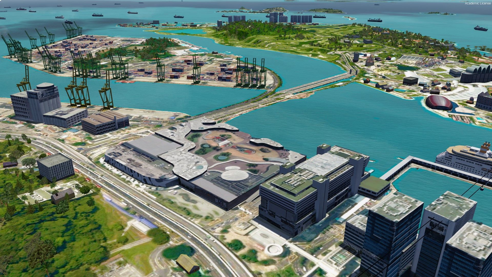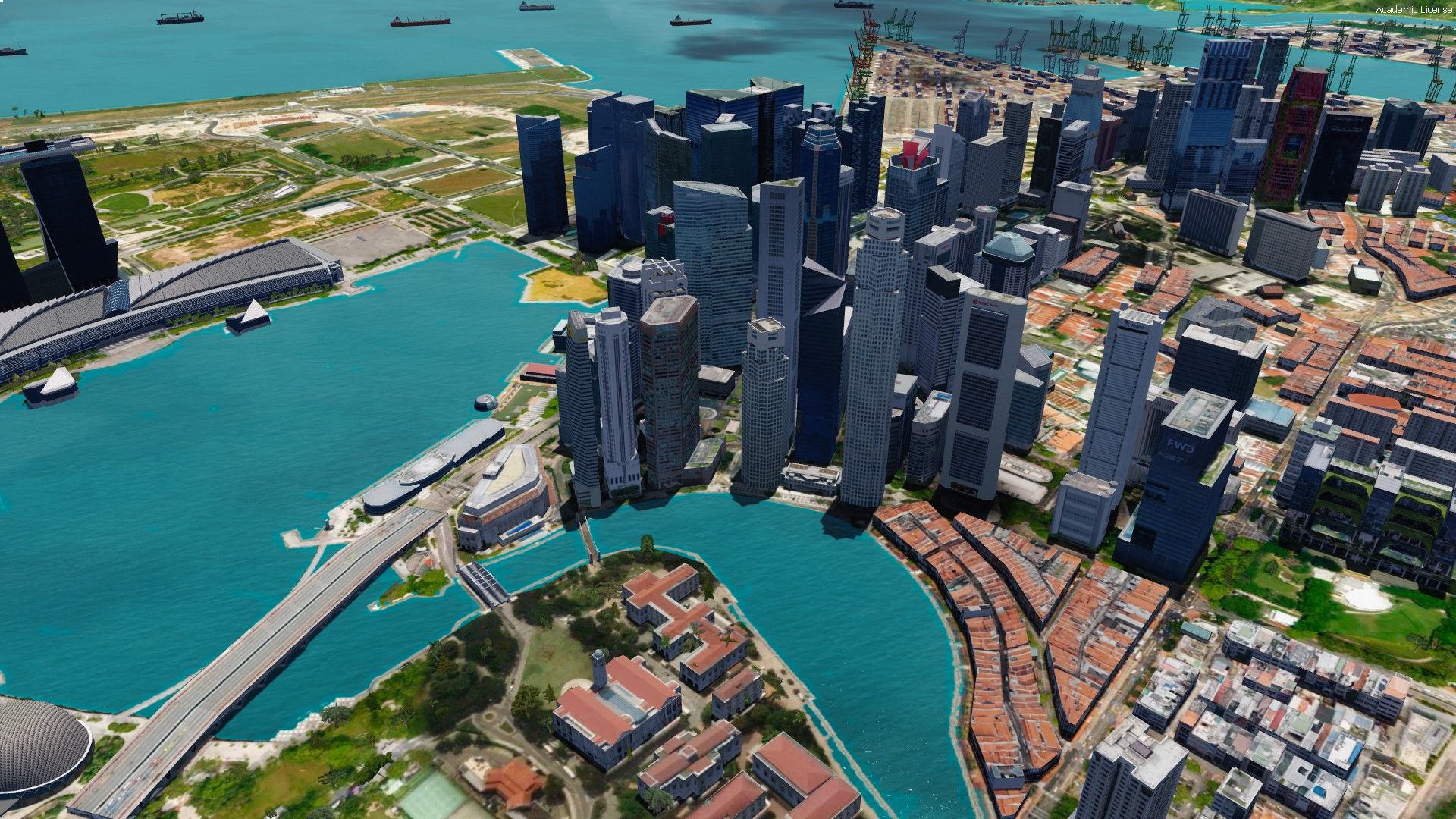 - Rendition of the whole Singapore country with detailed city center area including Sentosa island in aerial imagery
